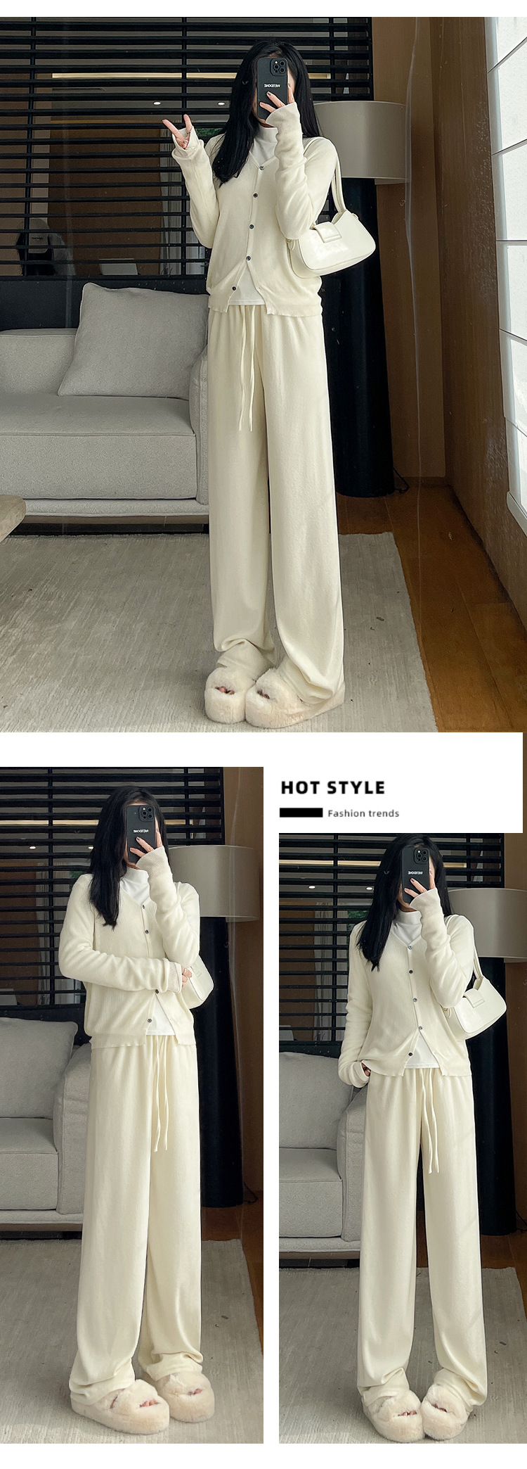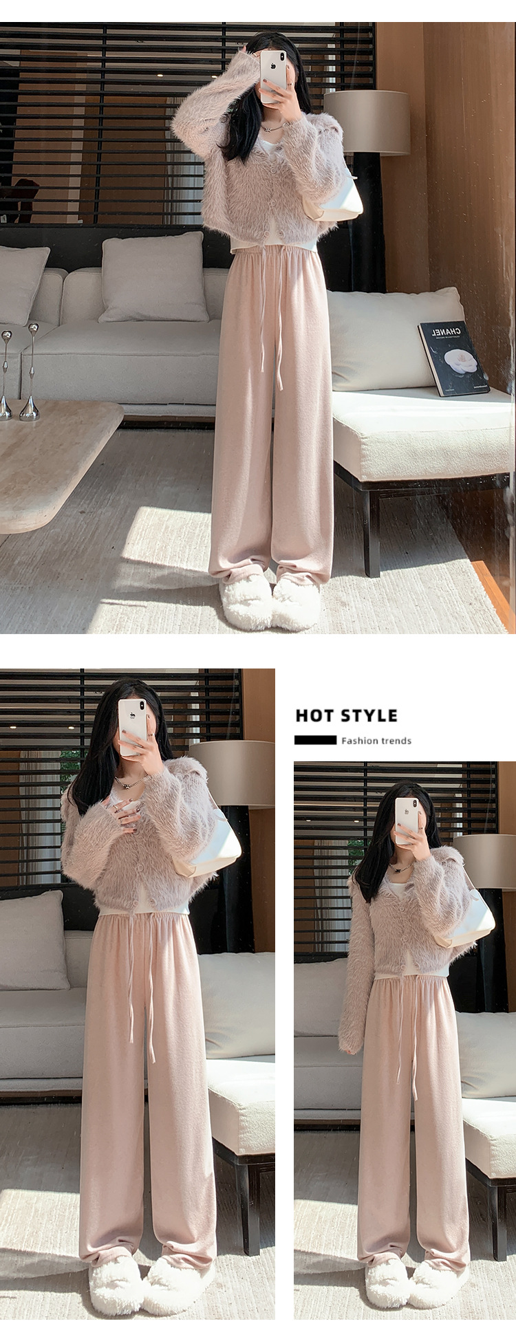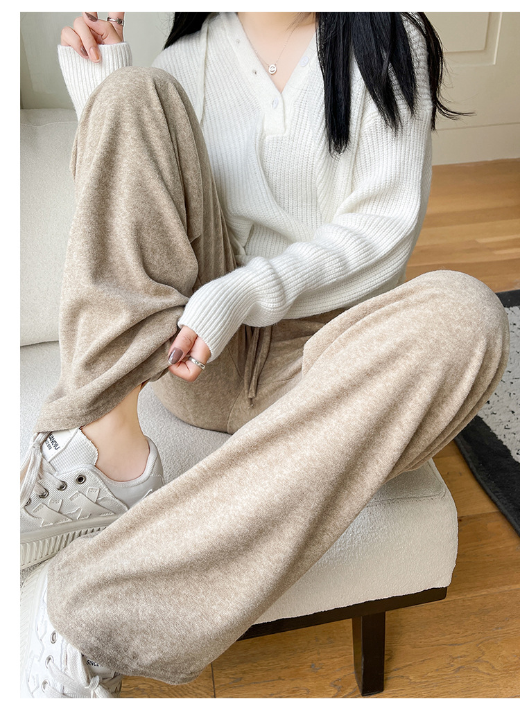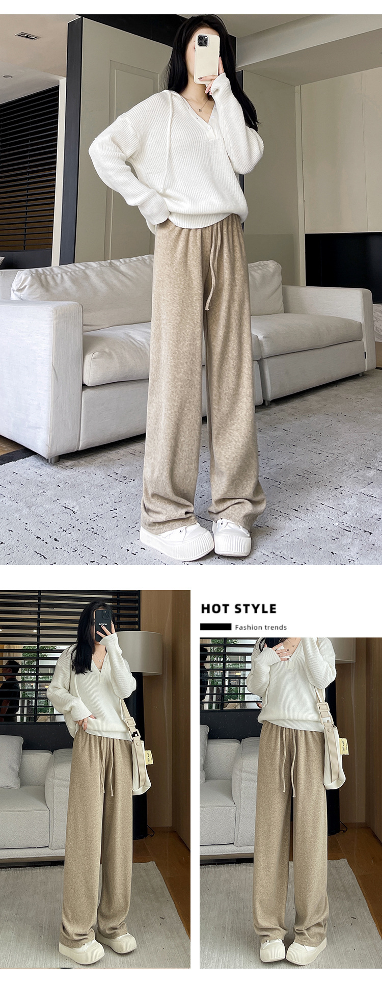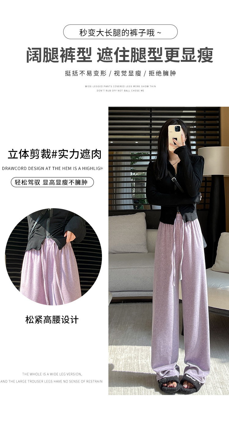 毛巾裤女裤子2023春秋新款垂感慵懒直筒休闲裤显瘦宽松高腰阔腿裤