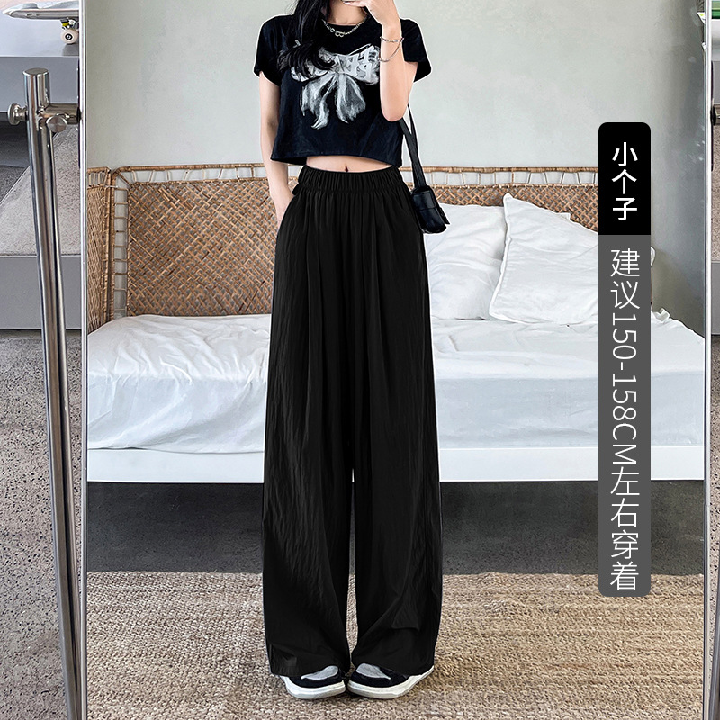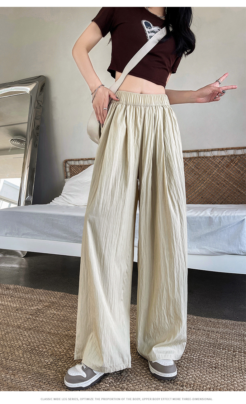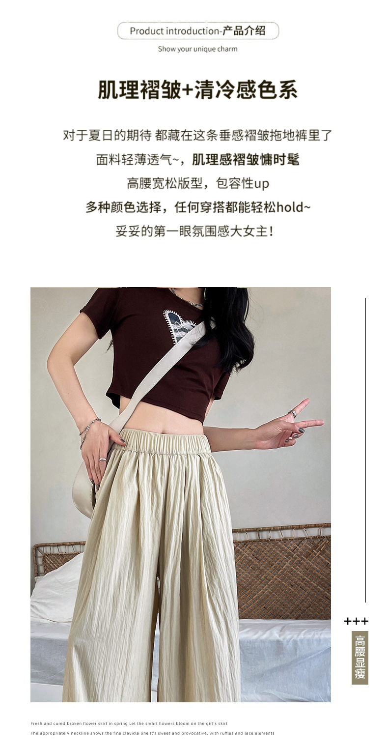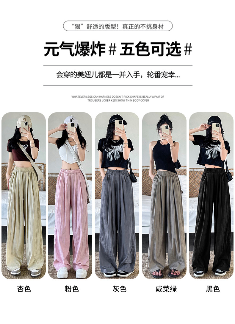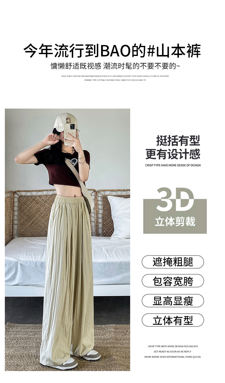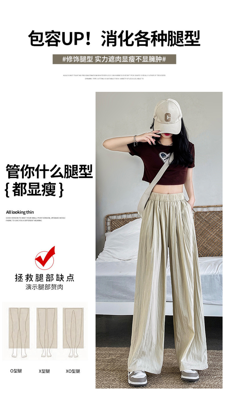 杏色冰丝阔腿裤垂感裤子女夏高腰休闲裤日系慵懒山本裤锦棉直筒裤
