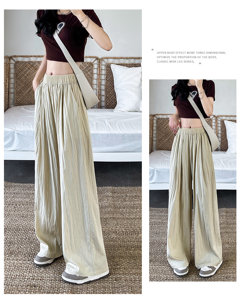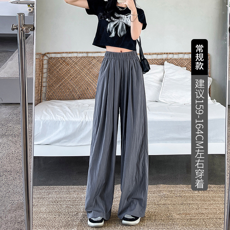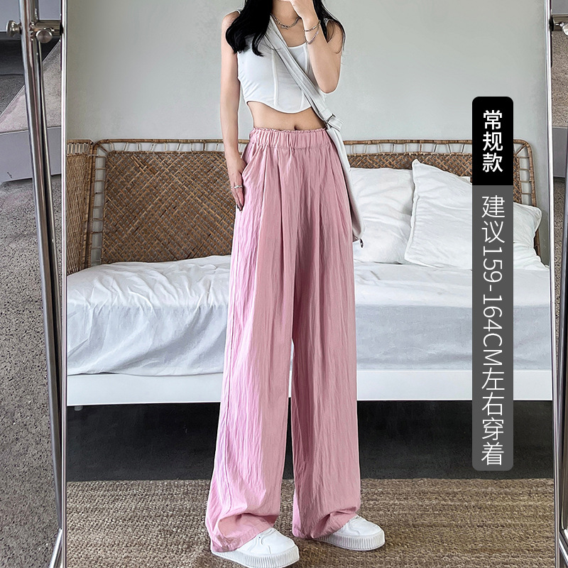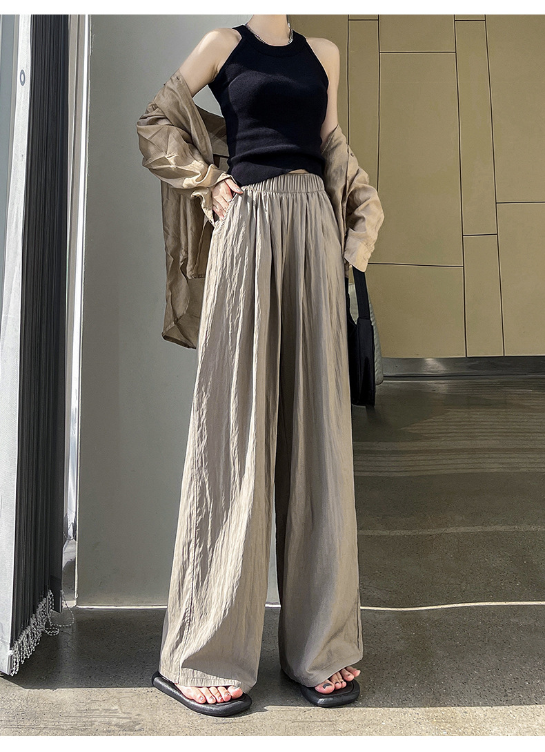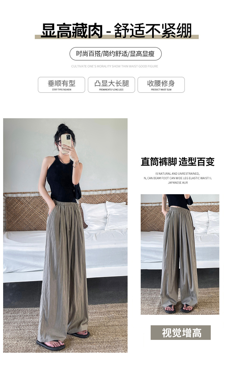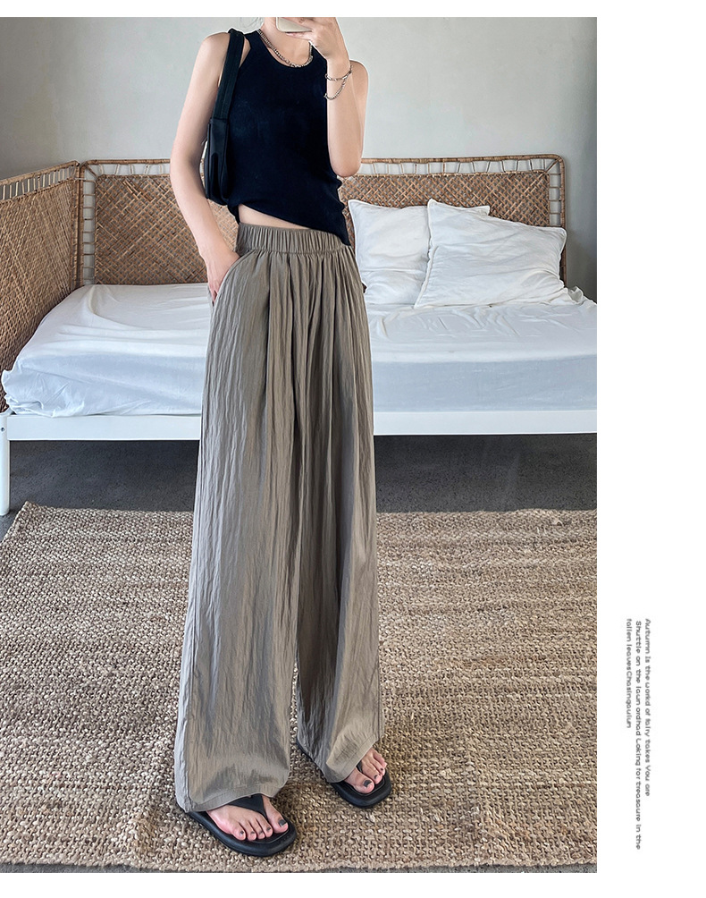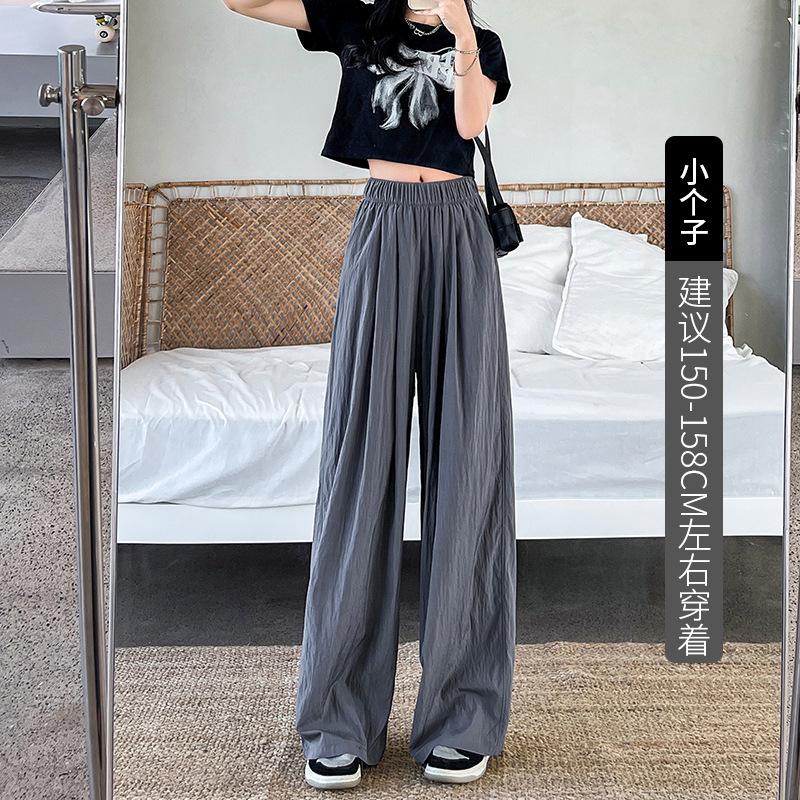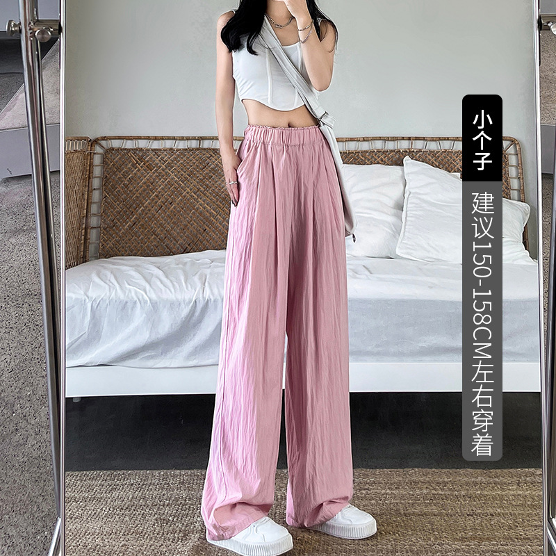 杏色冰丝阔腿裤垂感裤子女夏高腰休闲裤日系慵懒山本裤锦棉直筒裤