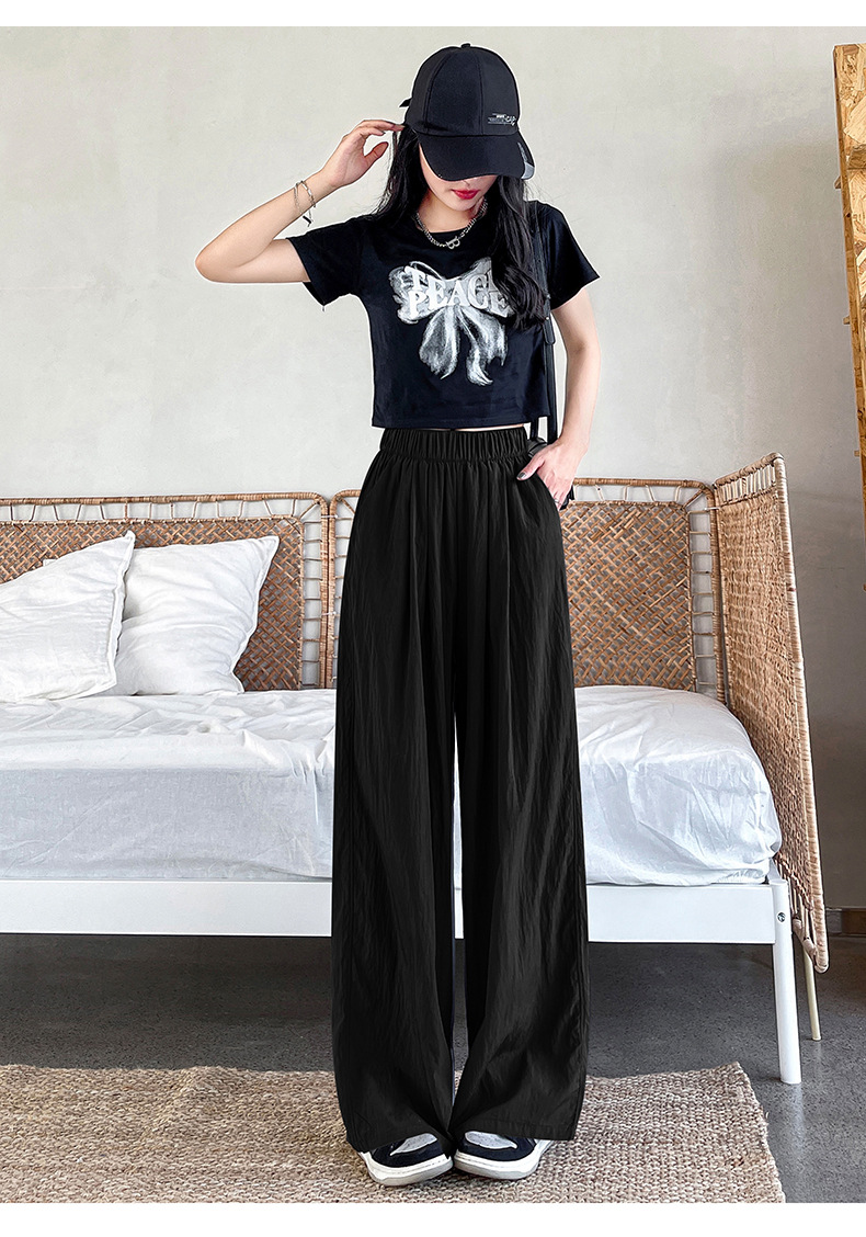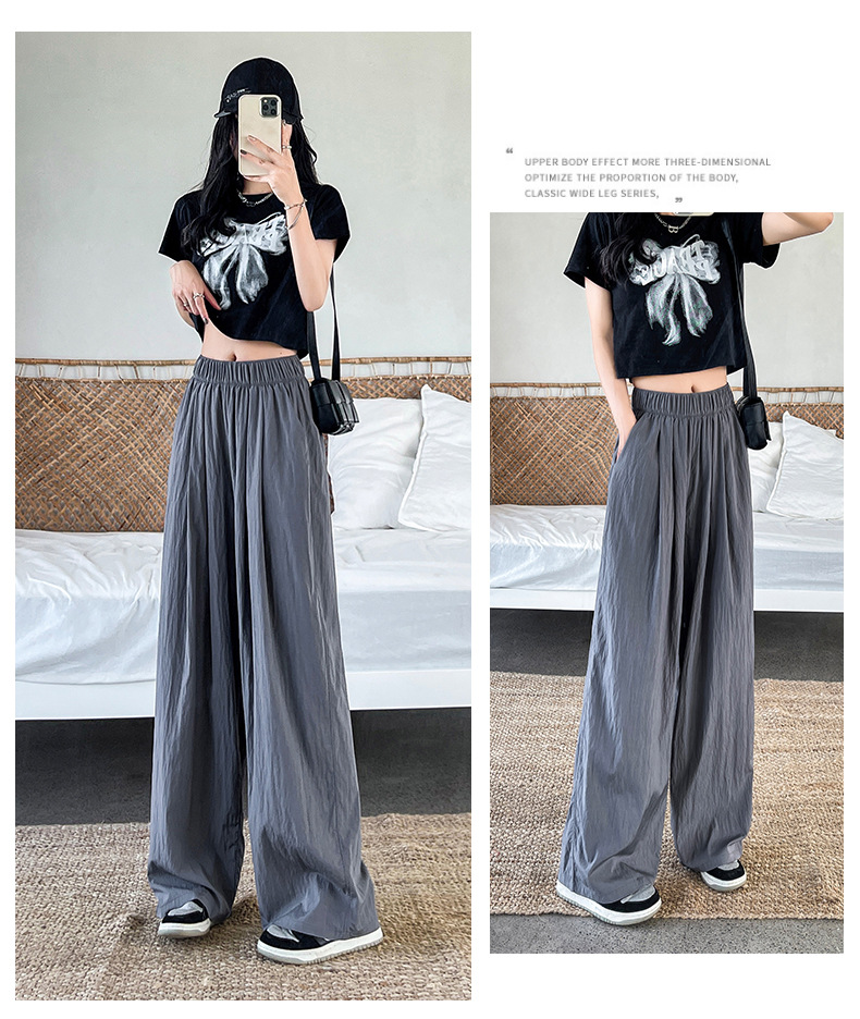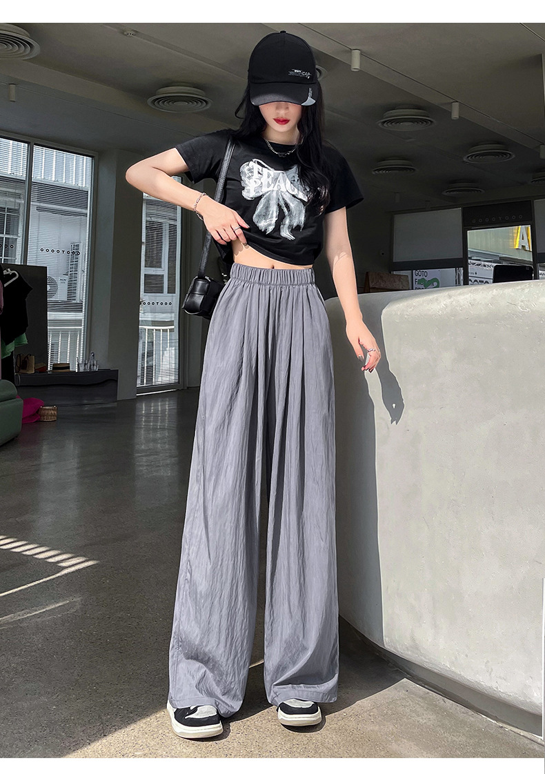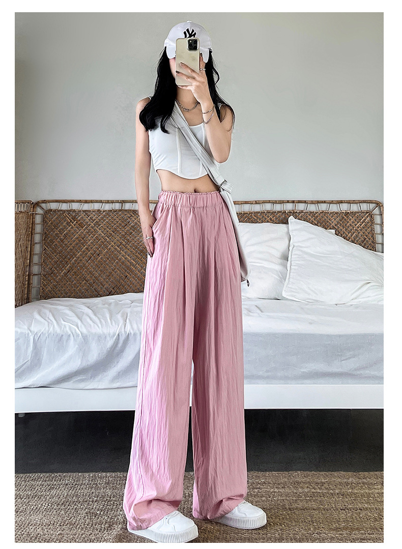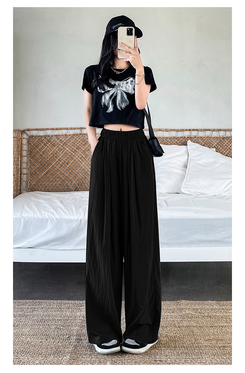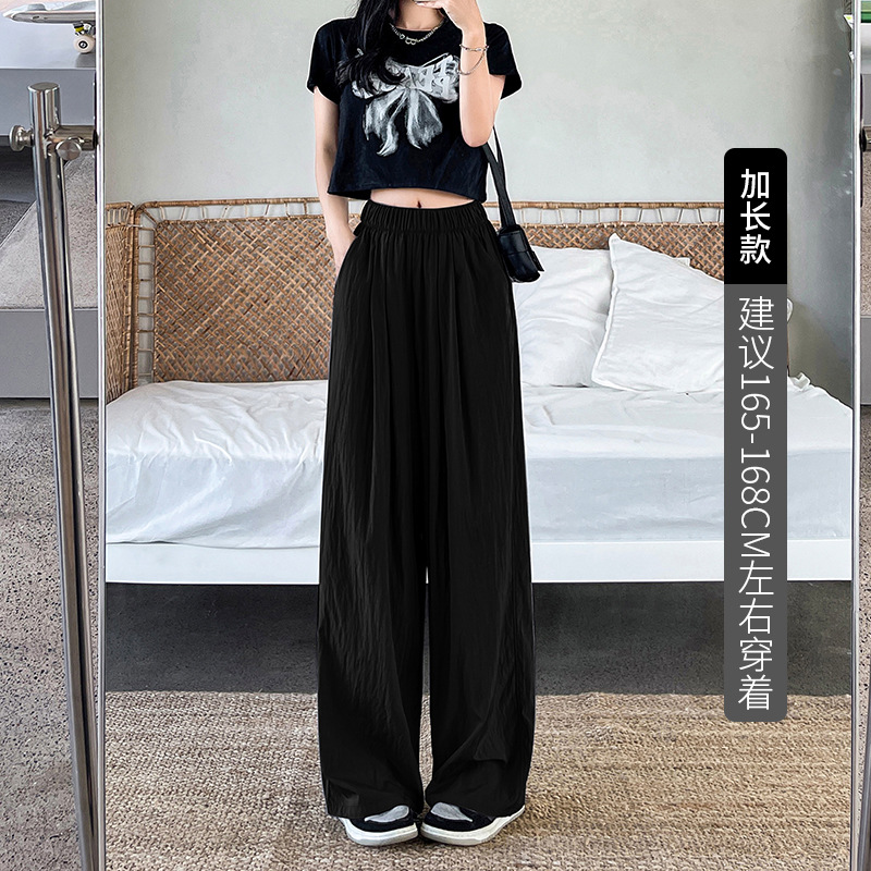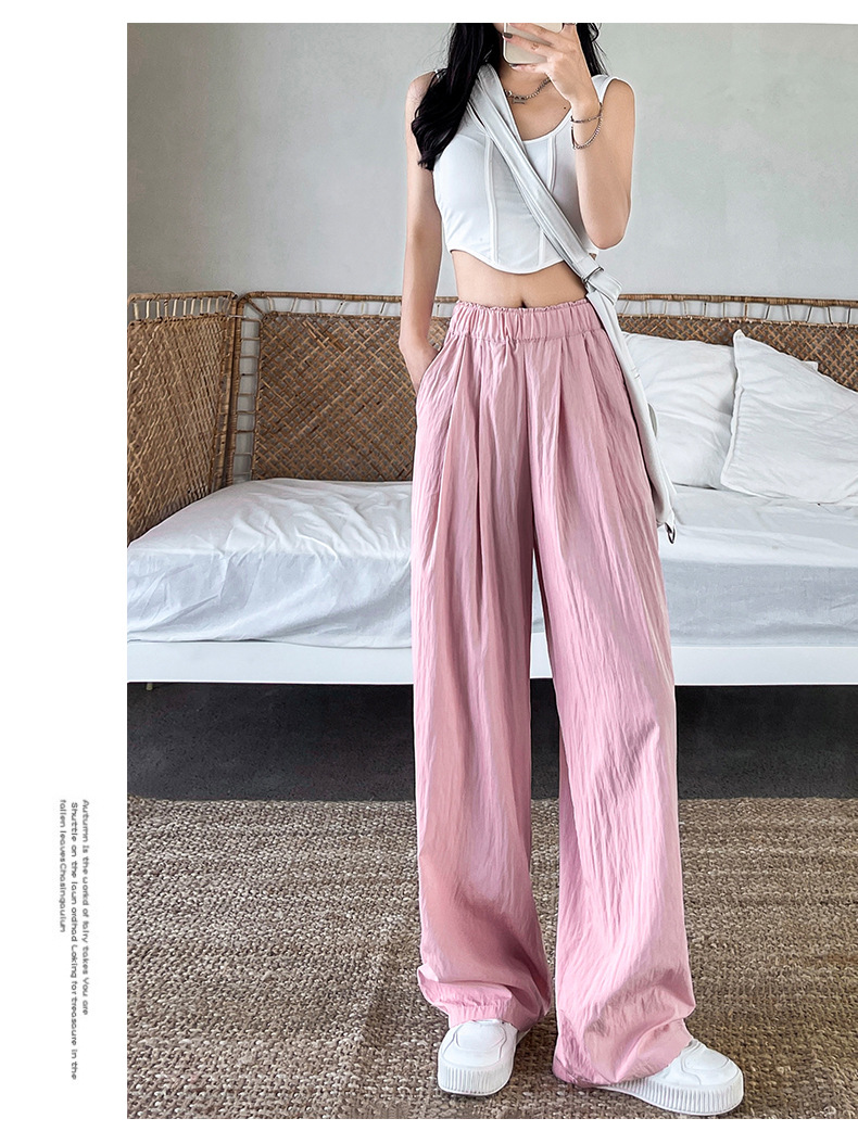 杏色冰丝阔腿裤垂感裤子女夏高腰休闲裤日系慵懒山本裤锦棉直筒裤