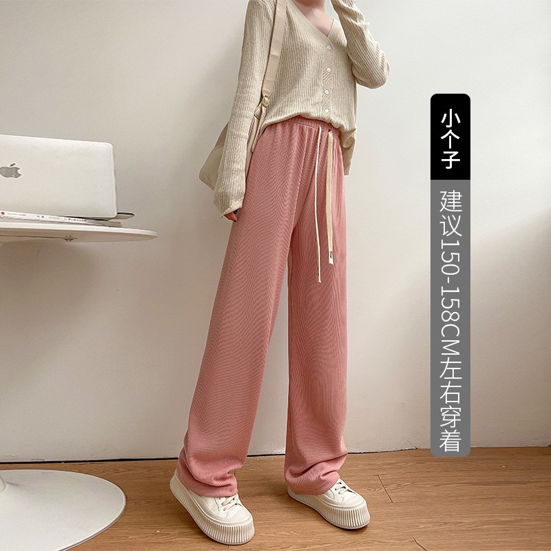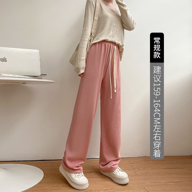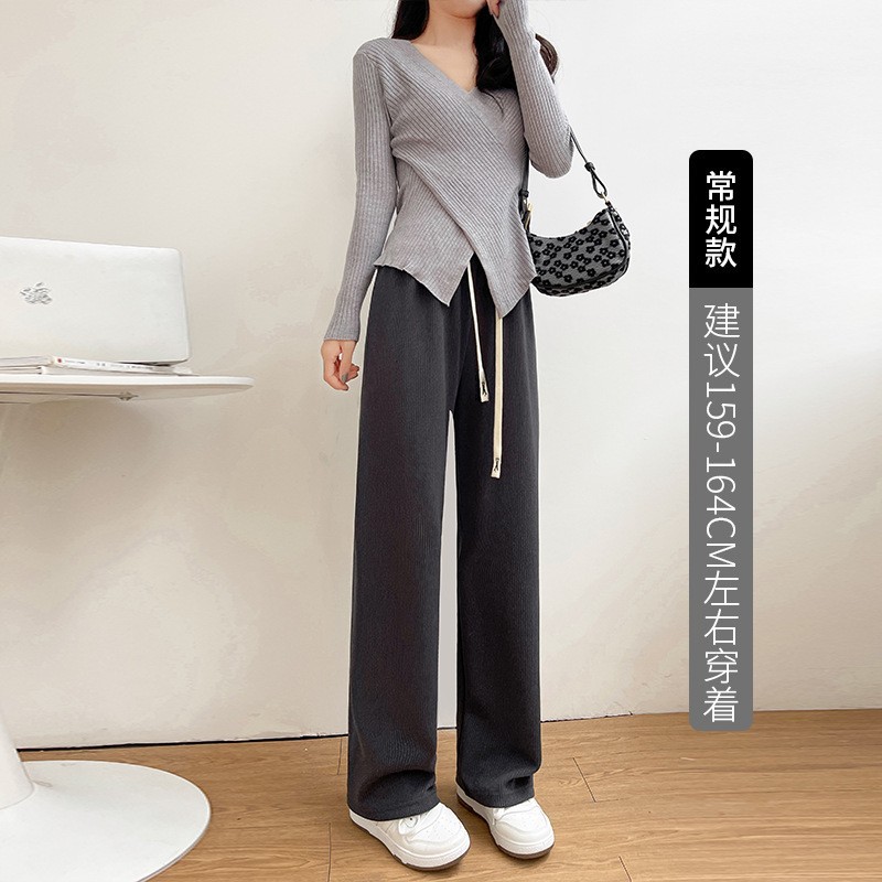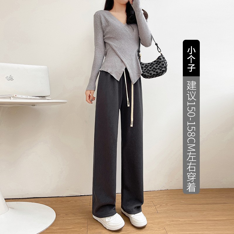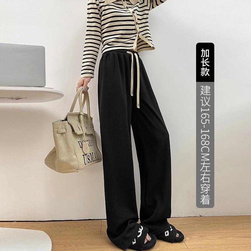 加工定制暖宝宝阔腿裤垂感裤子女春秋休闲高腰直筒长裤针织拖地裤