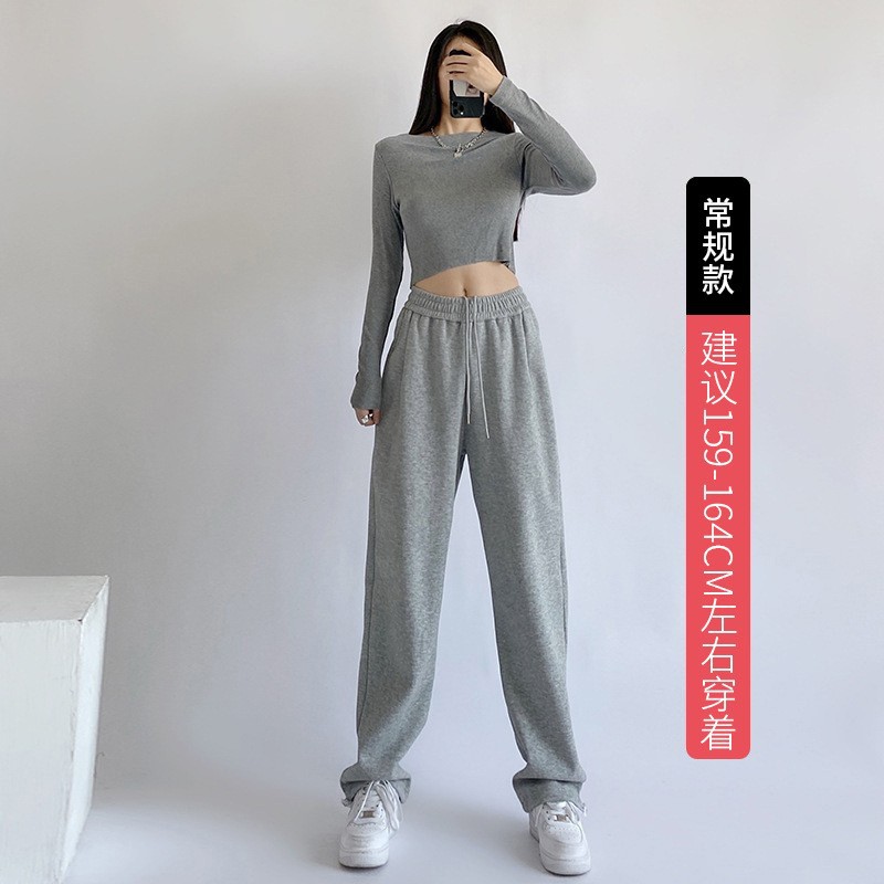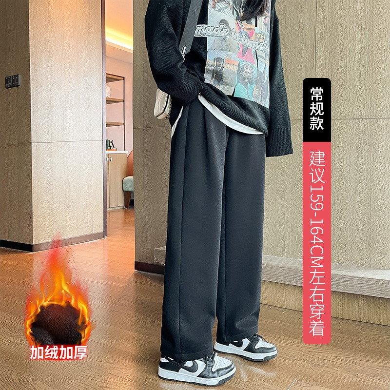 华夫格运动裤黑色裤子女秋冬加绒宽松女装卫裤显瘦垂感阔腿裤女裤