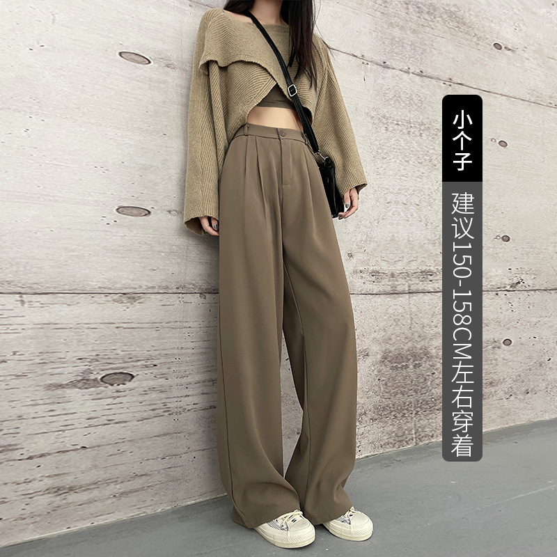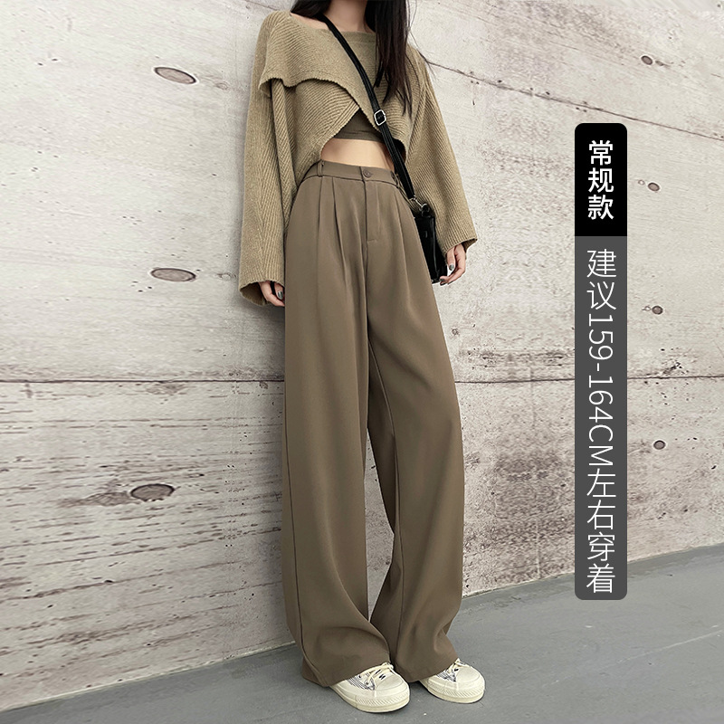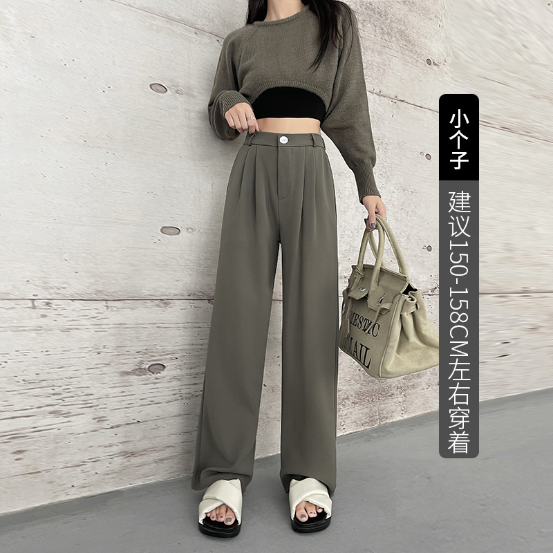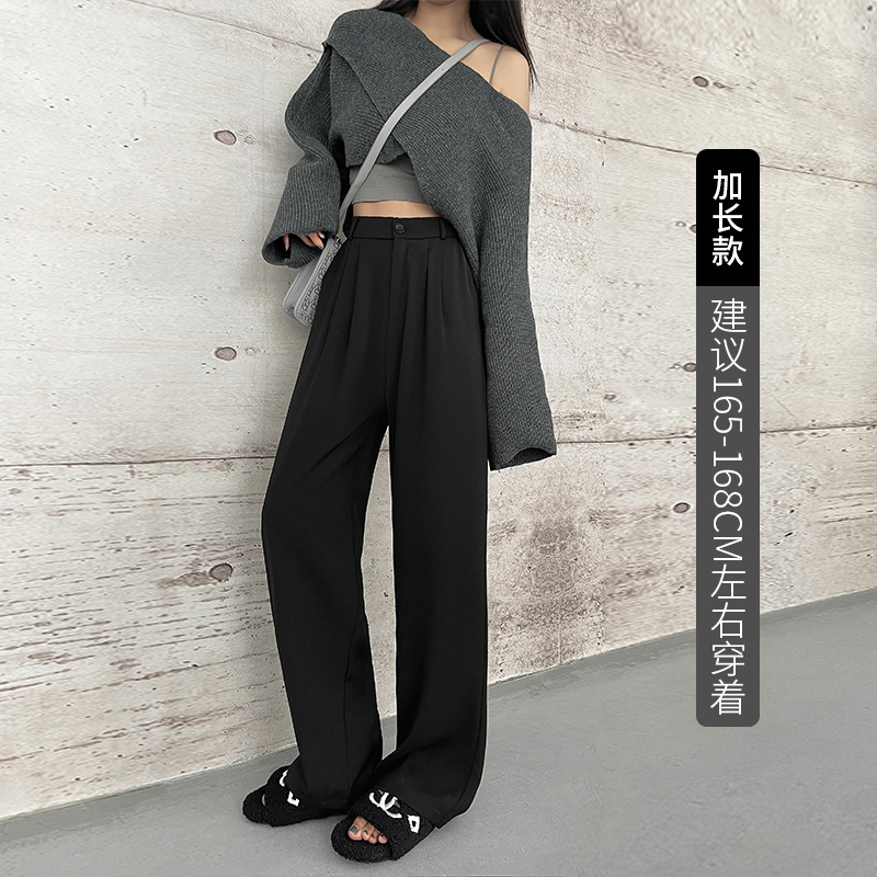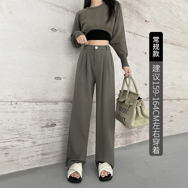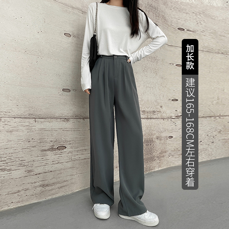 【摩根丝面料】灰色拖地西裤阔腿裤子女秋冬加厚休闲垂坠感直筒裤