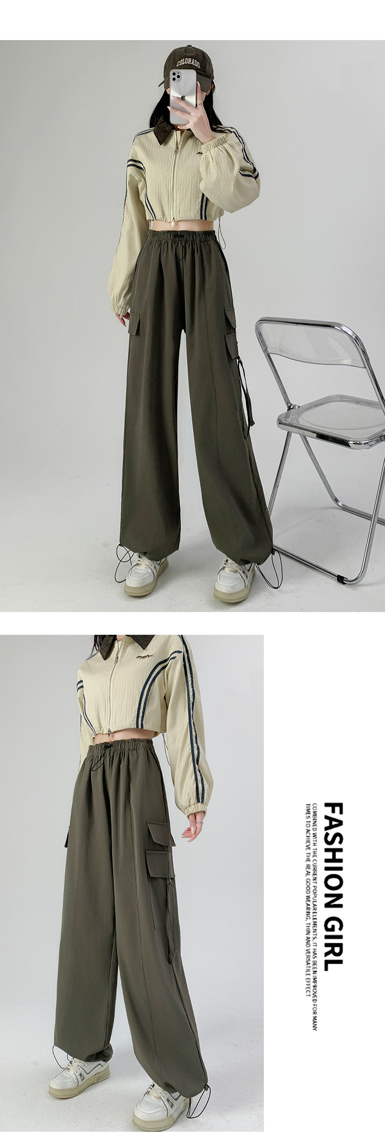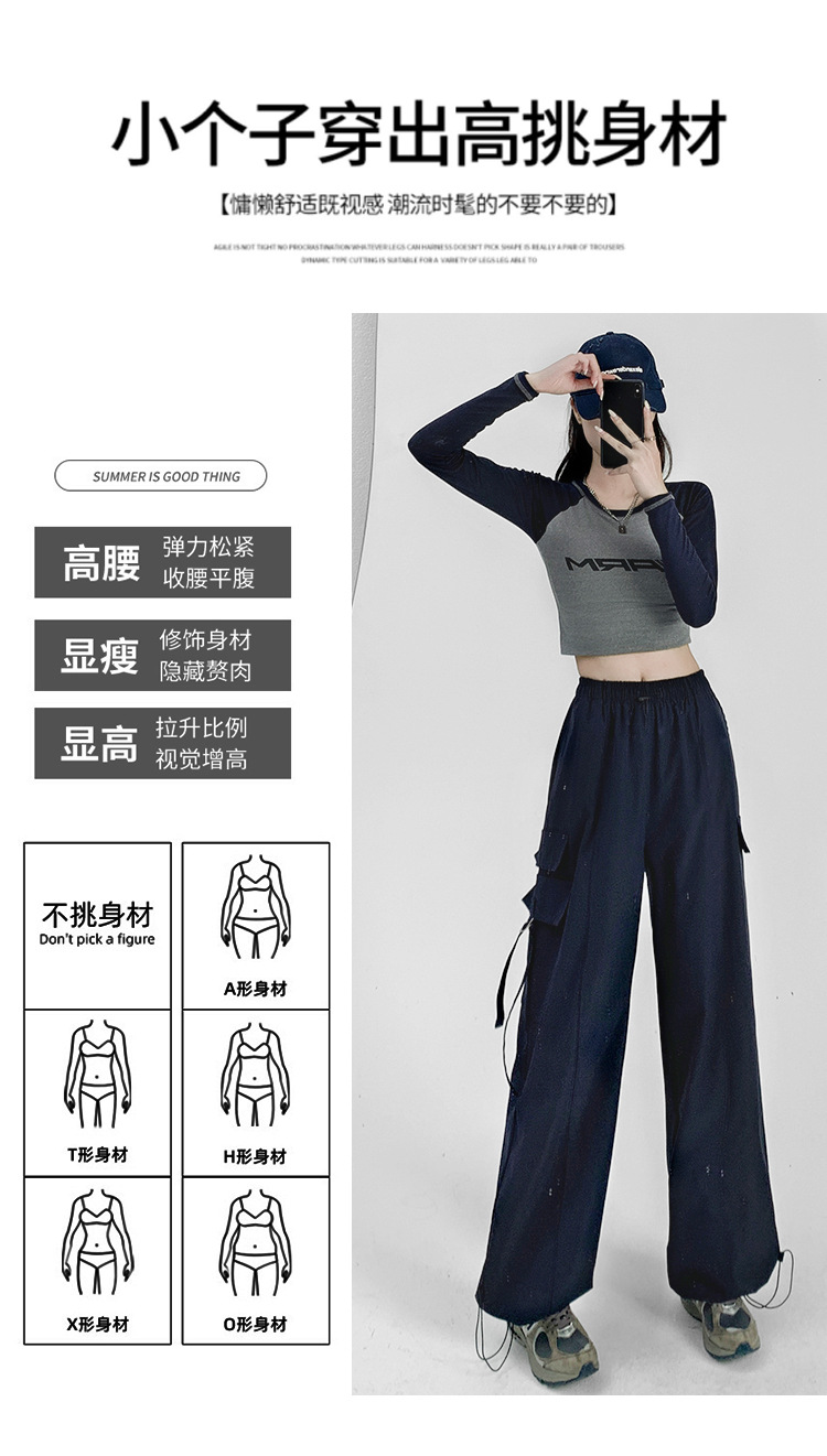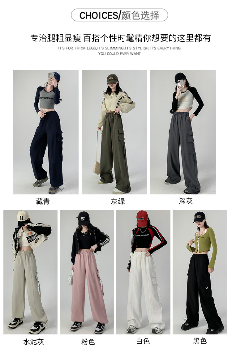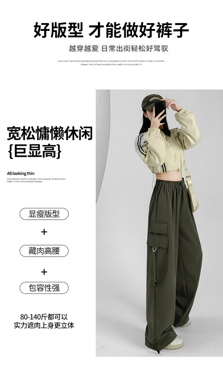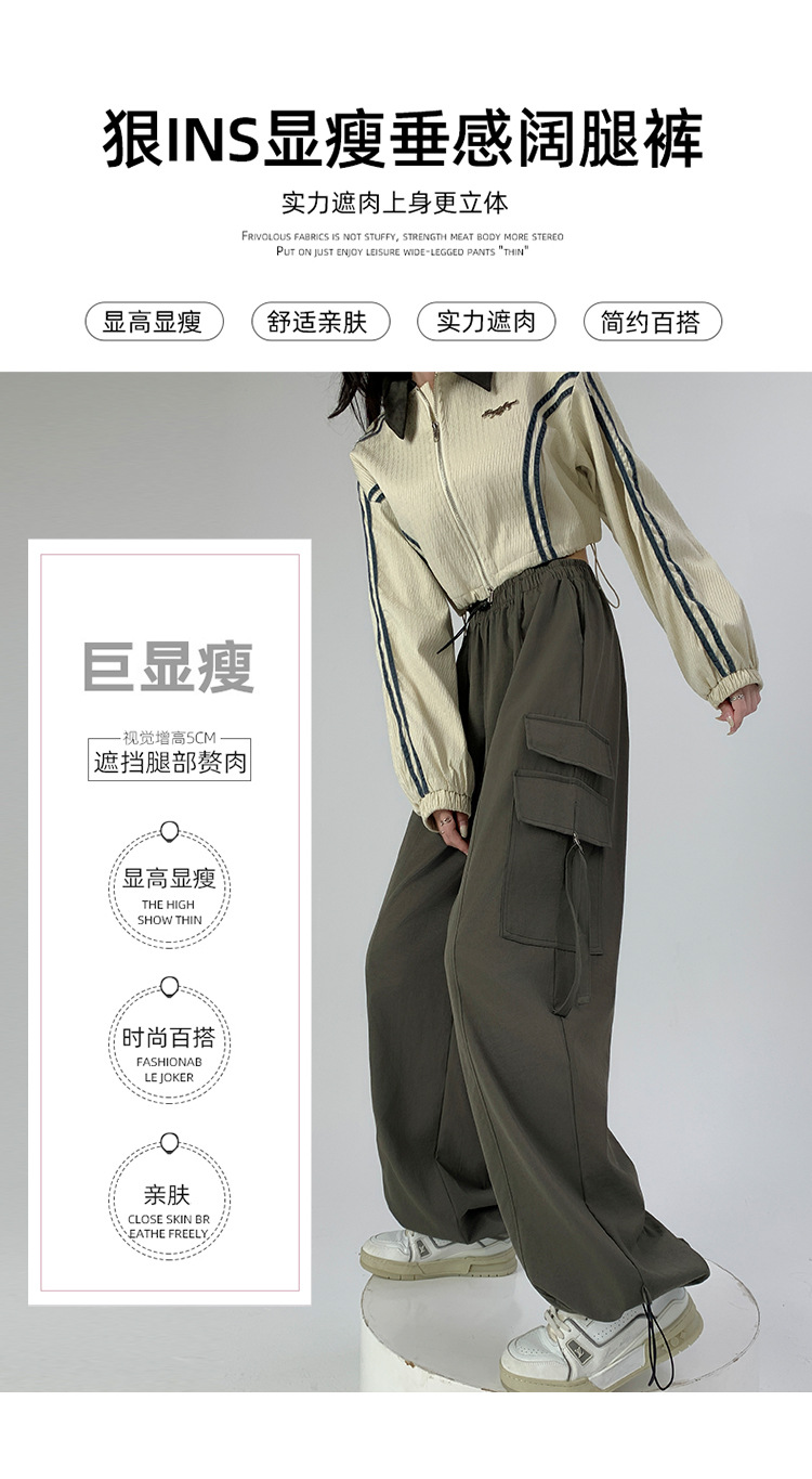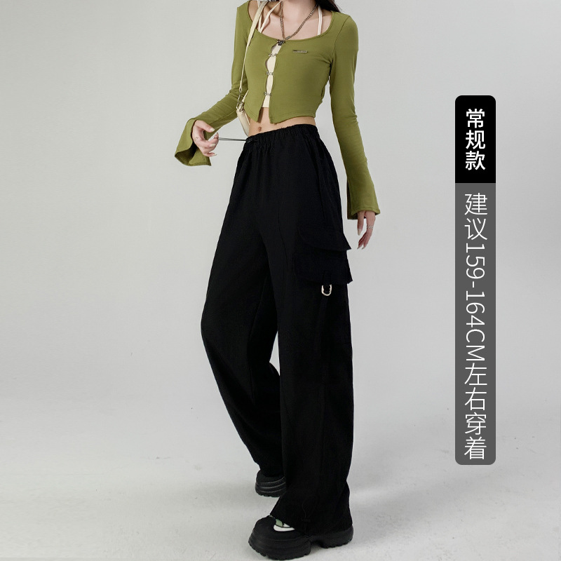 美式工装裤女裤子秋季新款高腰直筒宽松阔腿裤休闲女装运动裤女裤
