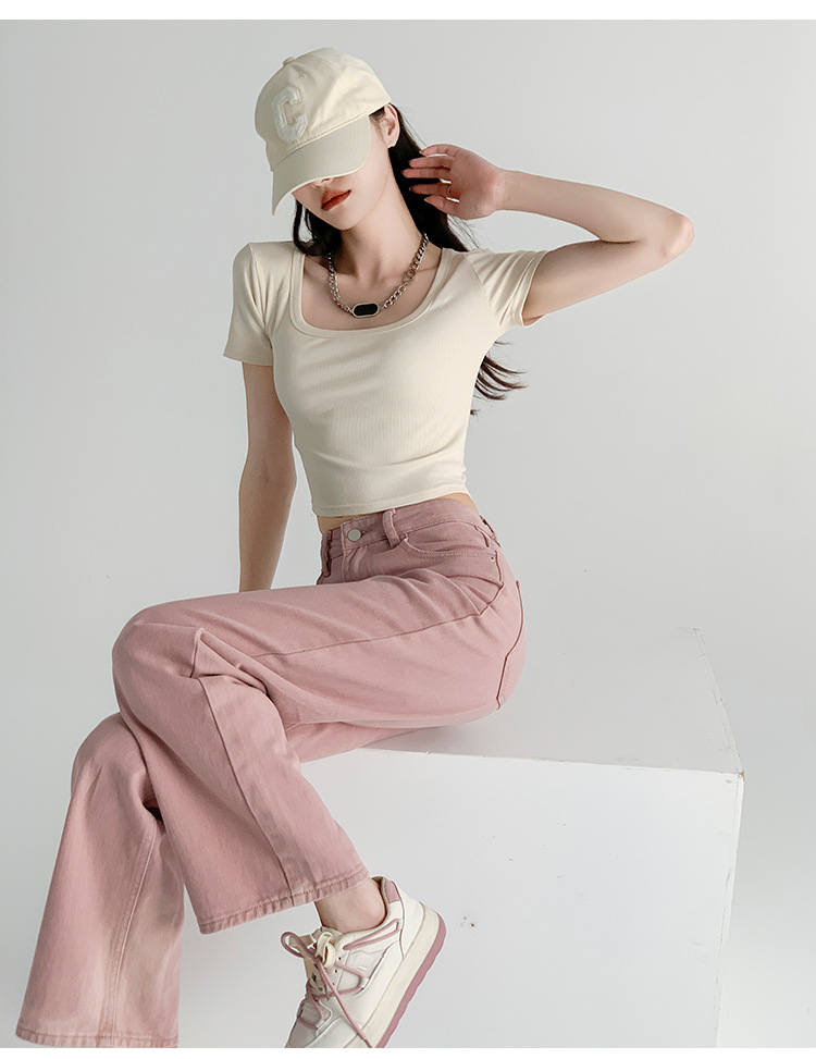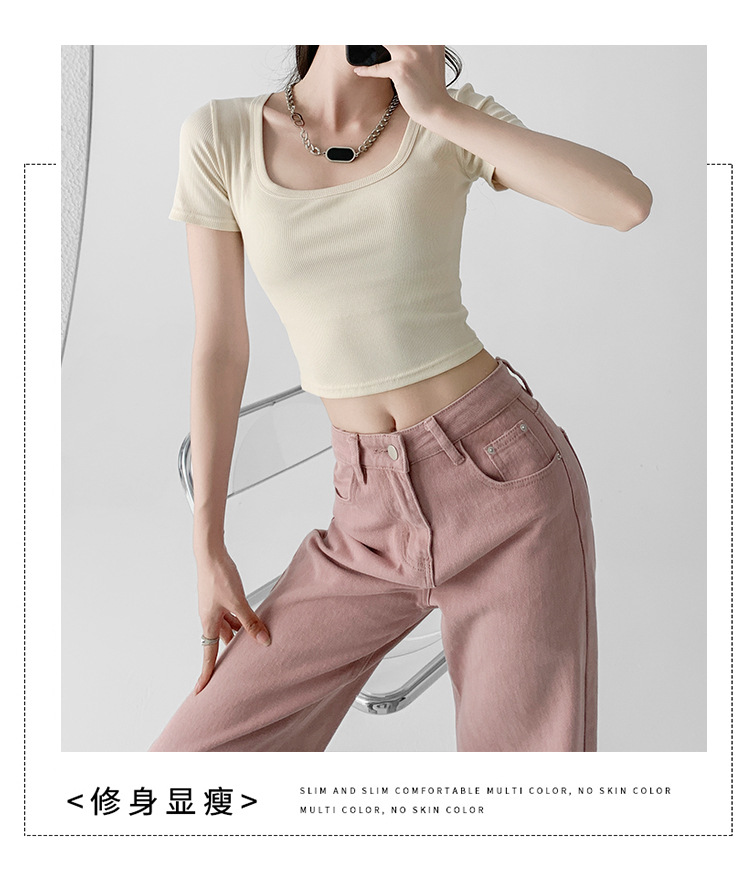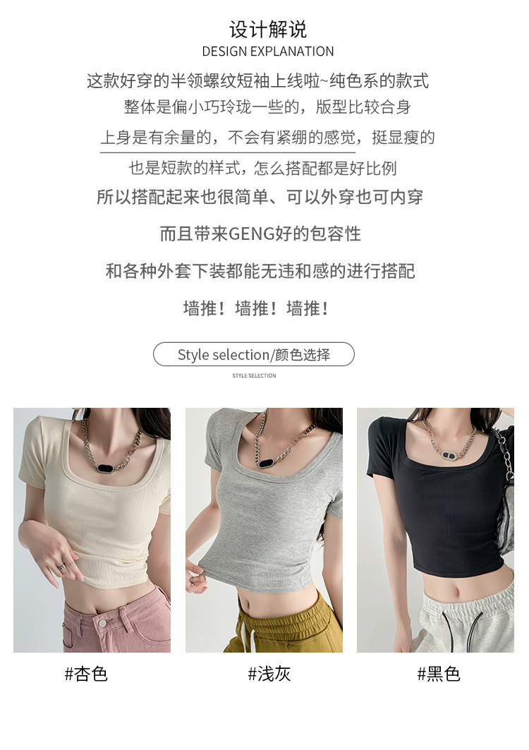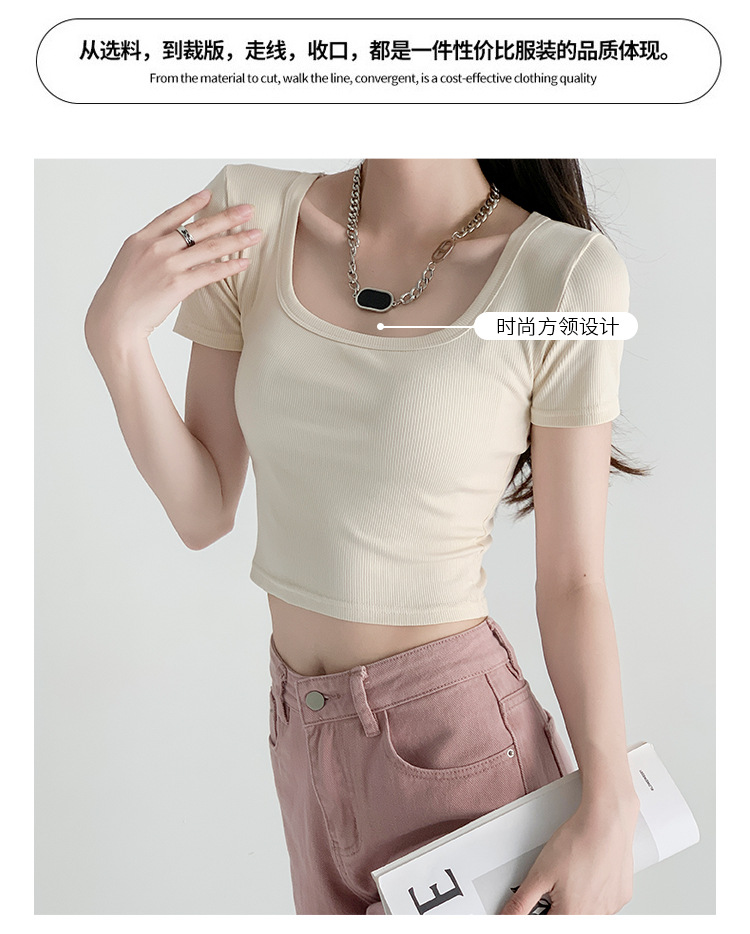 辣妹方领短袖T恤女夏季新款小众设计感打底衫修身露脐短款上衣潮