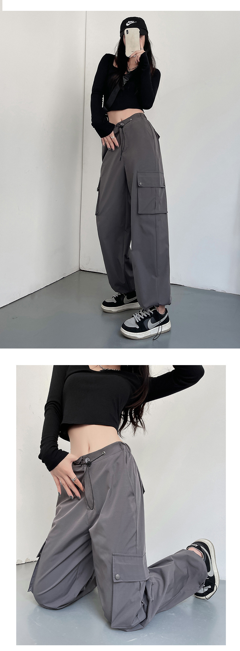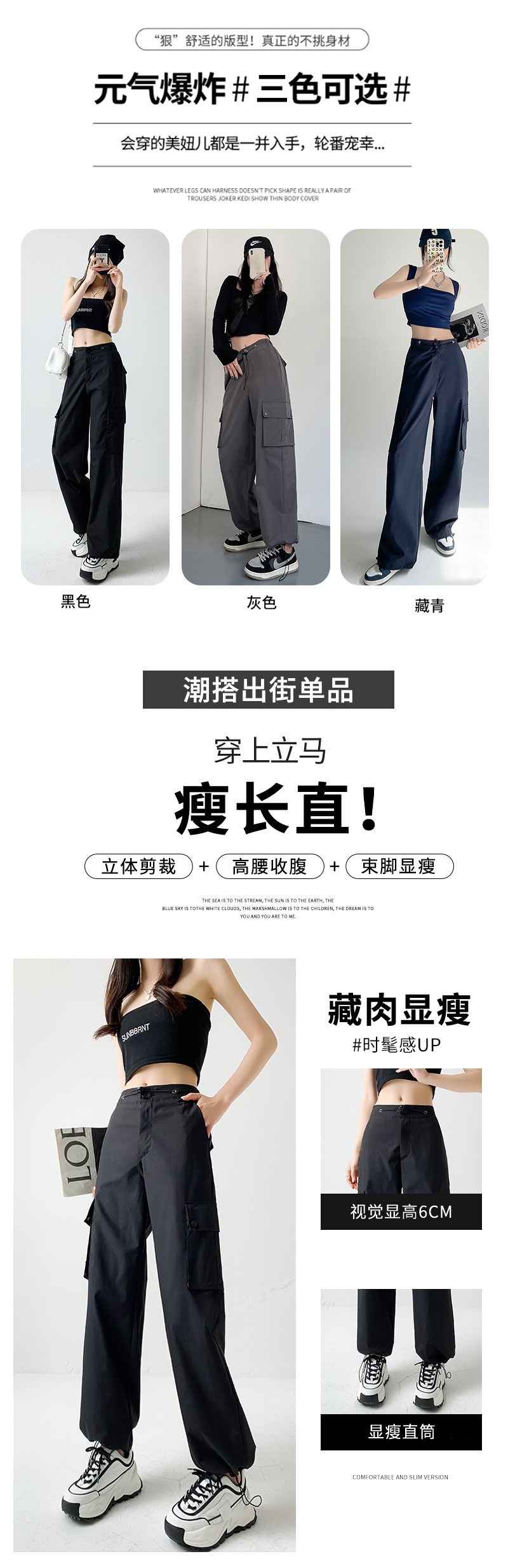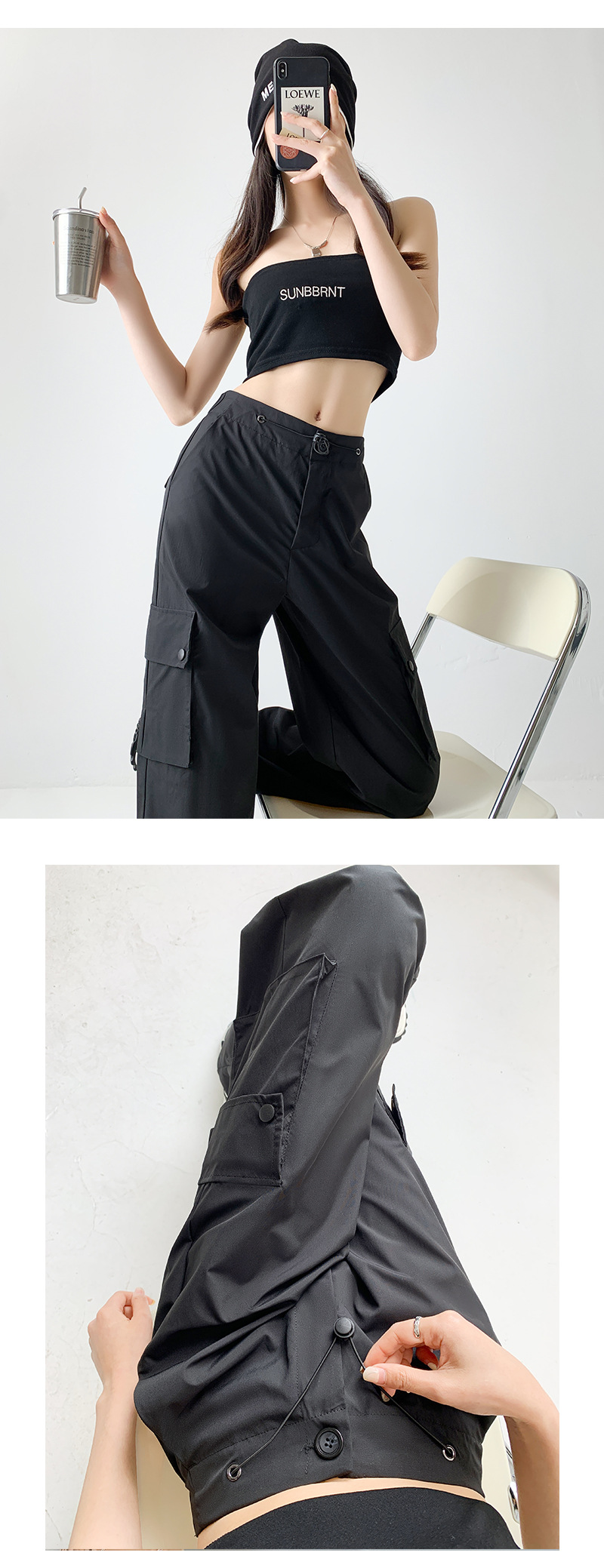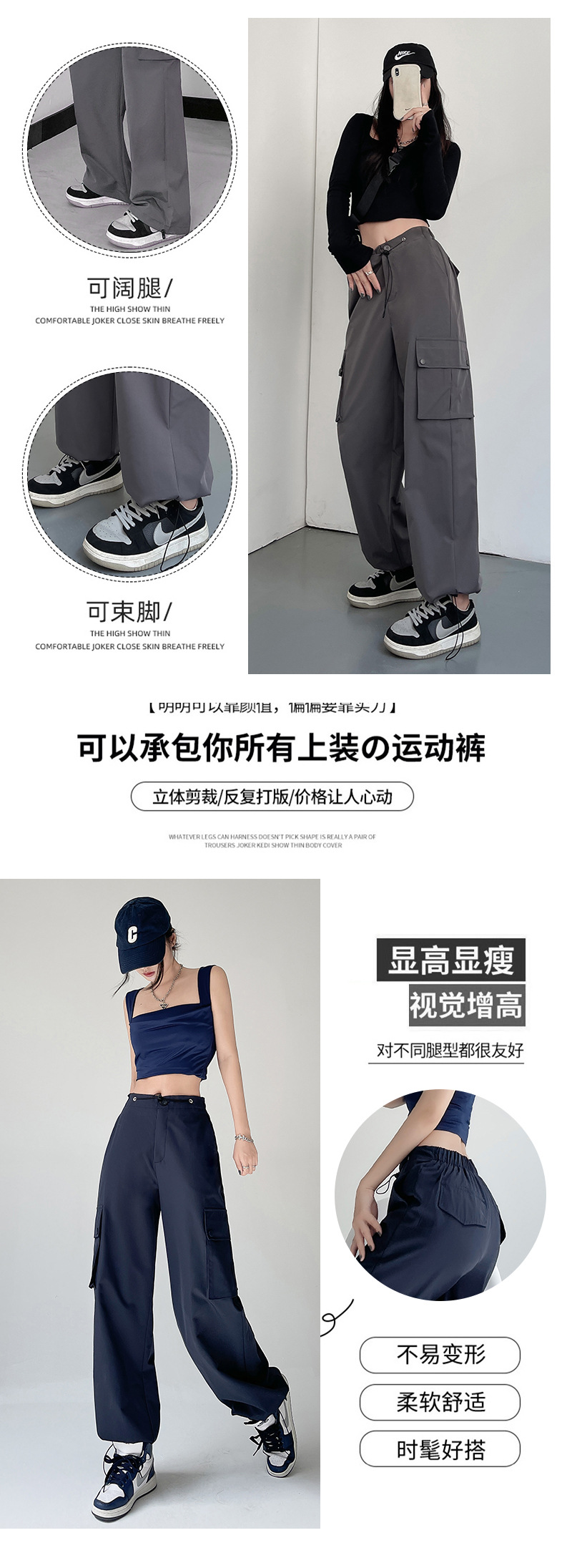 包边工装裤春秋2023女装新款裤子女夏辣妹休闲卫裤直筒美式阔腿裤