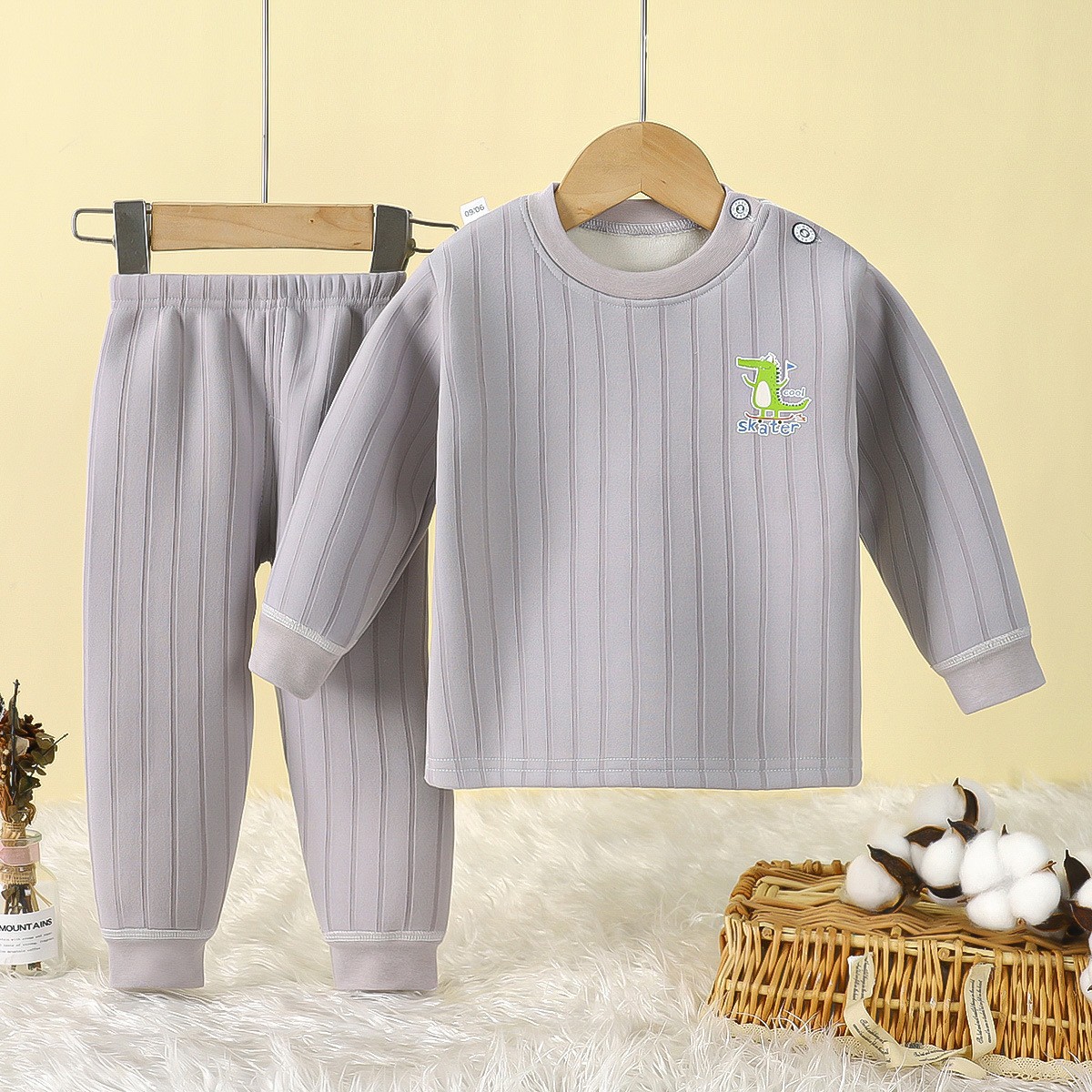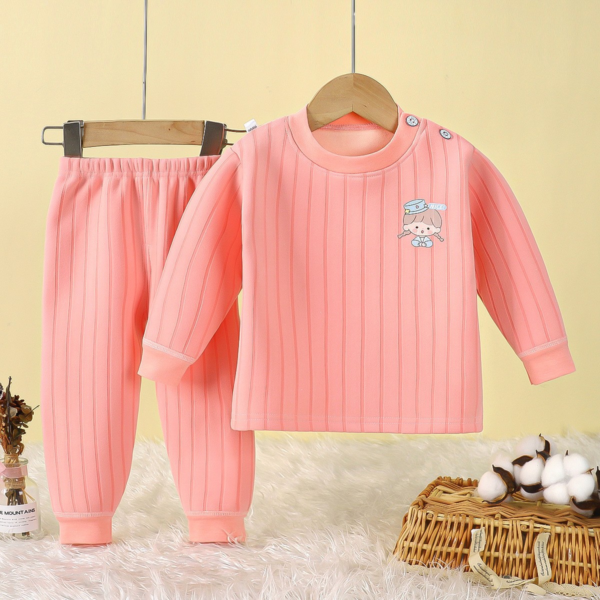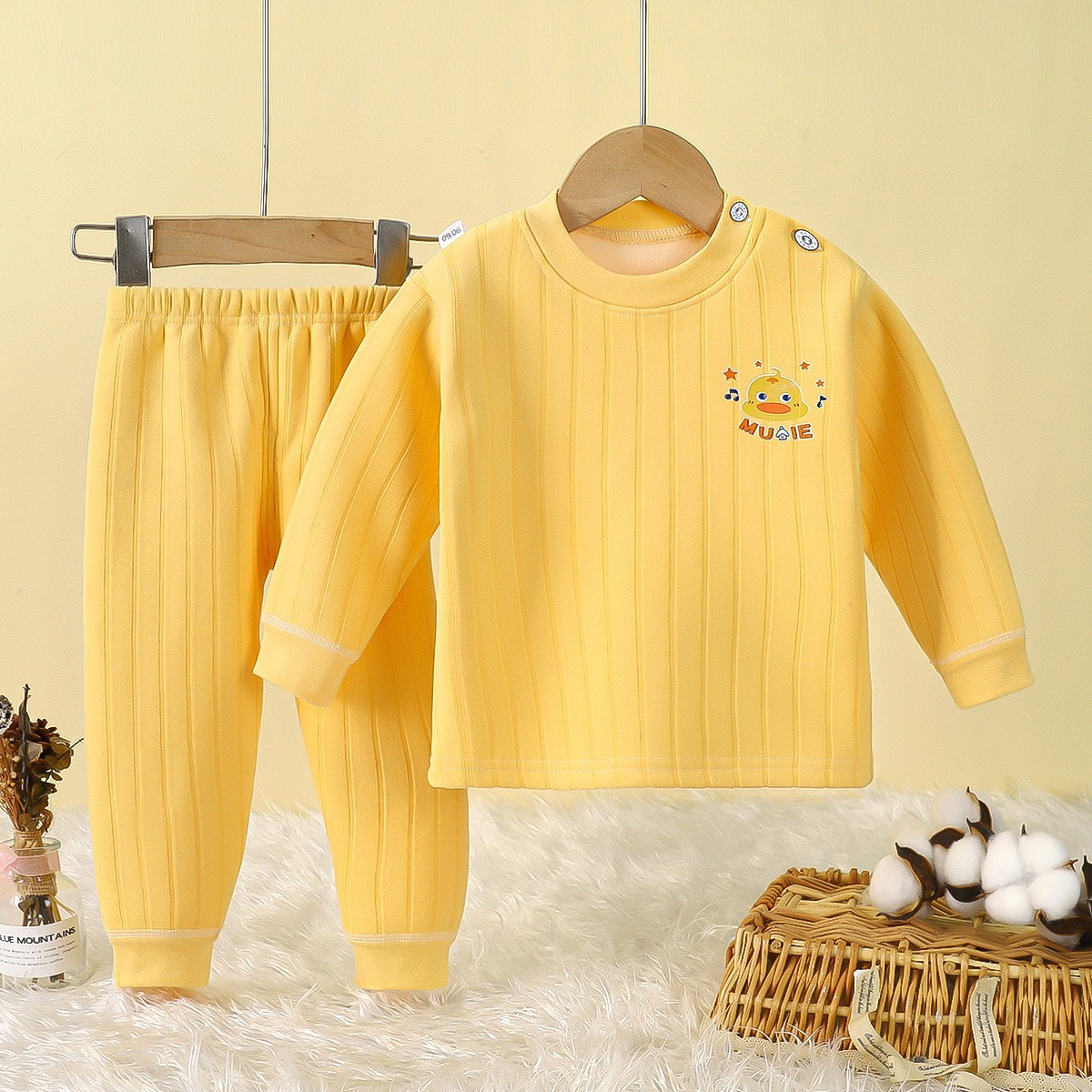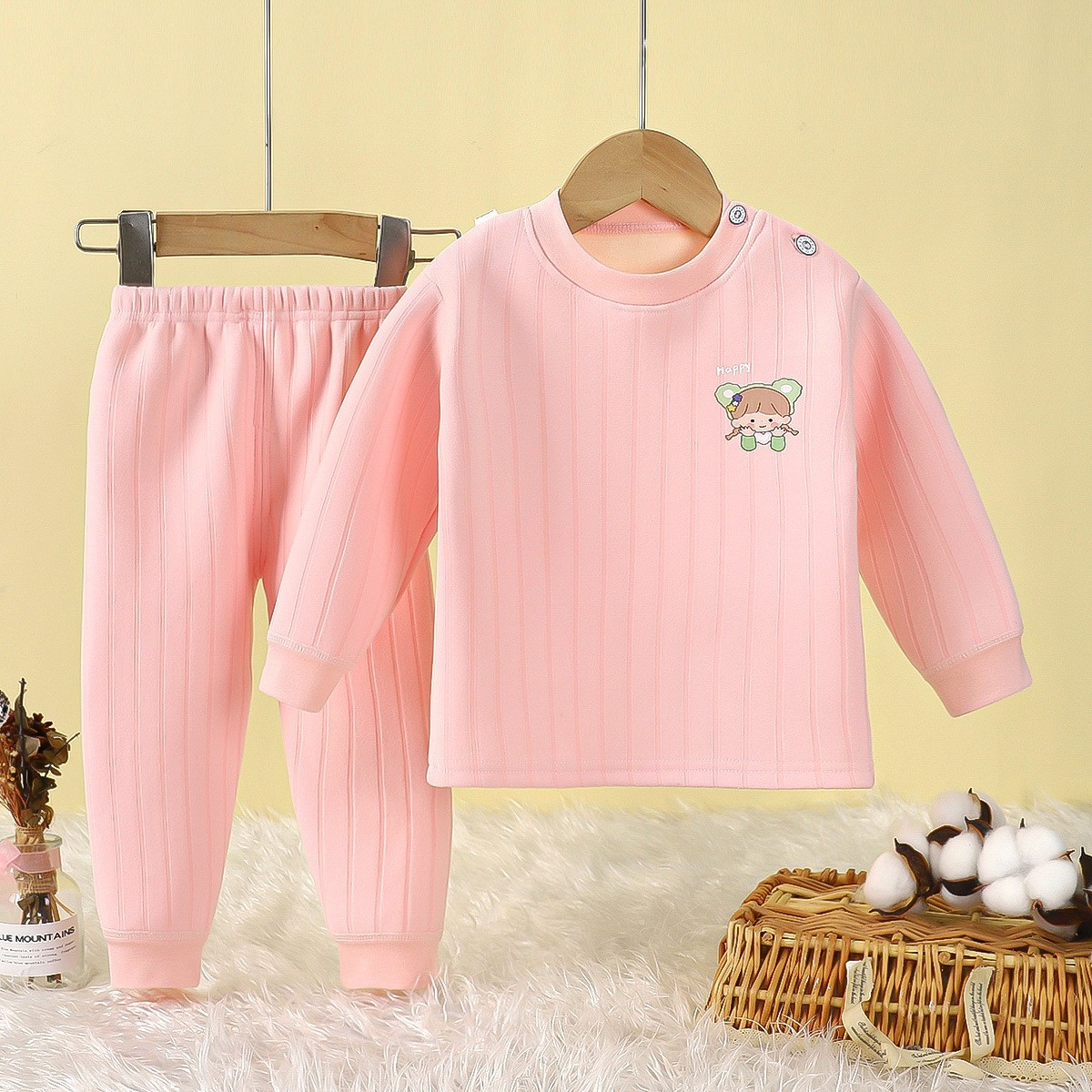 冬季新款三层保暖空气棉套装纯棉男宝女宝睡衣家居服内衣套装