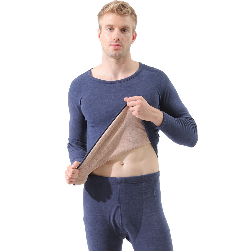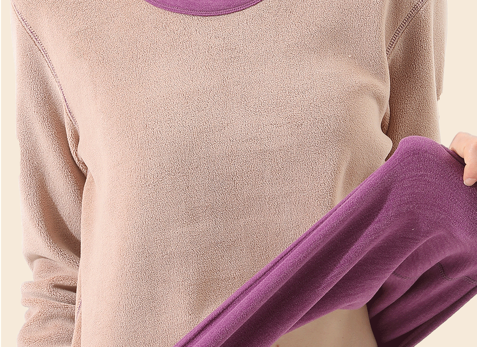 冬羊羔绒加绒加厚双层炫彩保暖衣男款女士中老年德绒保暖内衣套装