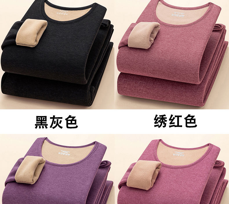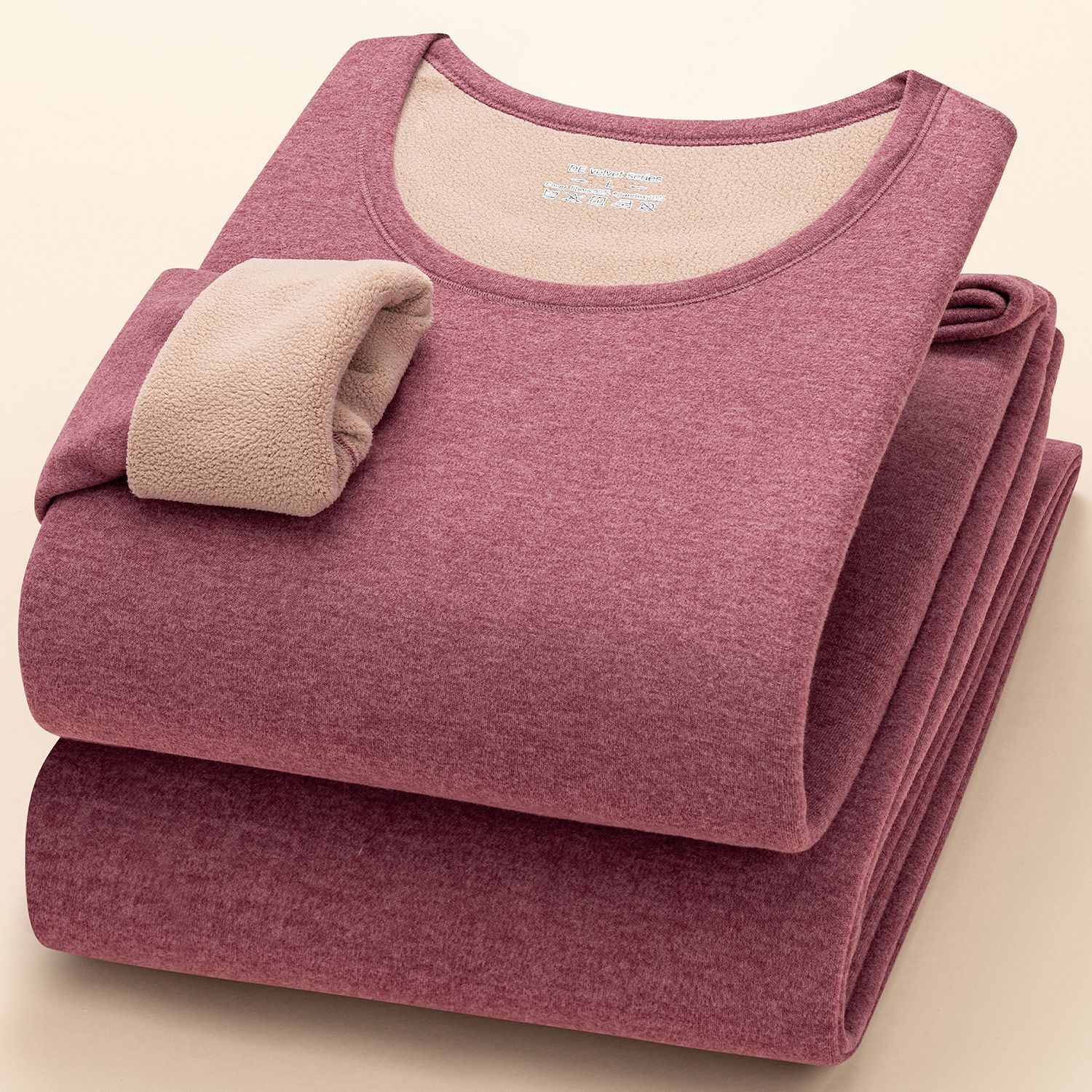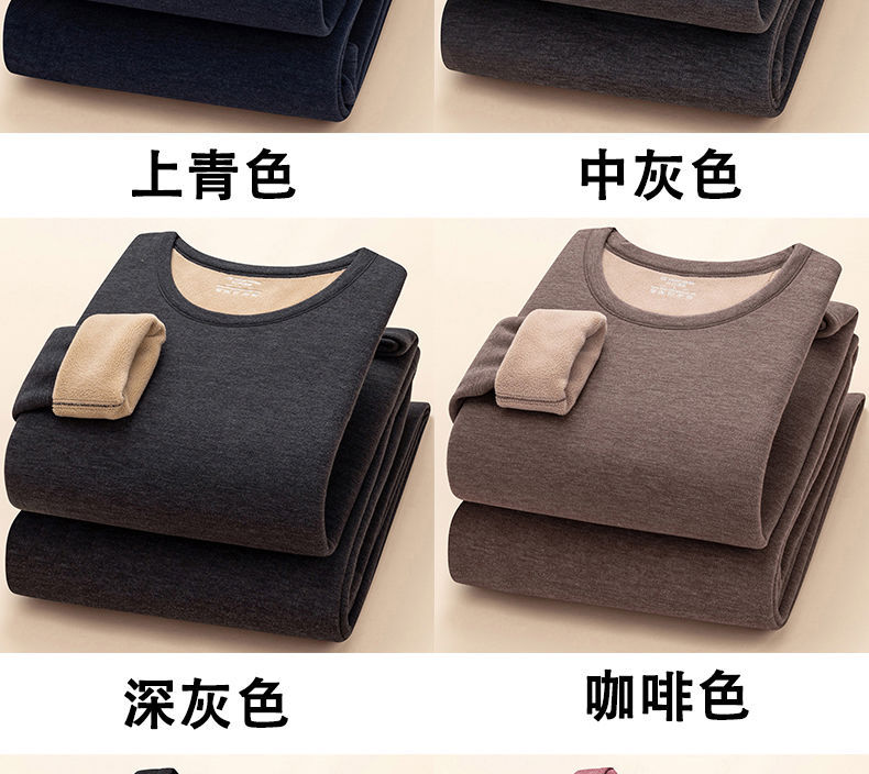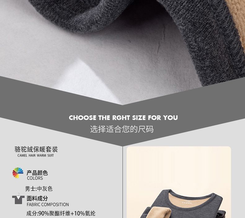 男女士骆驼绒加厚秋衣秋裤保暖内衣套装圆领全包边款棉毛衫秋冬季