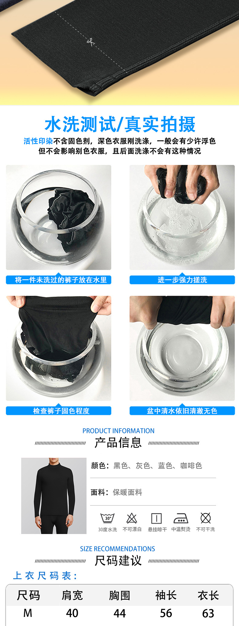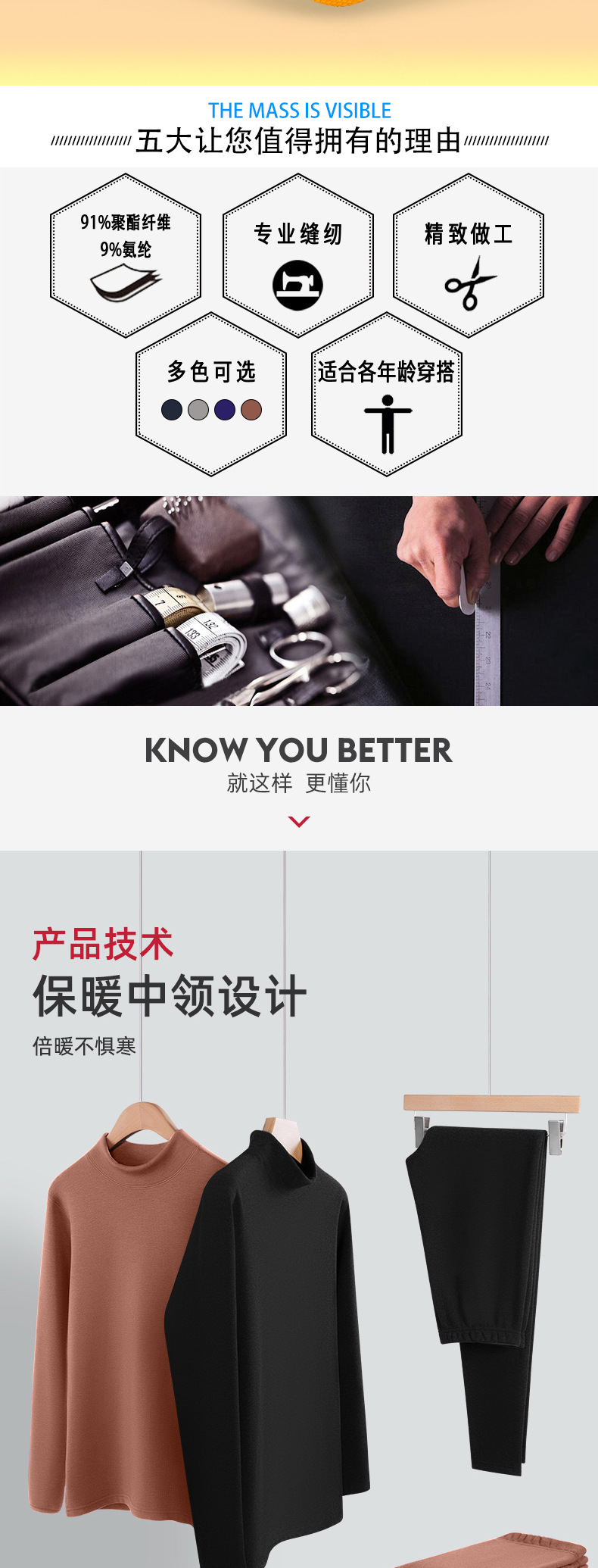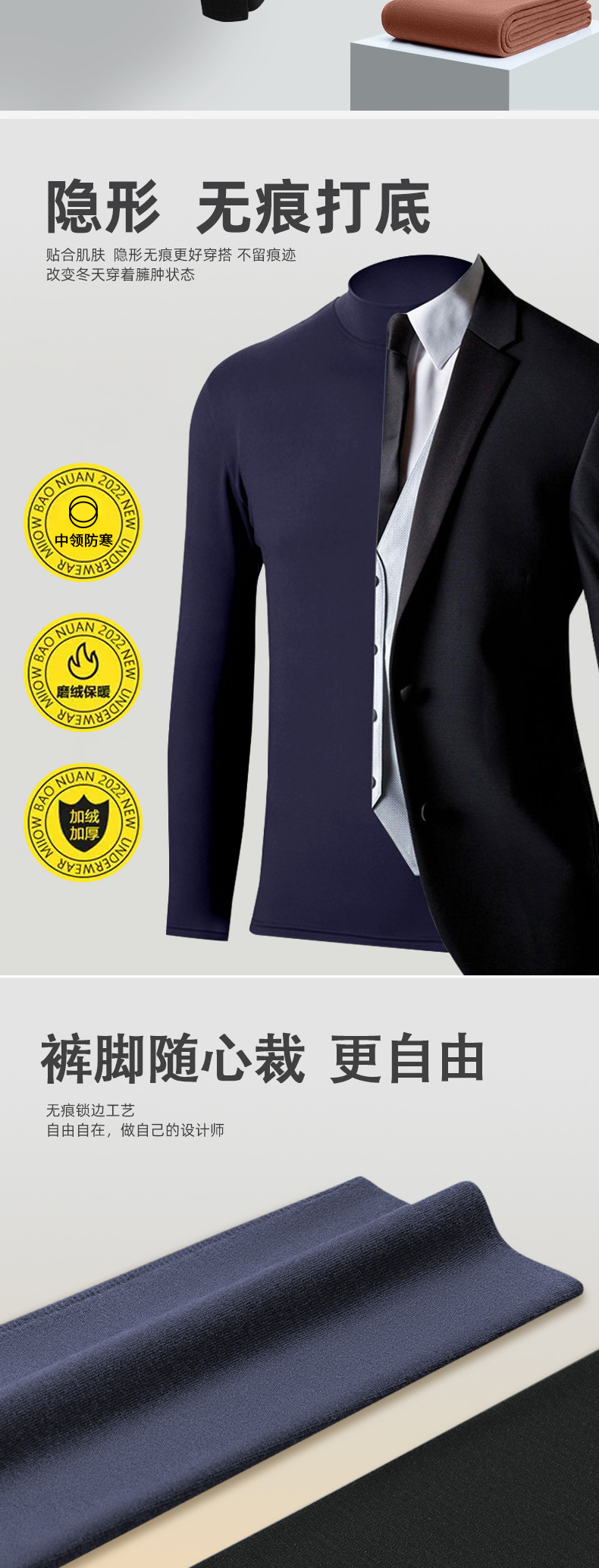 秋冬半高领保暖套装男磨绒无痕打底衫加绒保暖内搭中领长袖秋衣