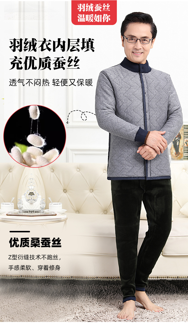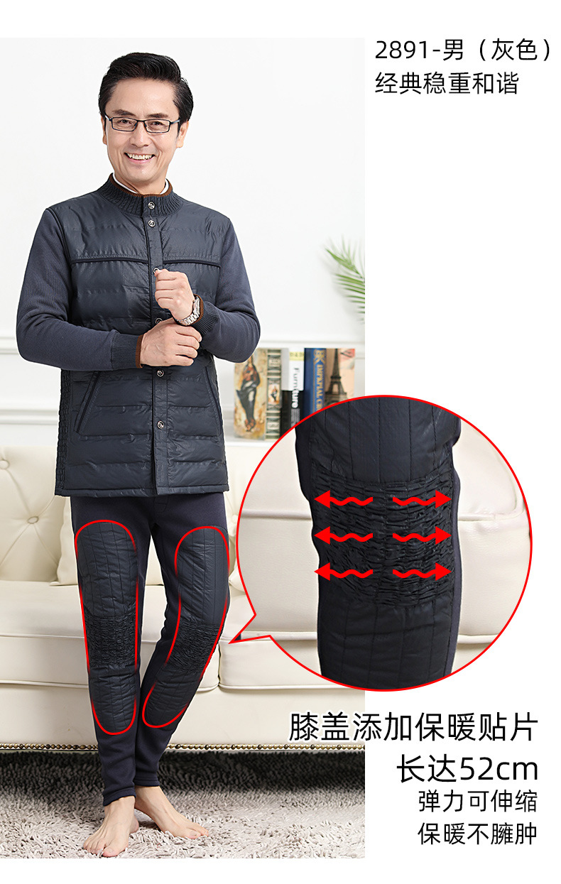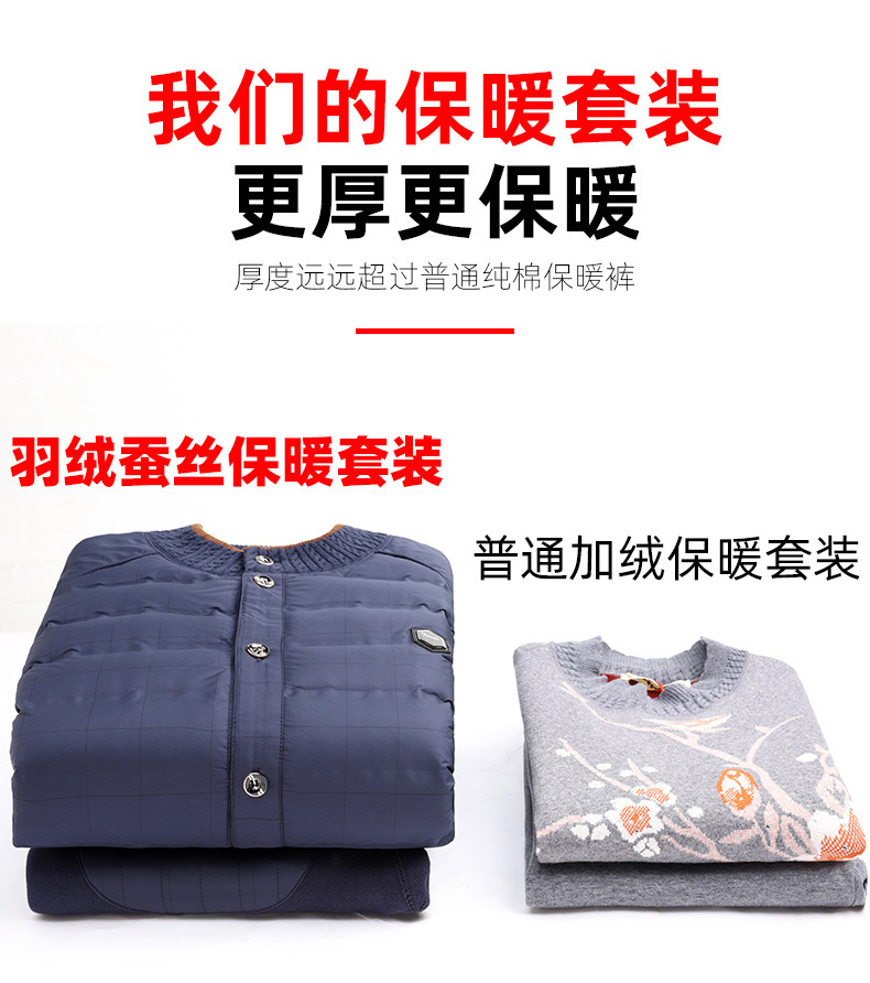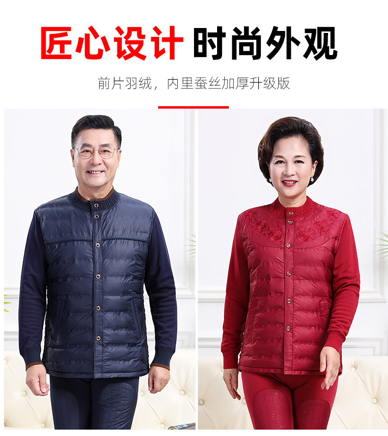 中老年人羽绒保暖内衣女加绒加厚套装男开衫爸爸妈妈抗寒保暖