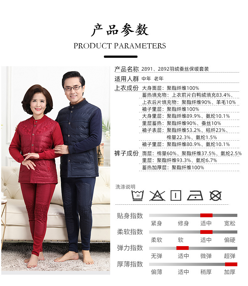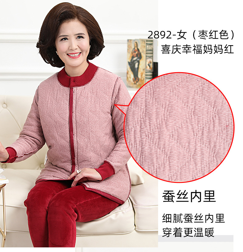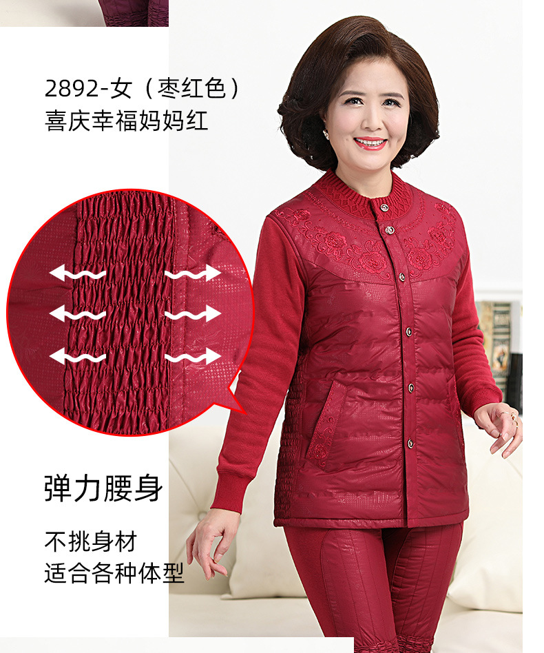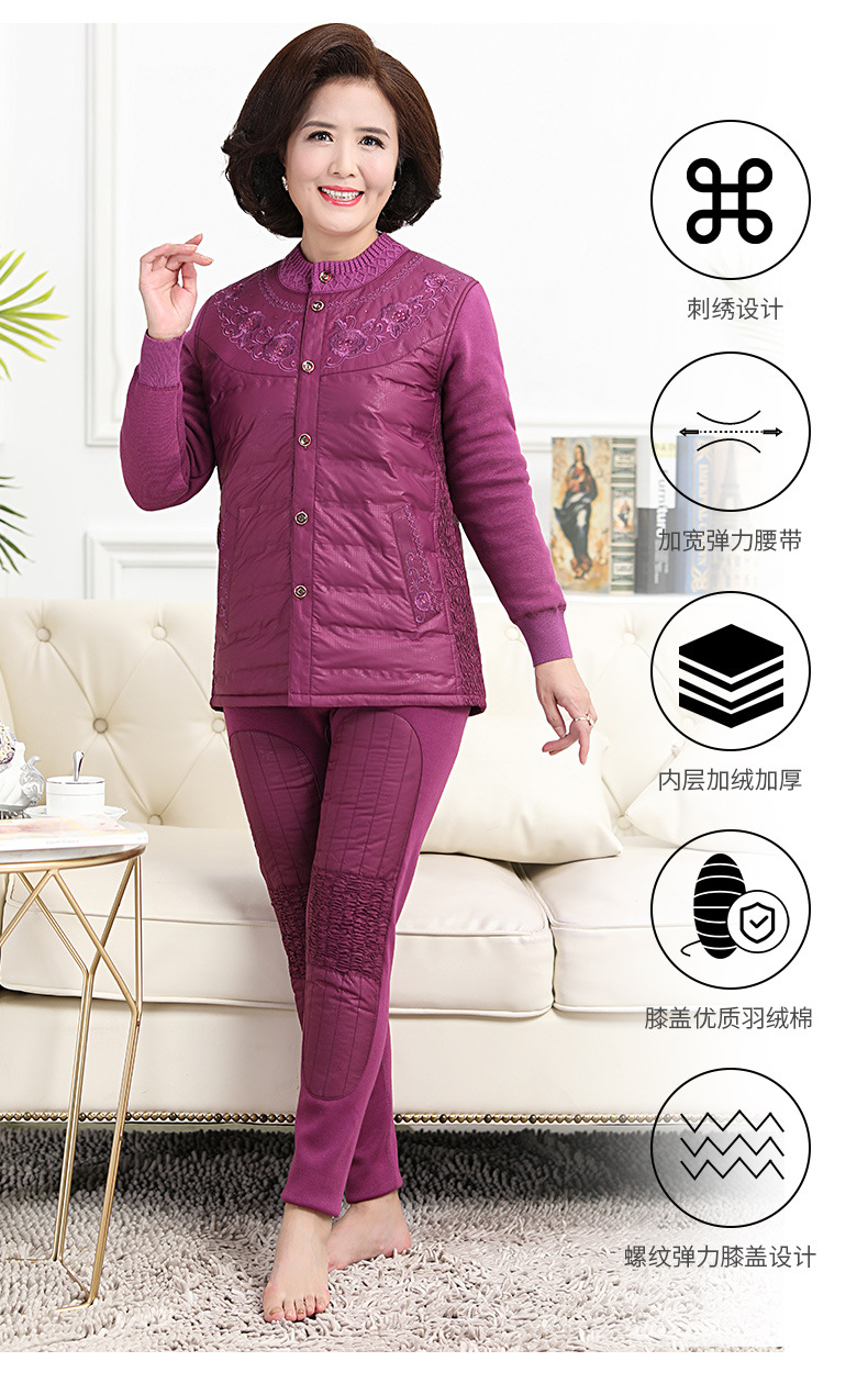 中老年人羽绒保暖内衣女加绒加厚套装男开衫爸爸妈妈抗寒保暖