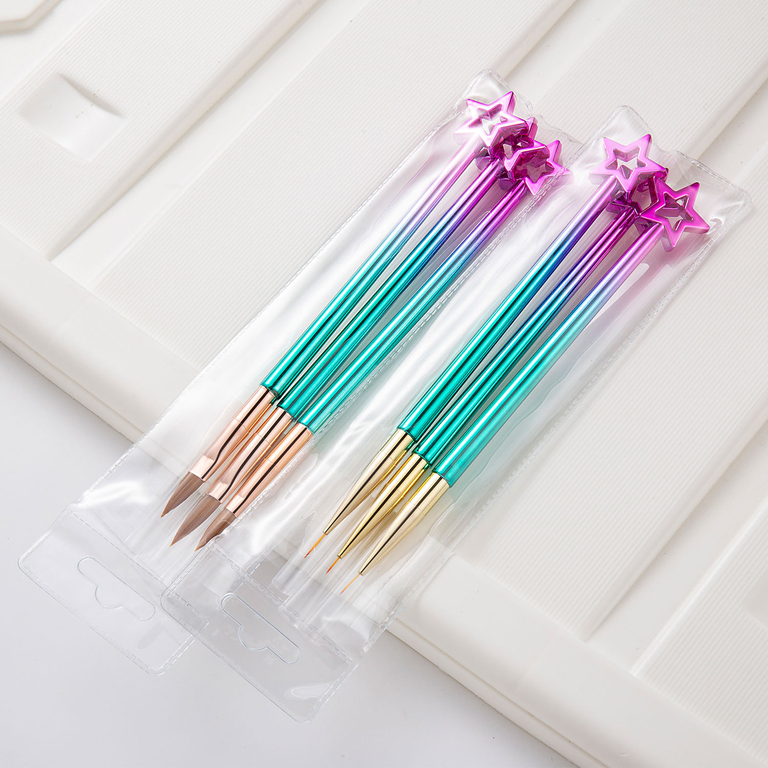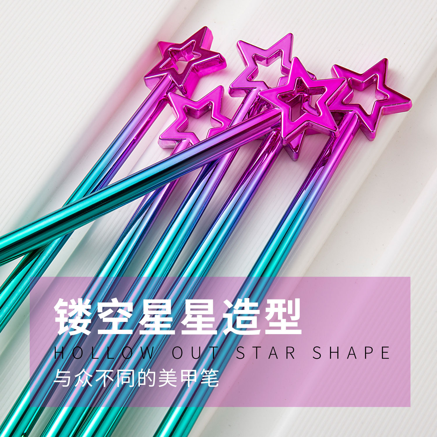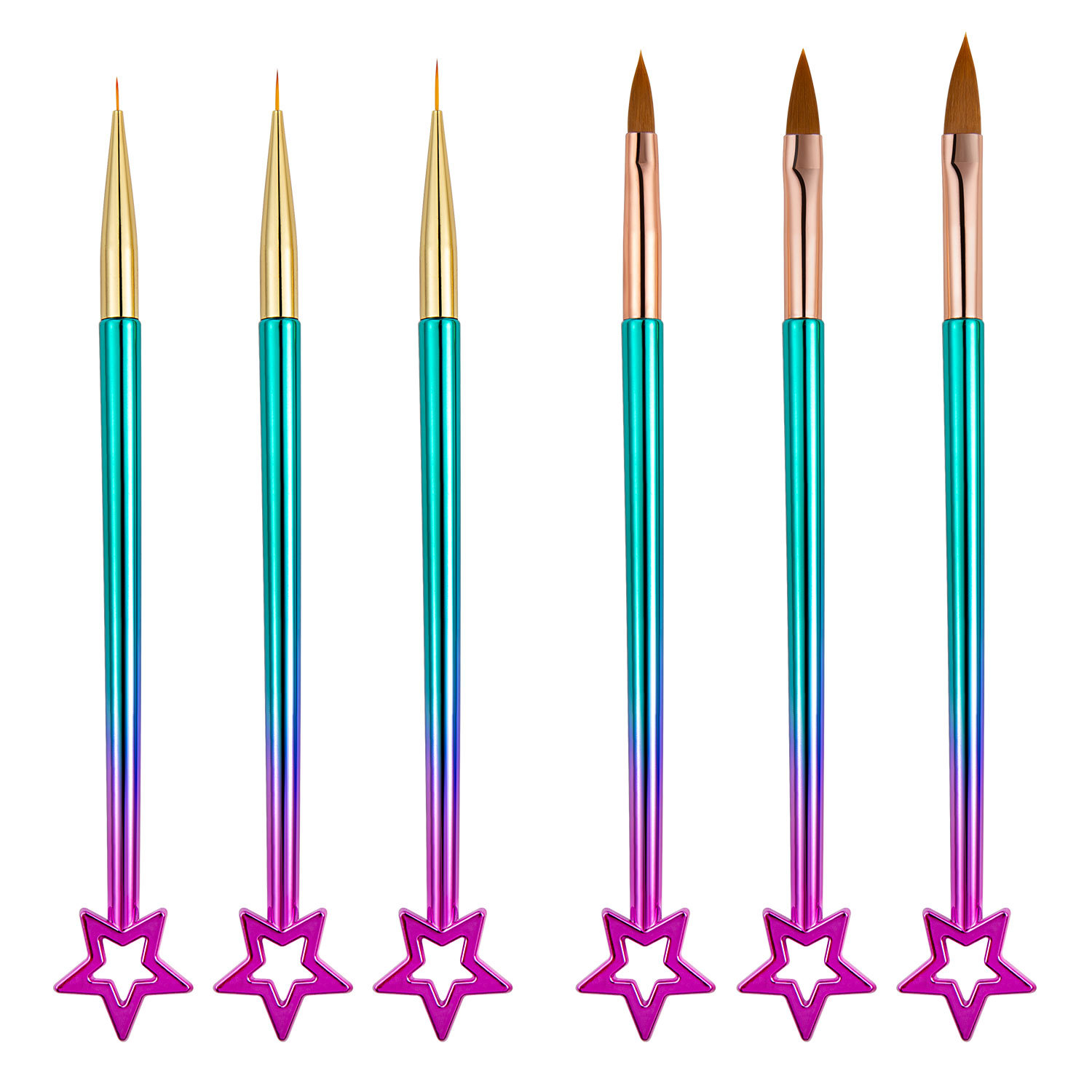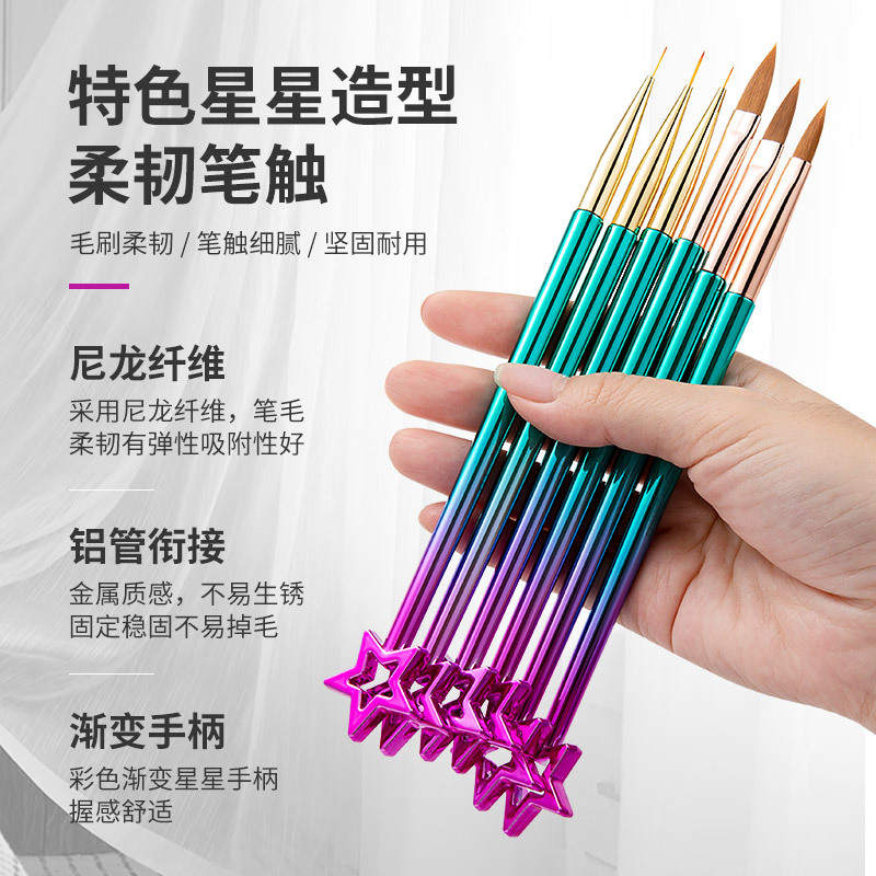 211 星形渐变粉蓝杆3支装美甲笔刷水晶雕花笔套装金属杆美甲工具