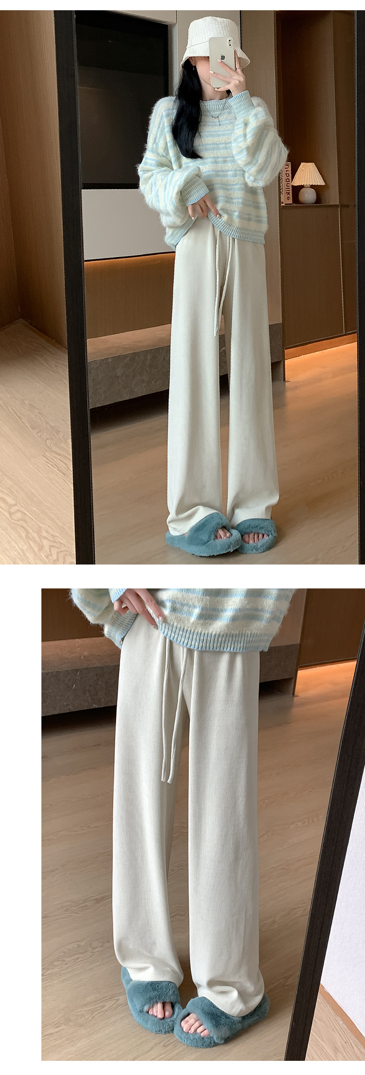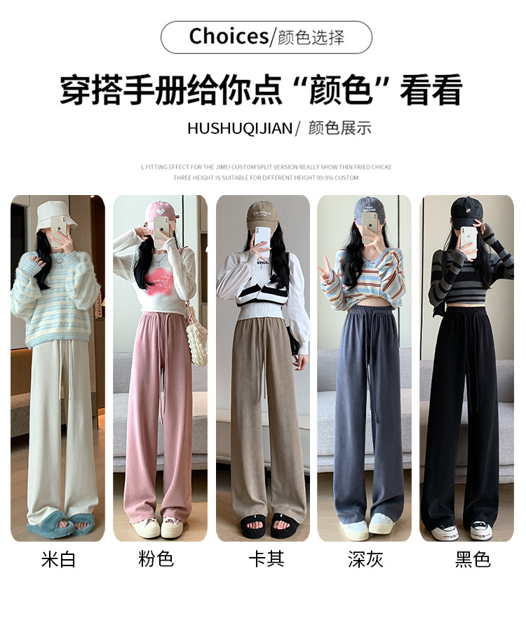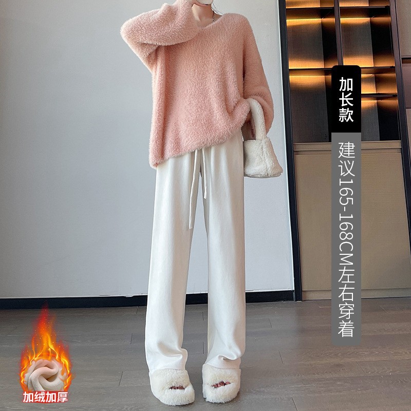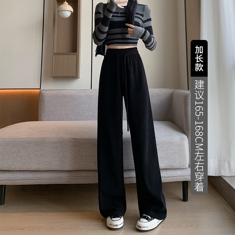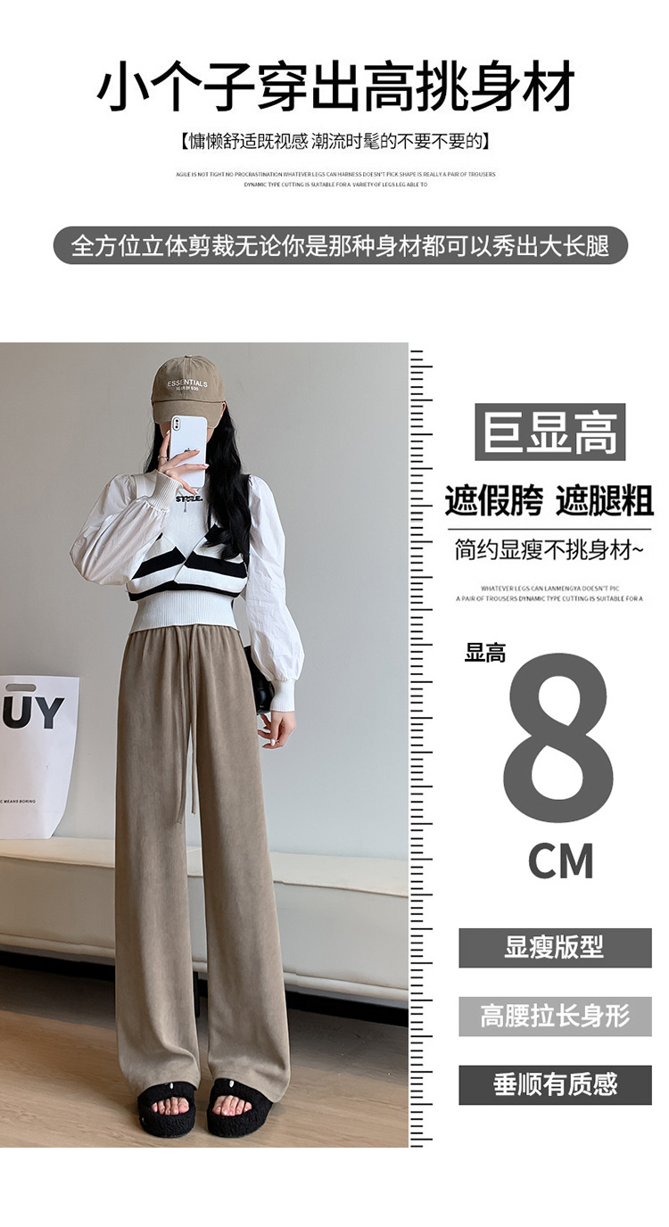 木棉绒阔腿裤女裤子秋季2023新款垂感休闲拖地长裤显瘦高腰直筒裤