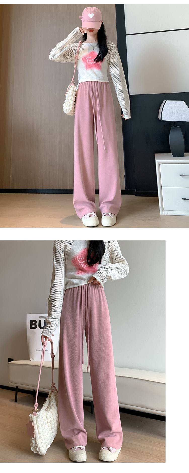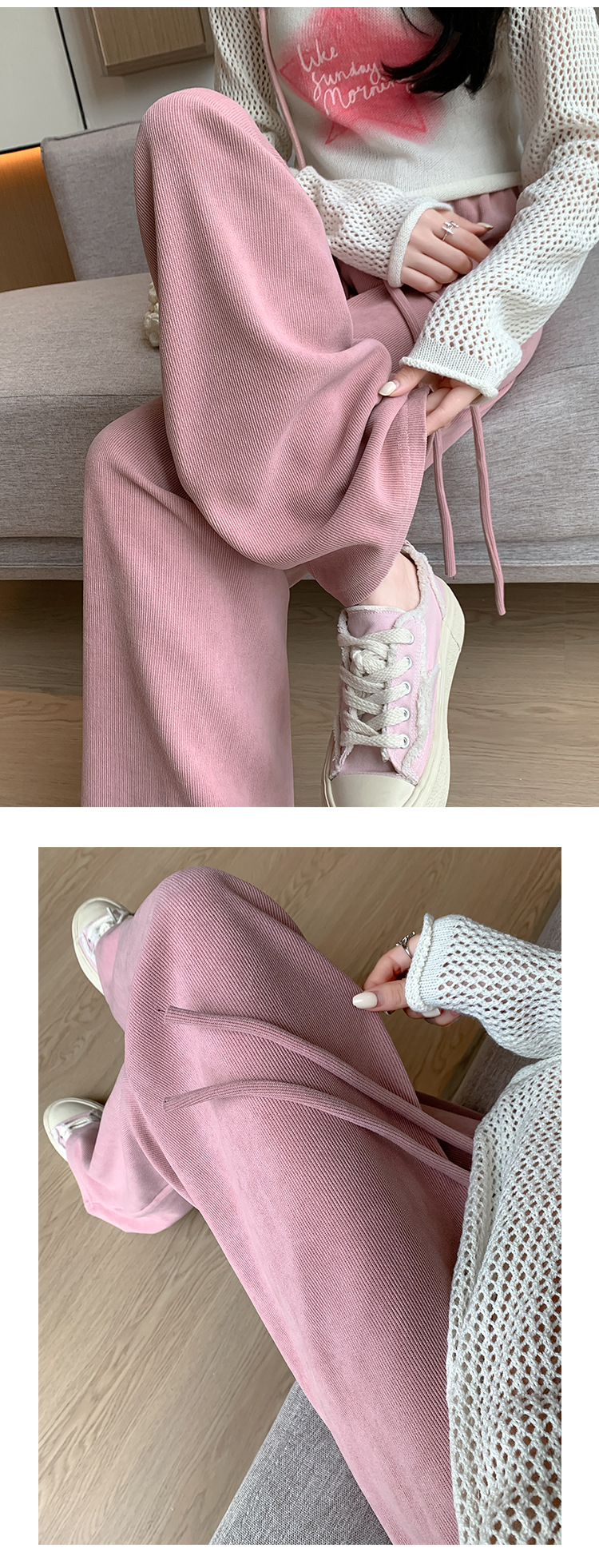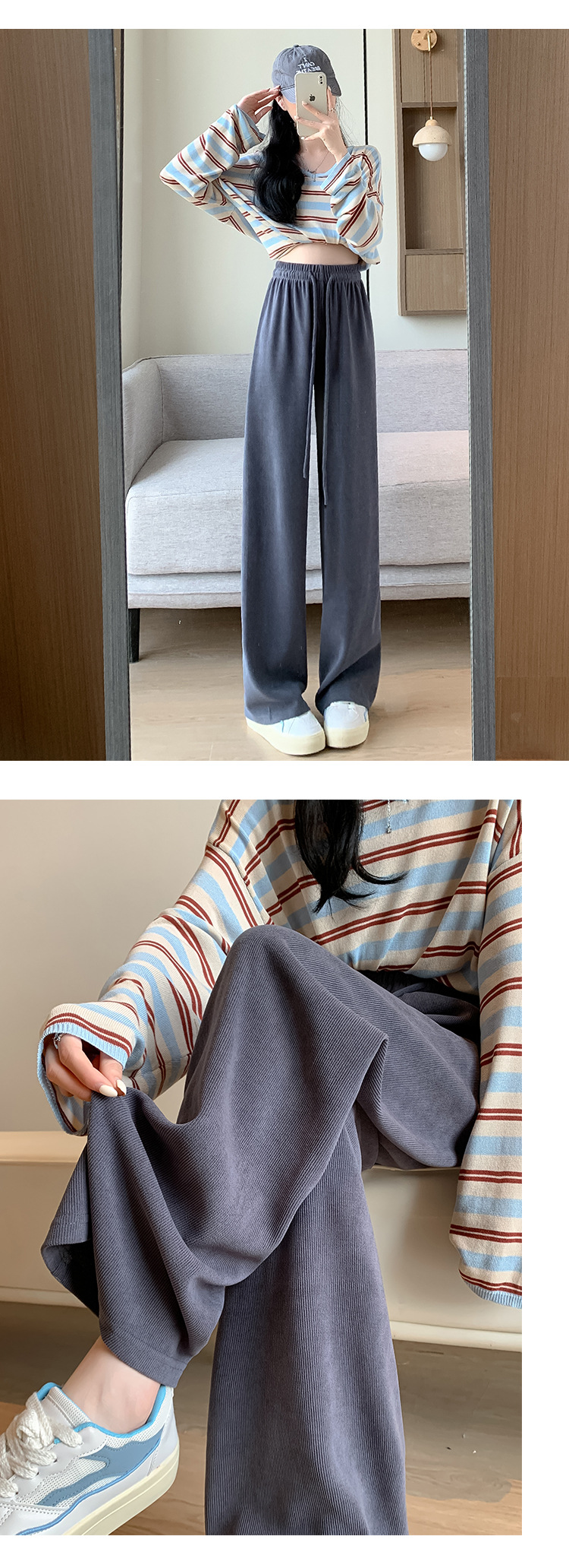 木棉绒阔腿裤女裤子秋季2023新款垂感休闲拖地长裤显瘦高腰直筒裤