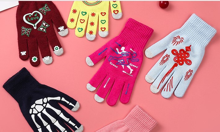 现货低价供应外贸尾单多色多款胶印单色针织触屏可定LOGO手套