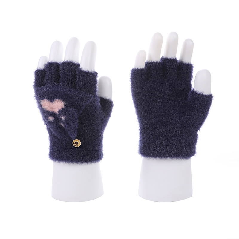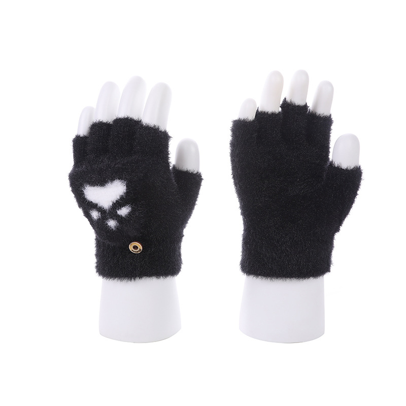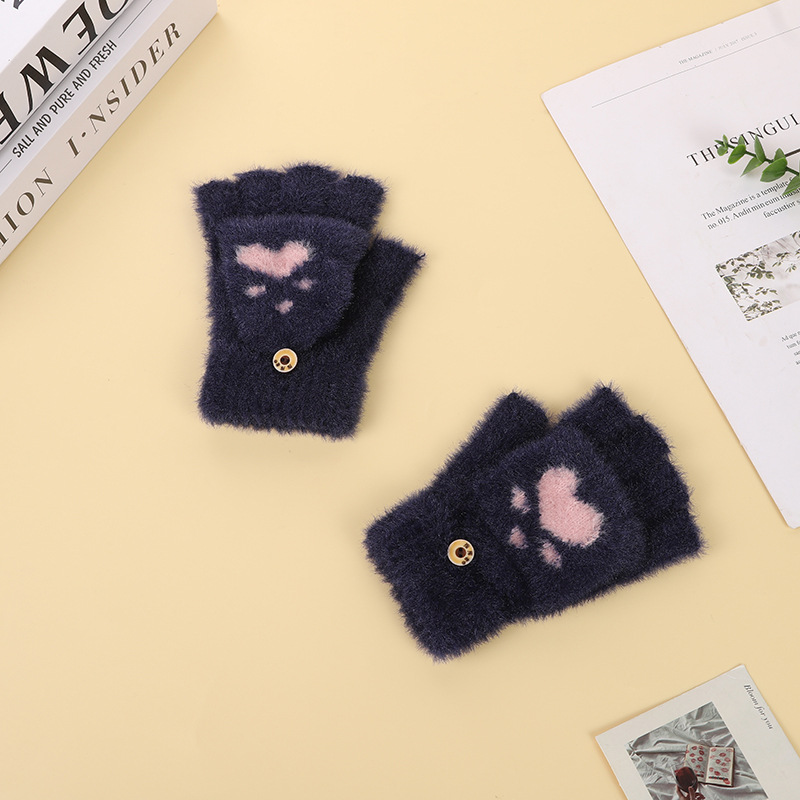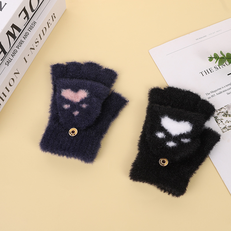 冬季分指翻盖加厚仿羊绒手套可爱爪印保暖两用女写字韩版防寒手套