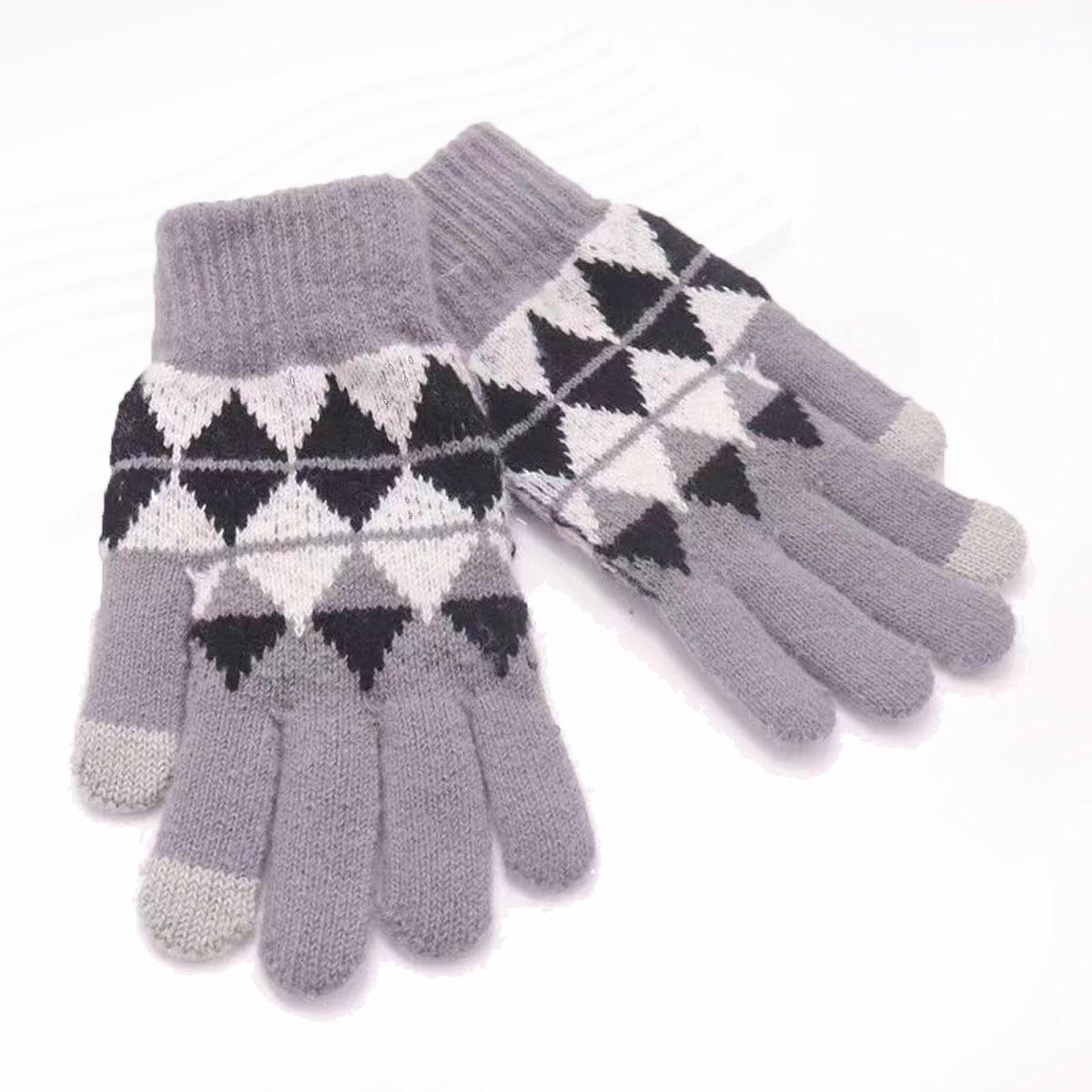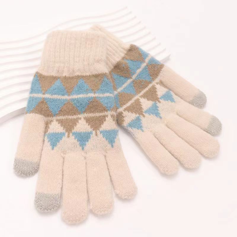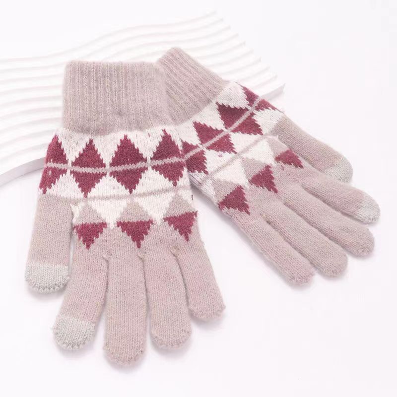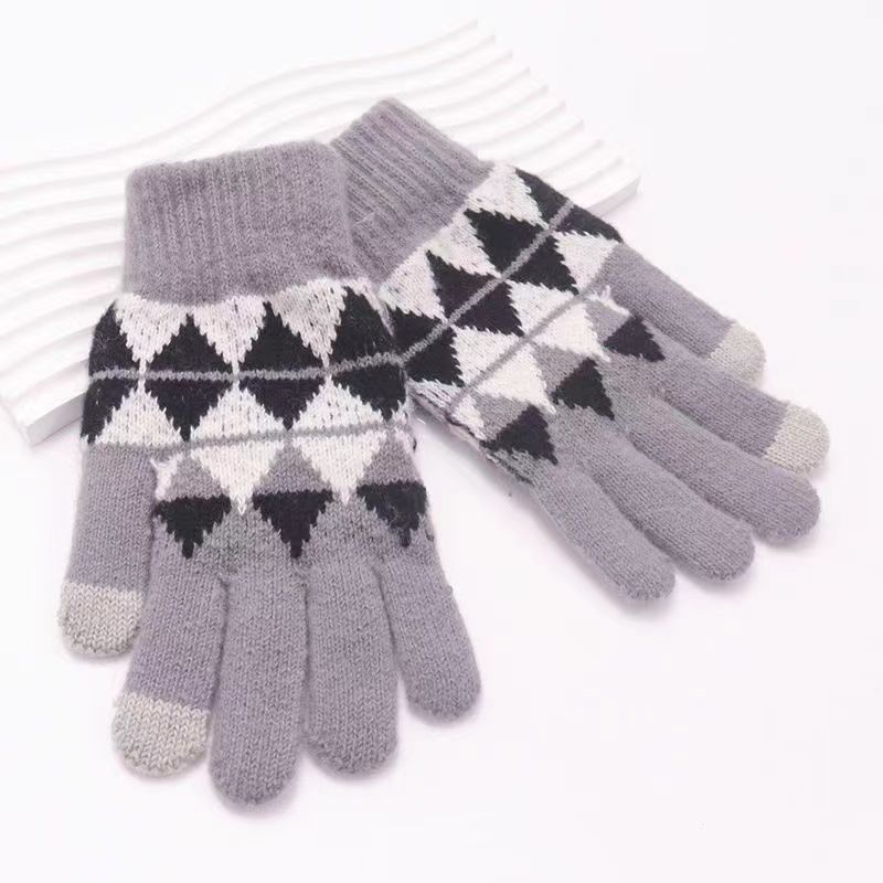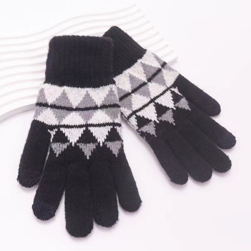 冬季新款保暖防滑加厚毛线手套厂家针织时尚提花手套舒适休闲百搭