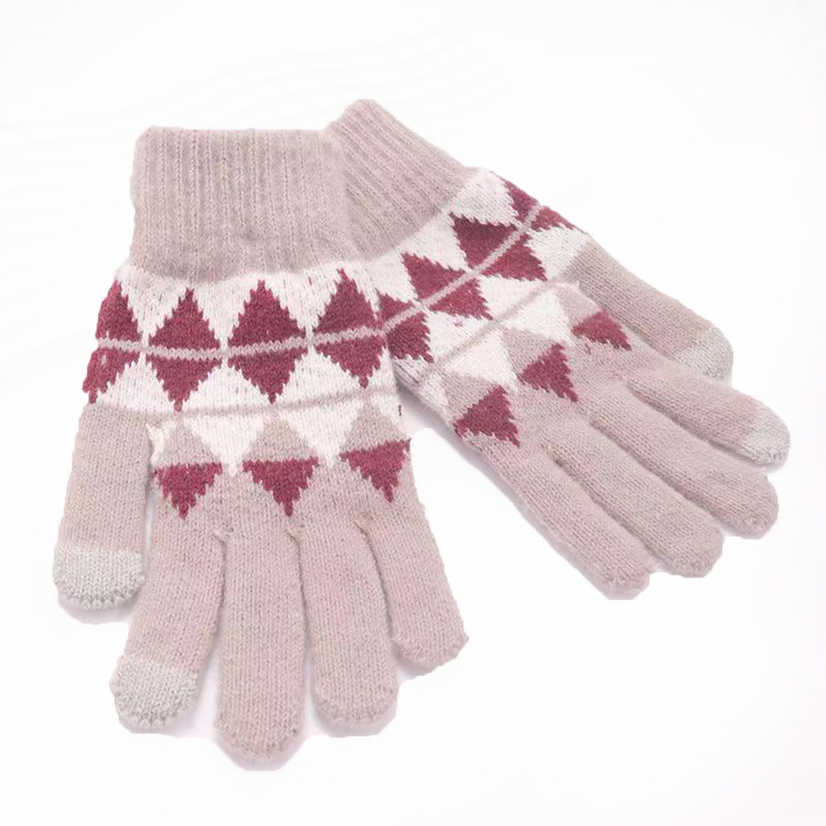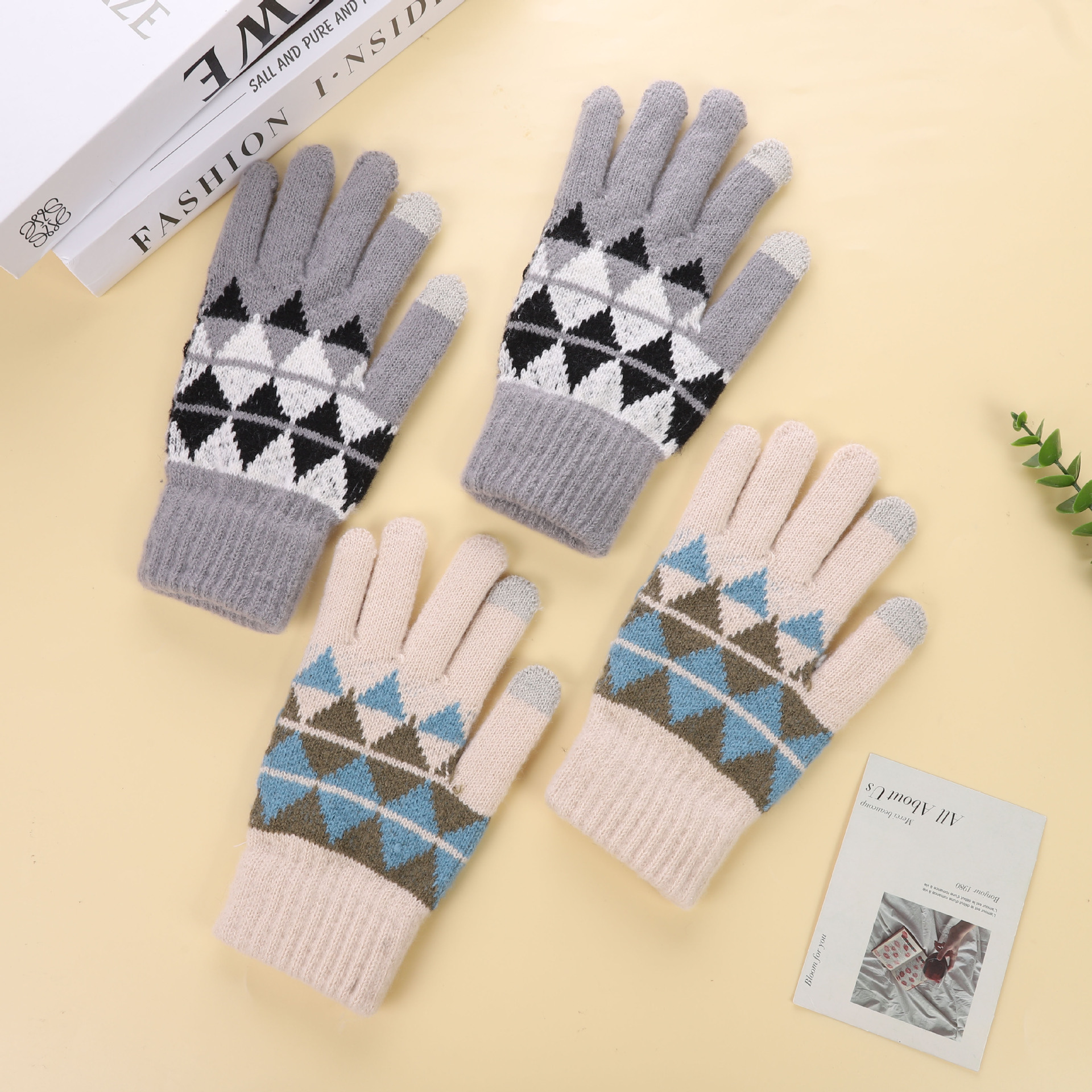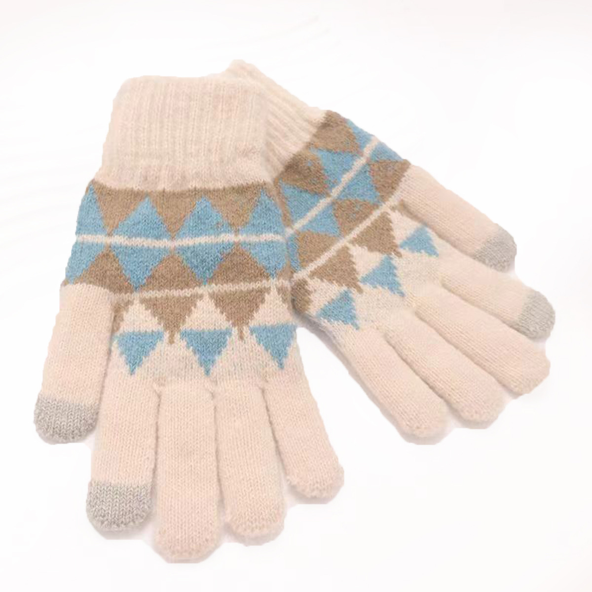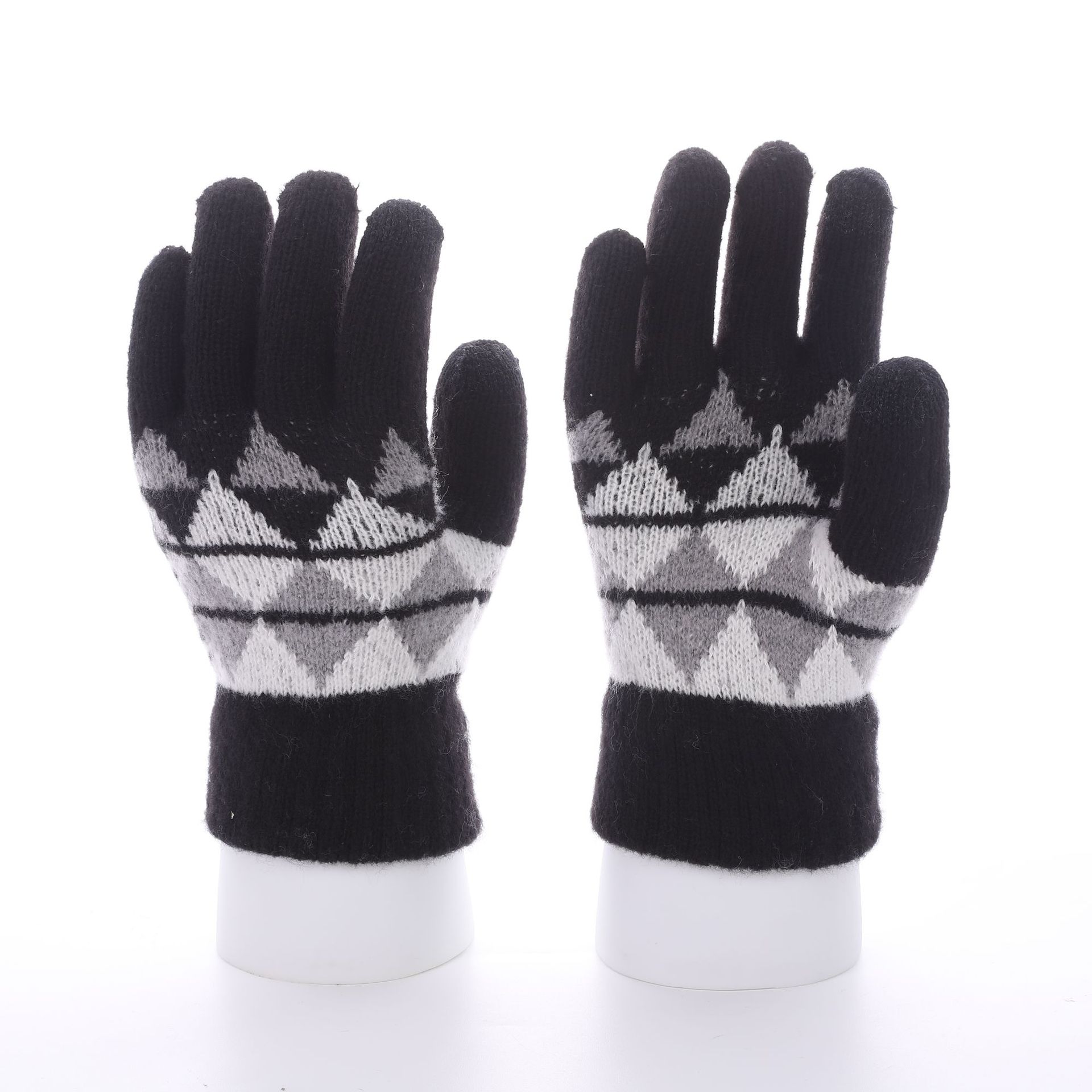 冬季新款保暖防滑加厚毛线手套厂家针织时尚提花手套舒适休闲百搭
