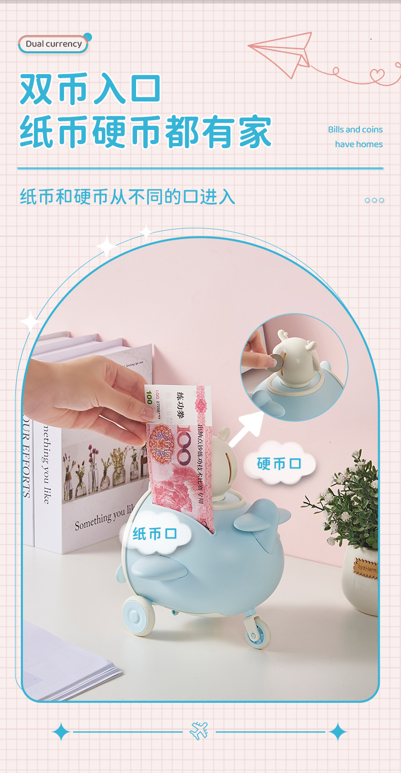 卡通飞机存钱罐可存取儿童储蓄罐男女孩节日礼物创意可爱玩具