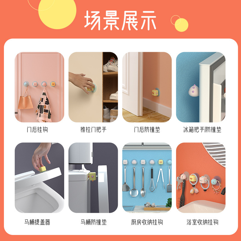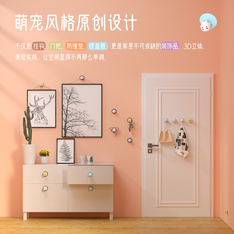 居家3D立体萌宠挂钩 多功能挂钩提盖器后防撞垫推拉萌宠把手