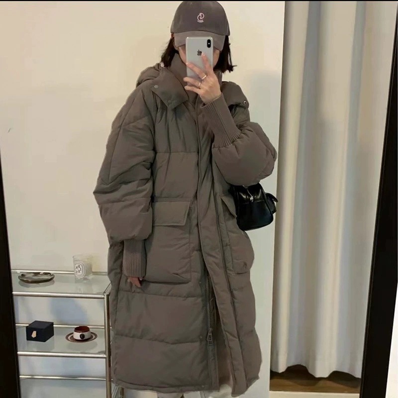 东大门中长款羽绒服女冬季2023新宽松加厚学生白鸭绒连帽过膝外套