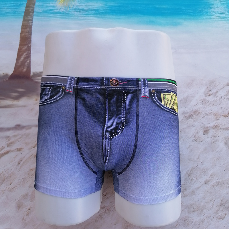 跨境爆款男士牛仔内裤纯棉性感透气青少年平角裤潮牌大码外贸批发