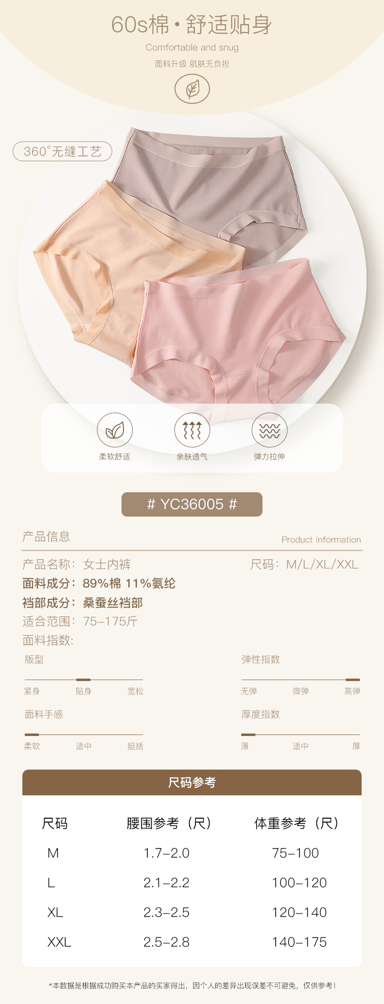女士无缝60支长绒棉内裤蚕蛹蛋白内裤裆女生裤衩女式三角内裤批发