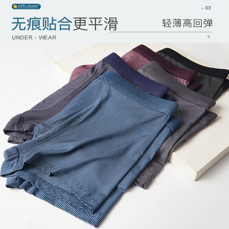新款男士内裤纯棉U凸设计中腰精梳棉宽松平角裤印花透气四角裤潮