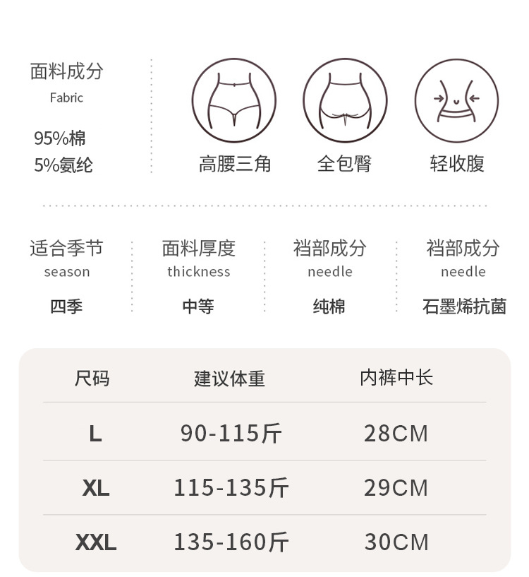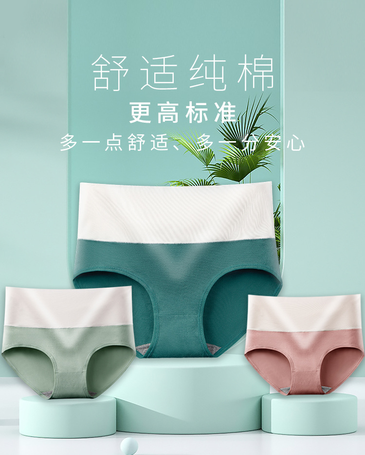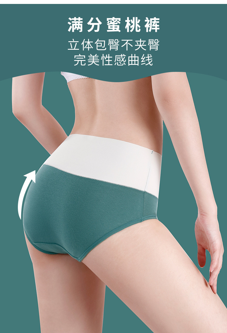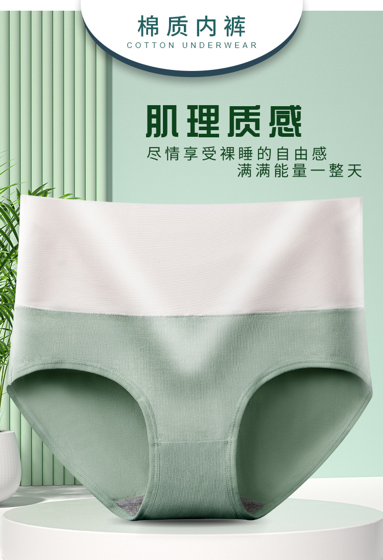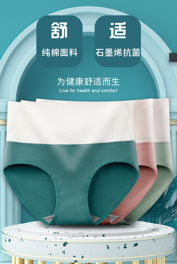纯棉内裤女高腰收腹提臀纯色三角裤石墨烯内裆棉质大码女士裤头