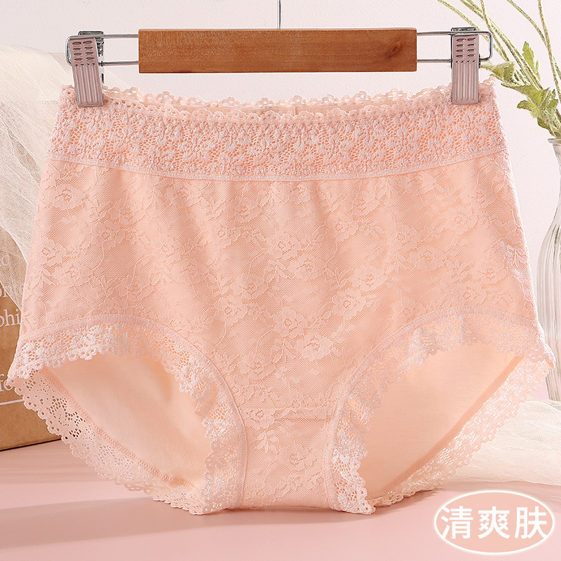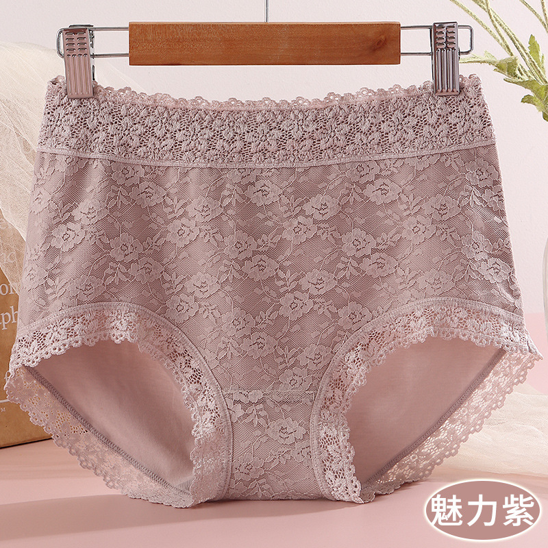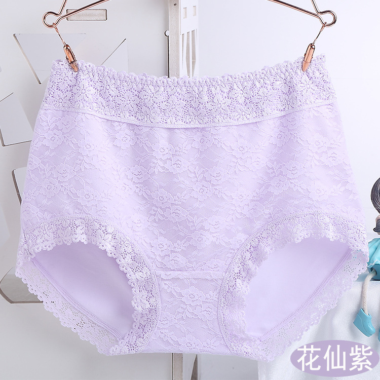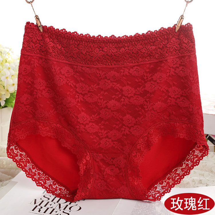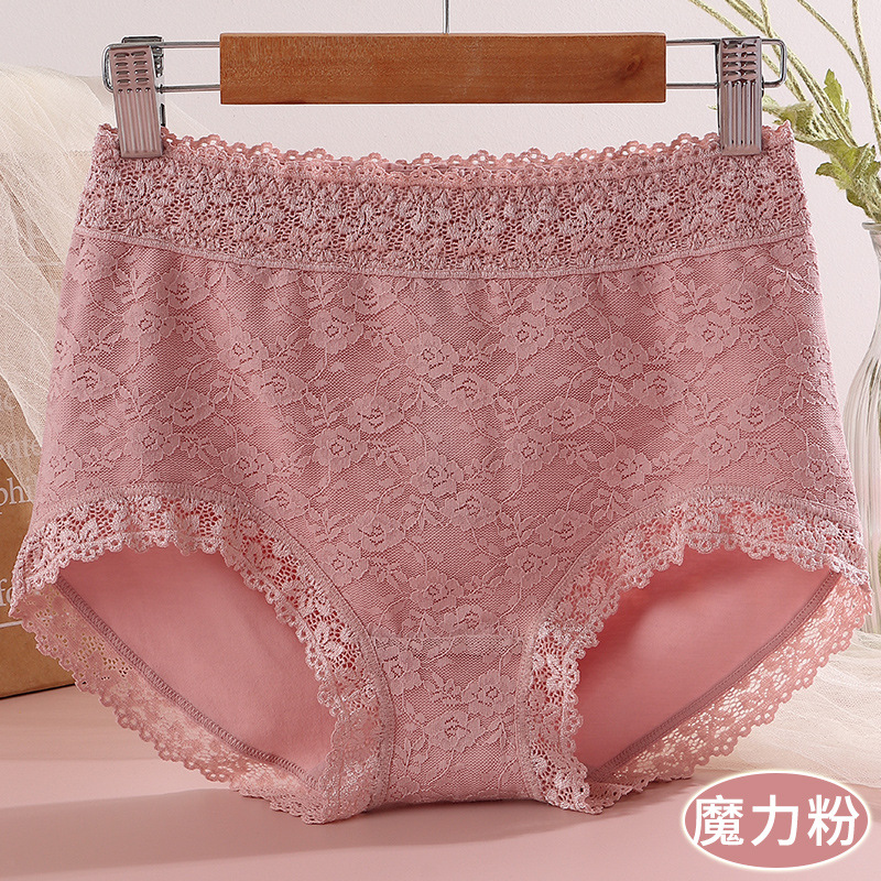 【源头工厂】女式纯棉中腰蕾丝高腰大码收腹提臀胖MM女士内裤代发