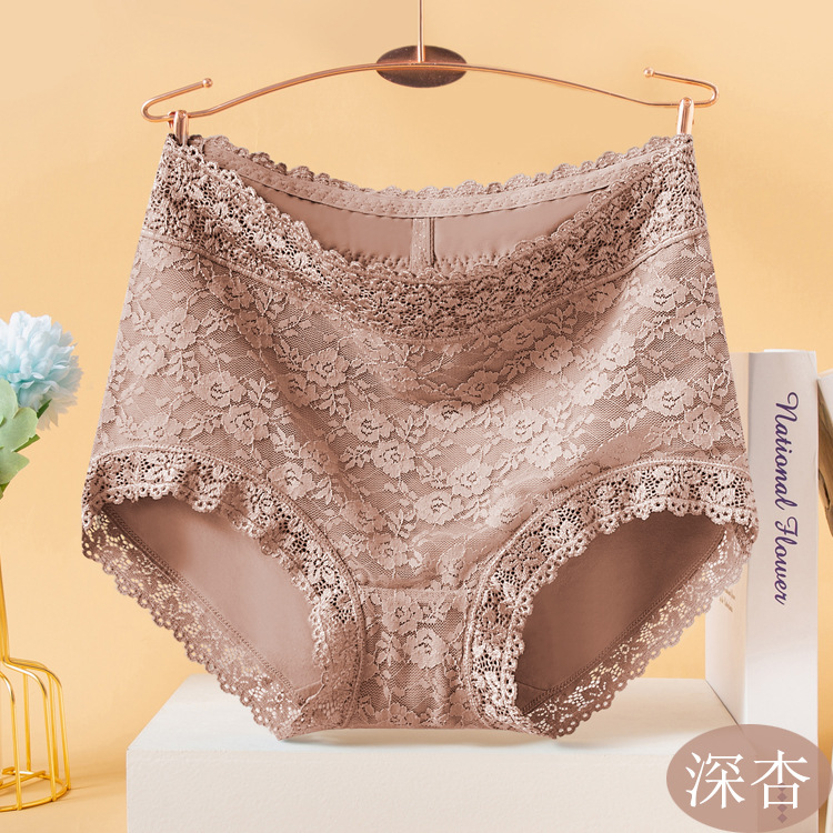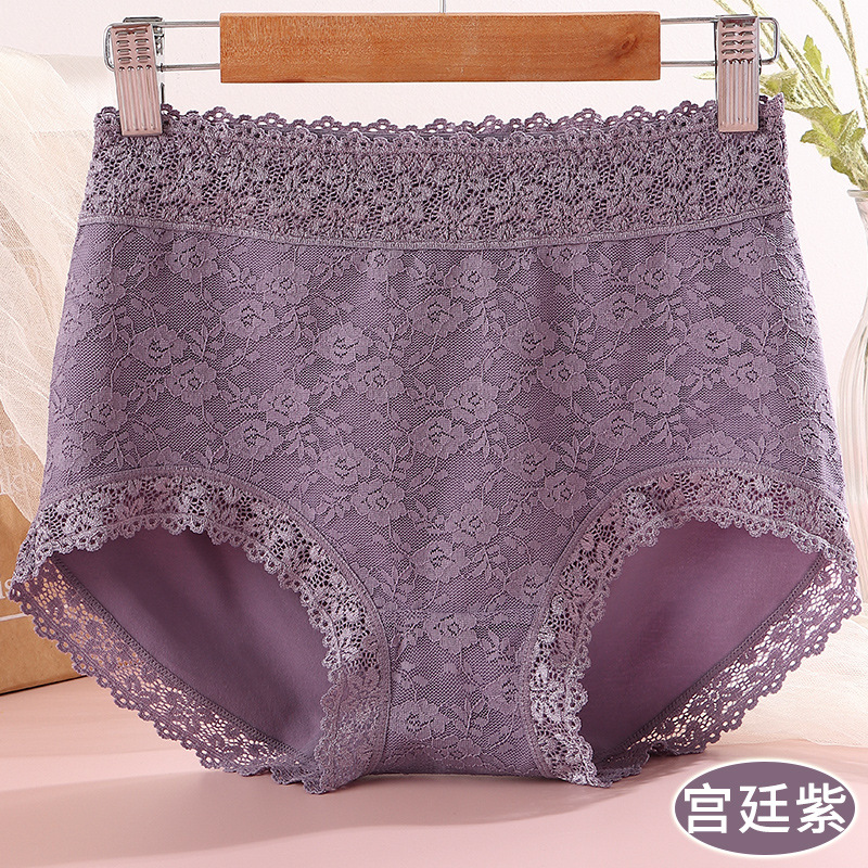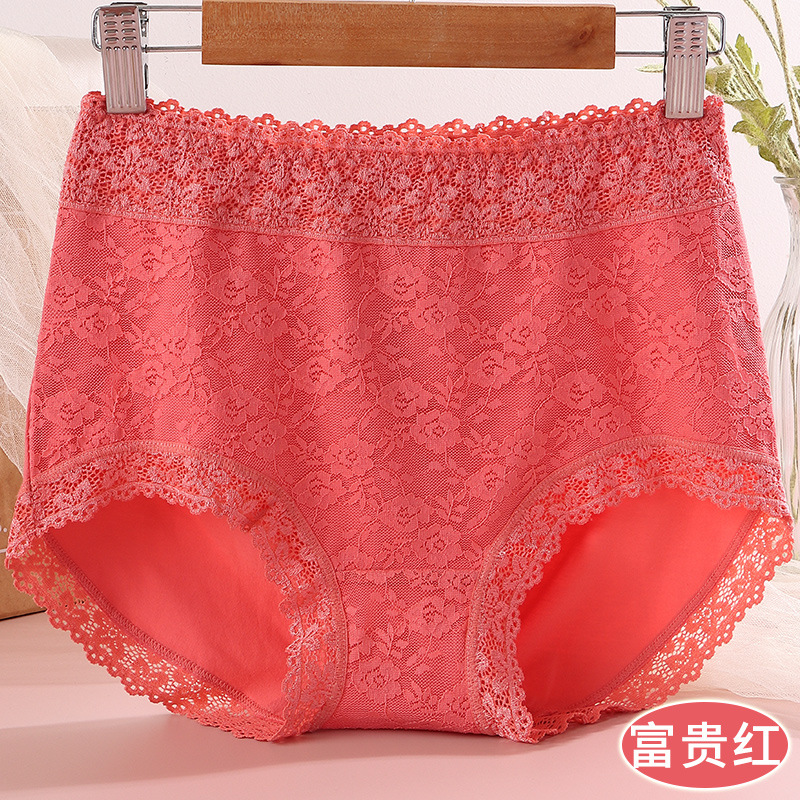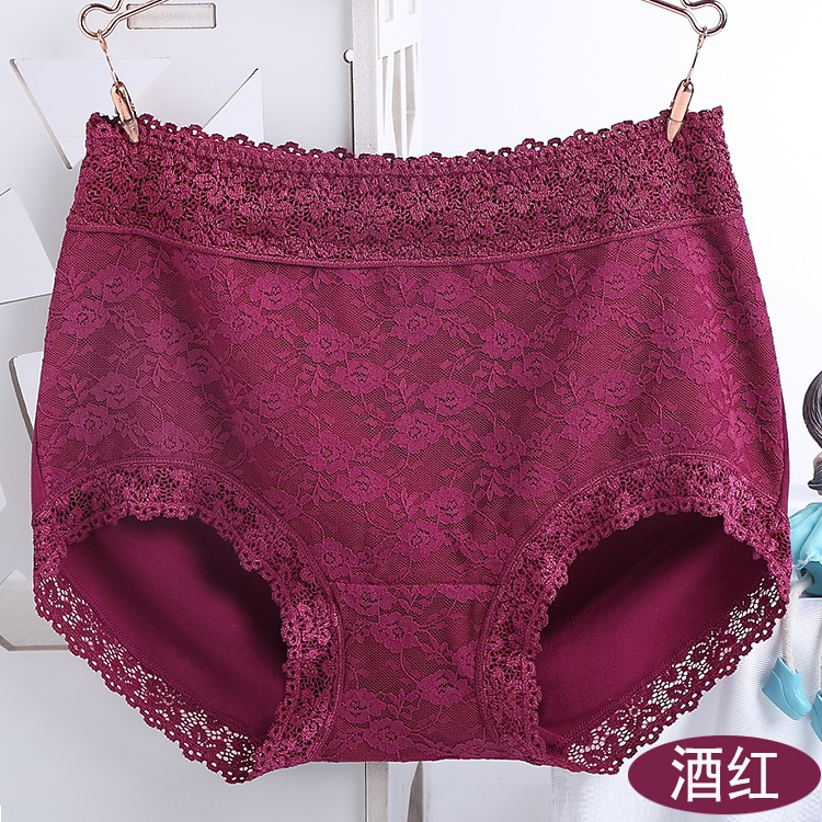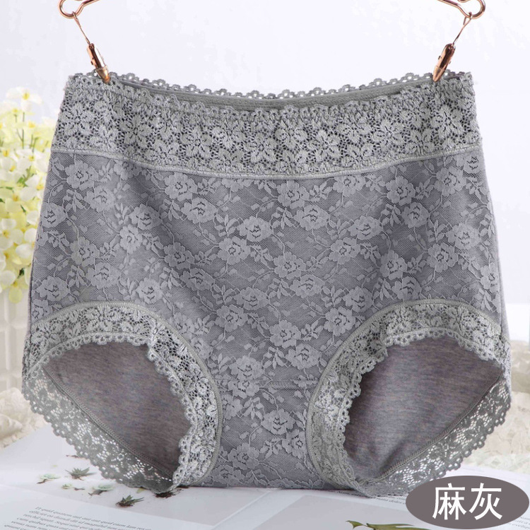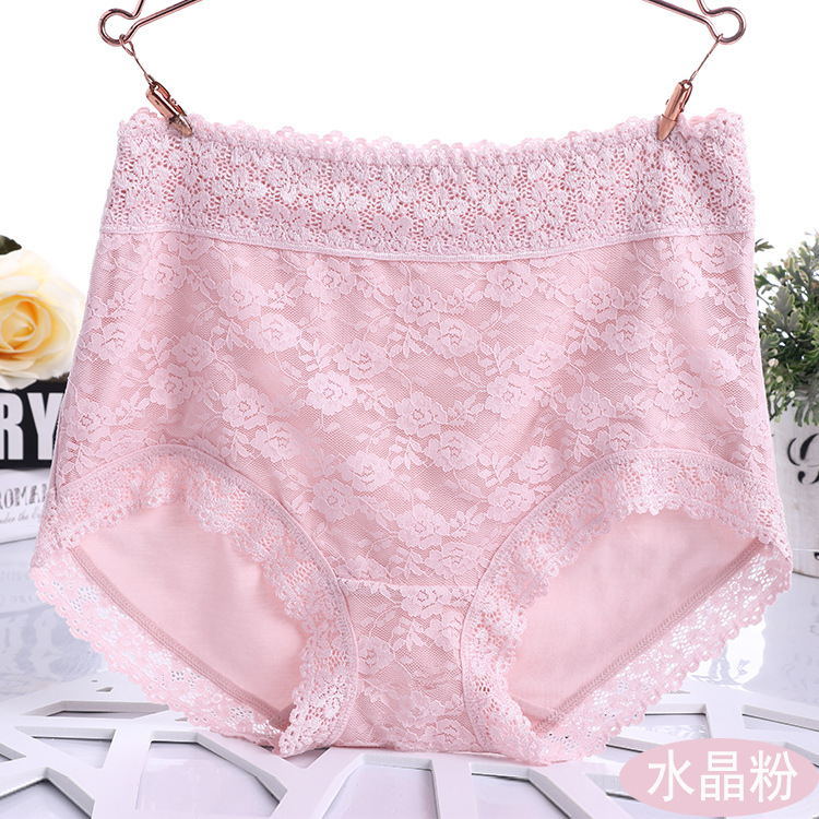 【源头工厂】女式纯棉中腰蕾丝高腰大码收腹提臀胖MM女士内裤代发