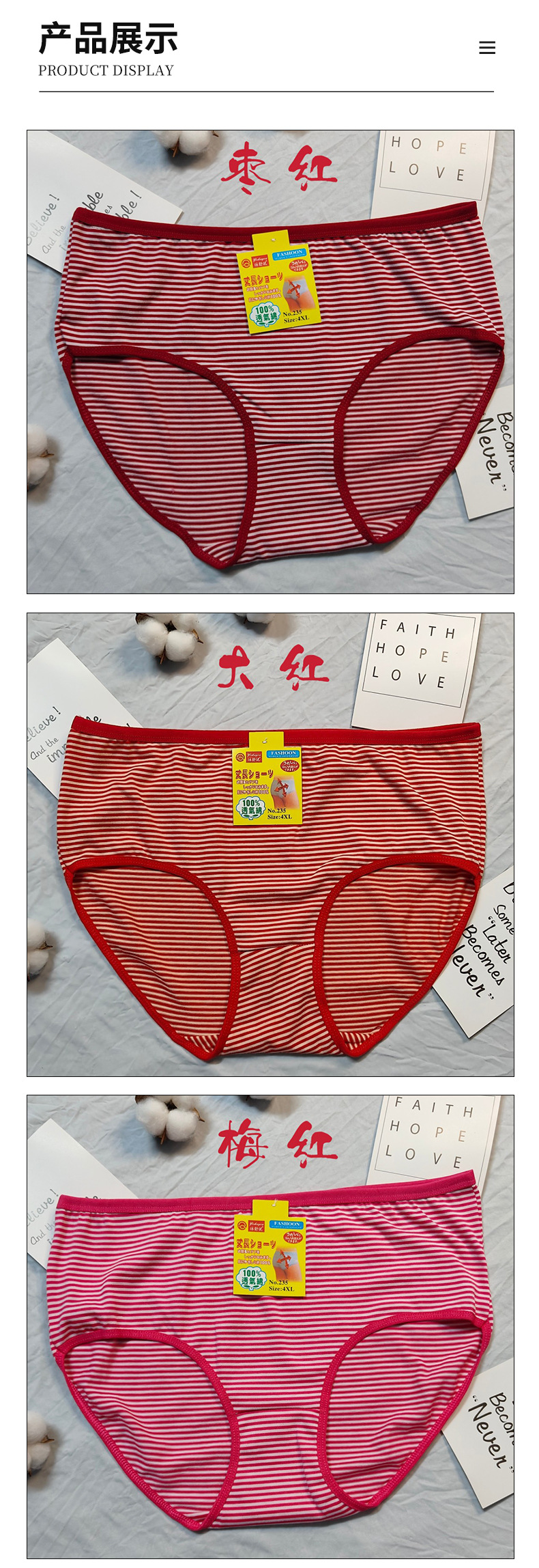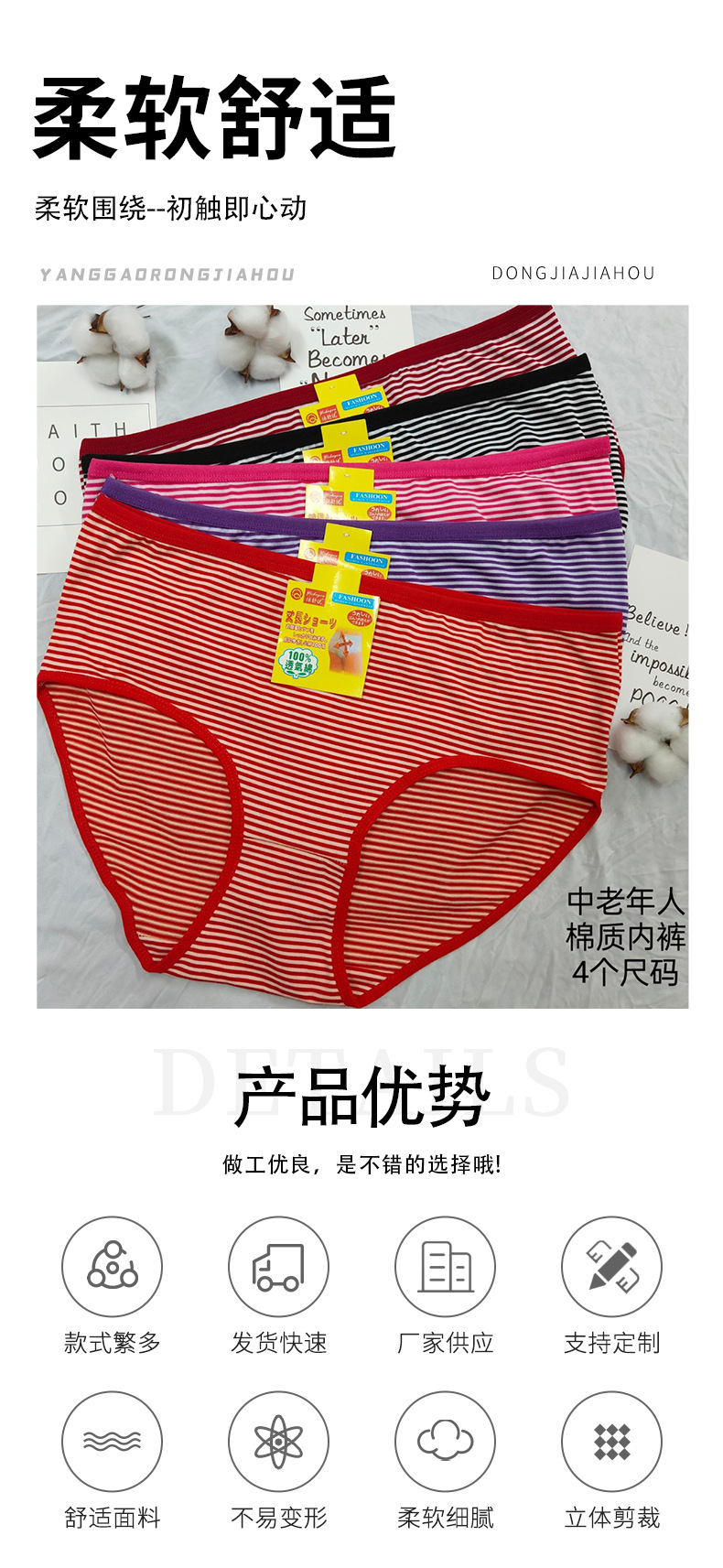 中老年人妈妈经典条纹加肥大码内裤女士中腰棉质235款三角裤批发