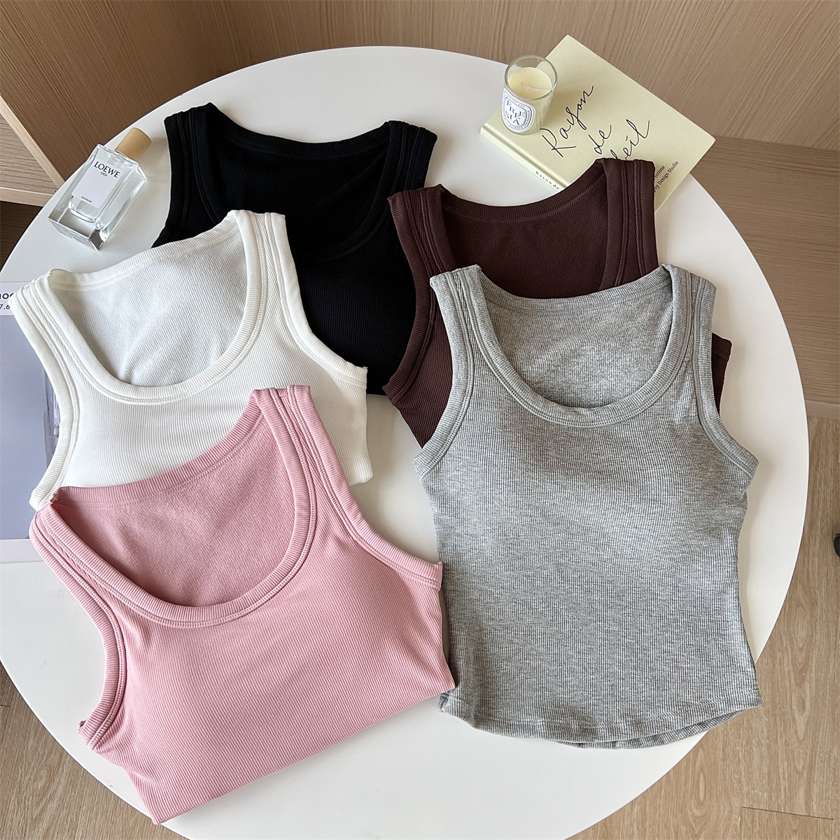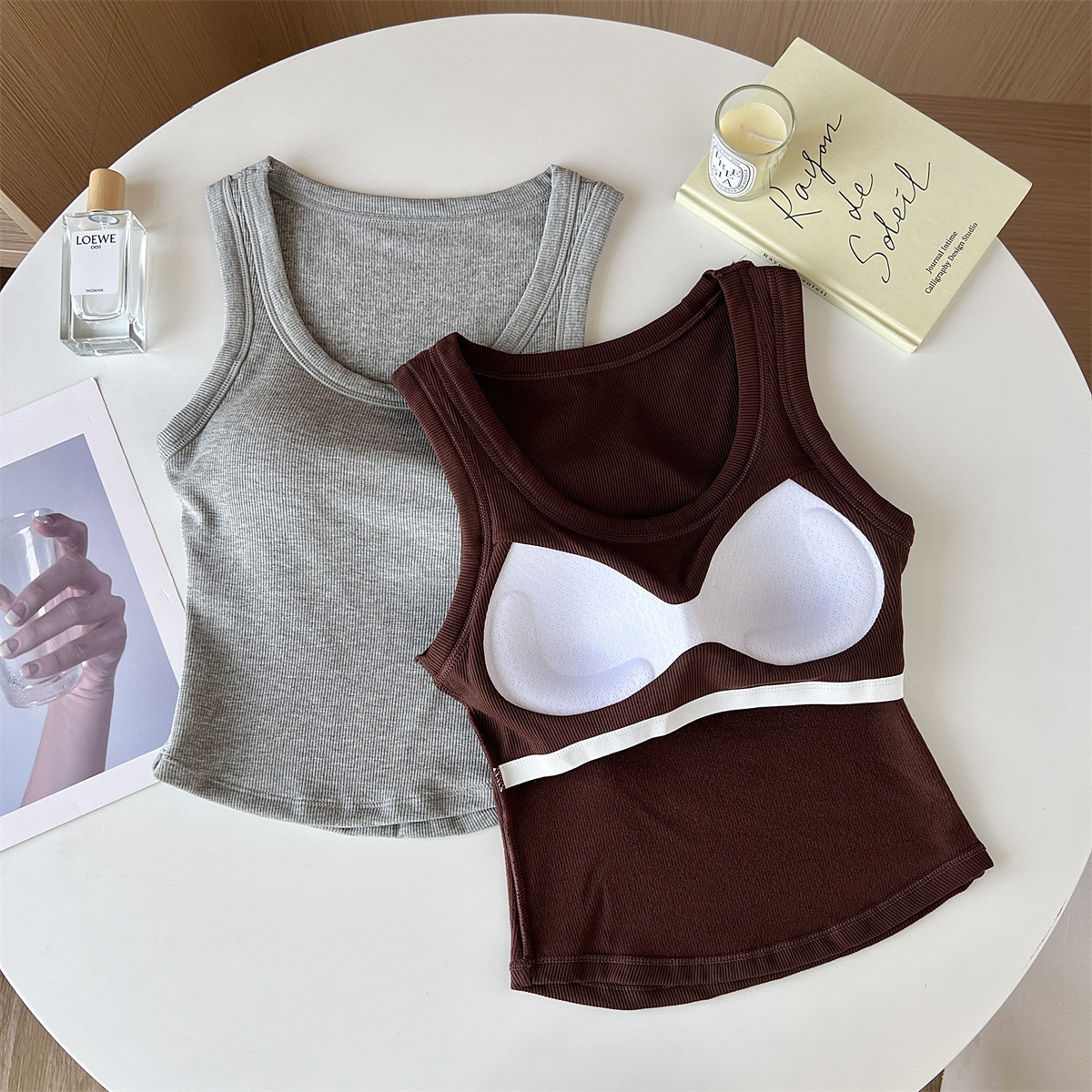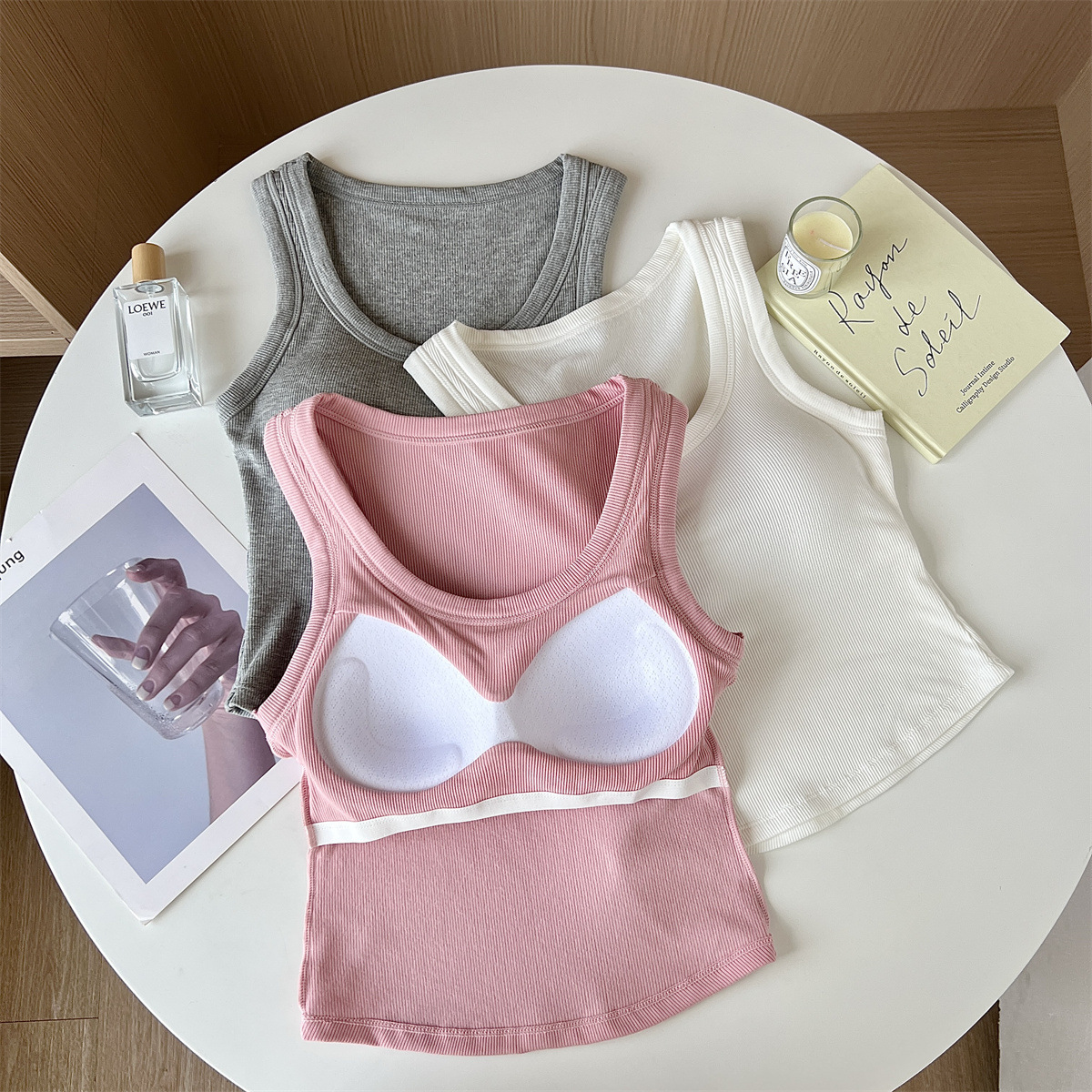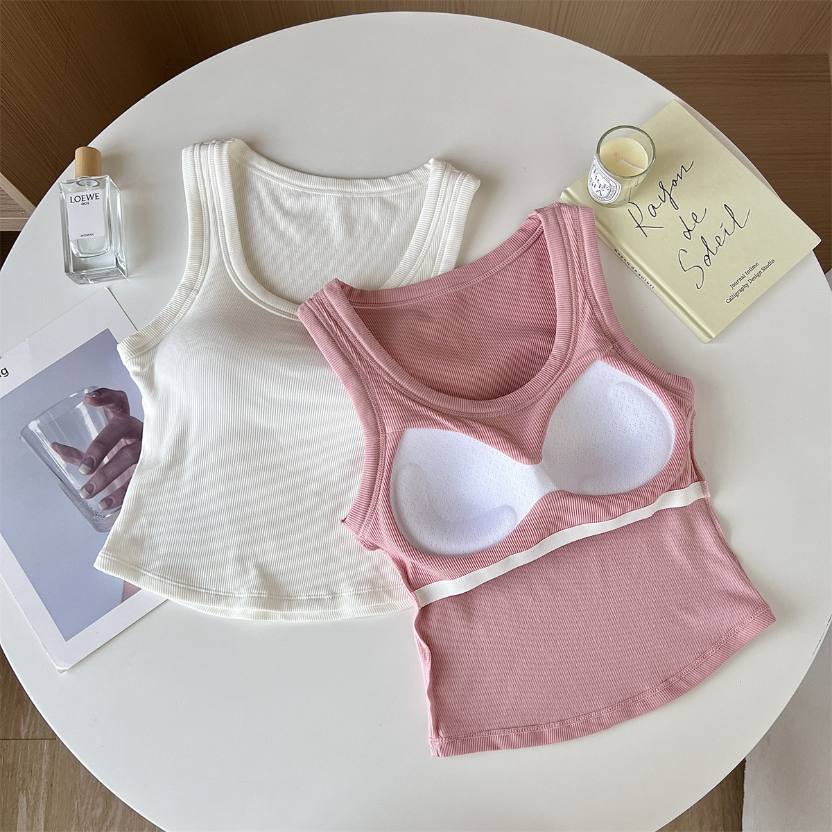 宽肩带纯棉背心女带胸垫一体式内搭外穿免穿文胸遮副乳修身打底衫