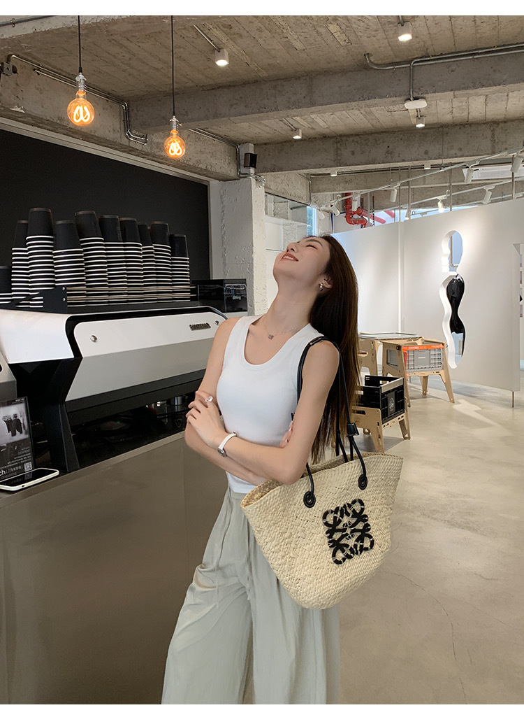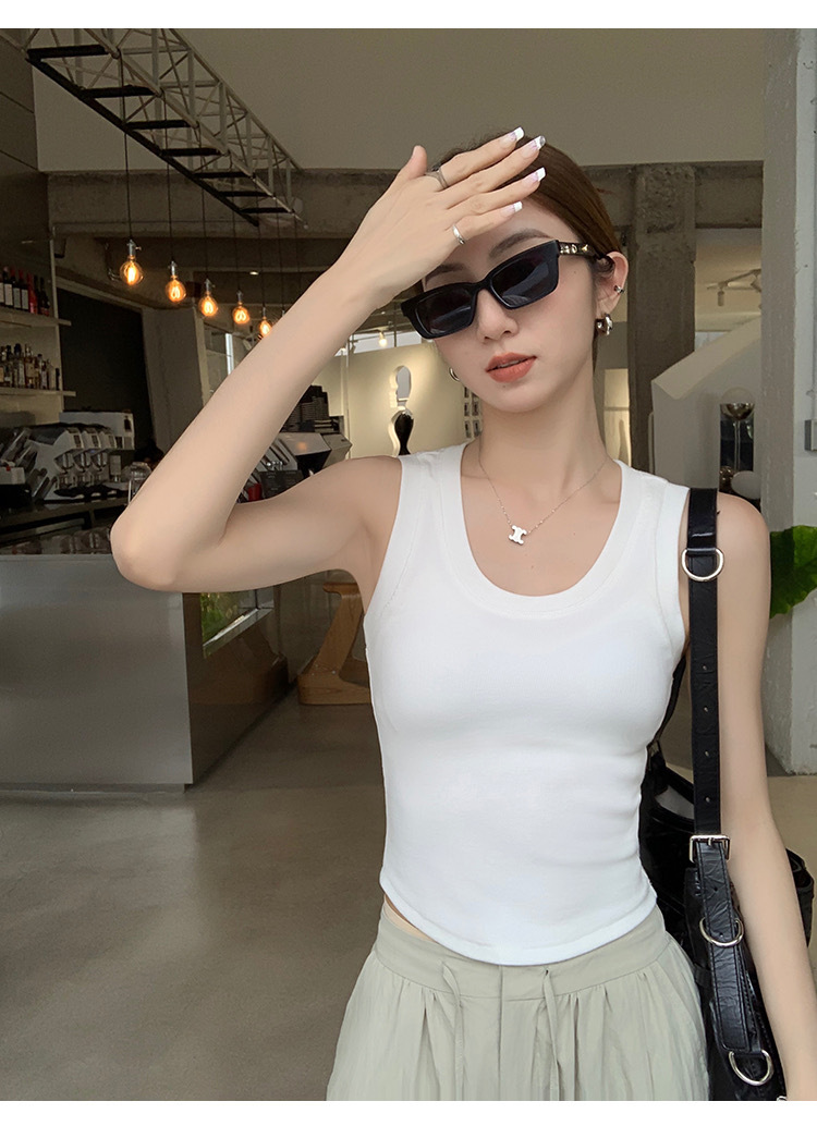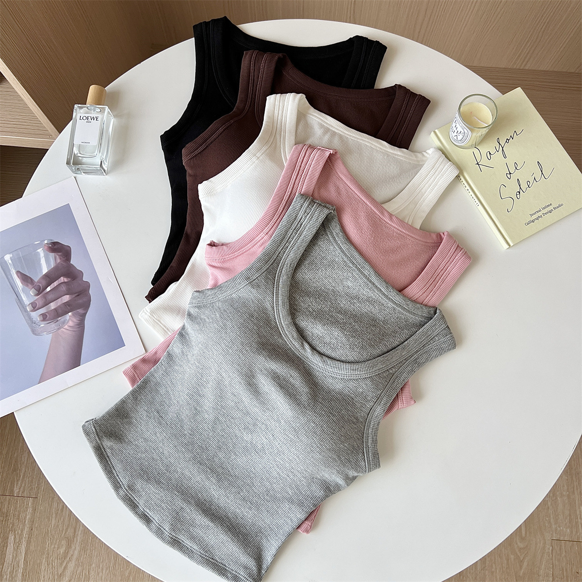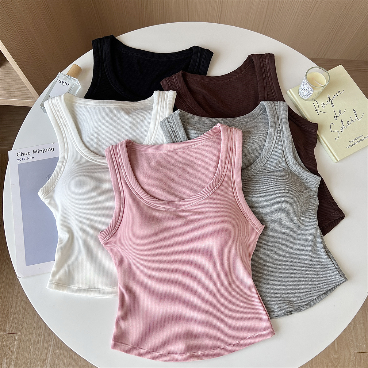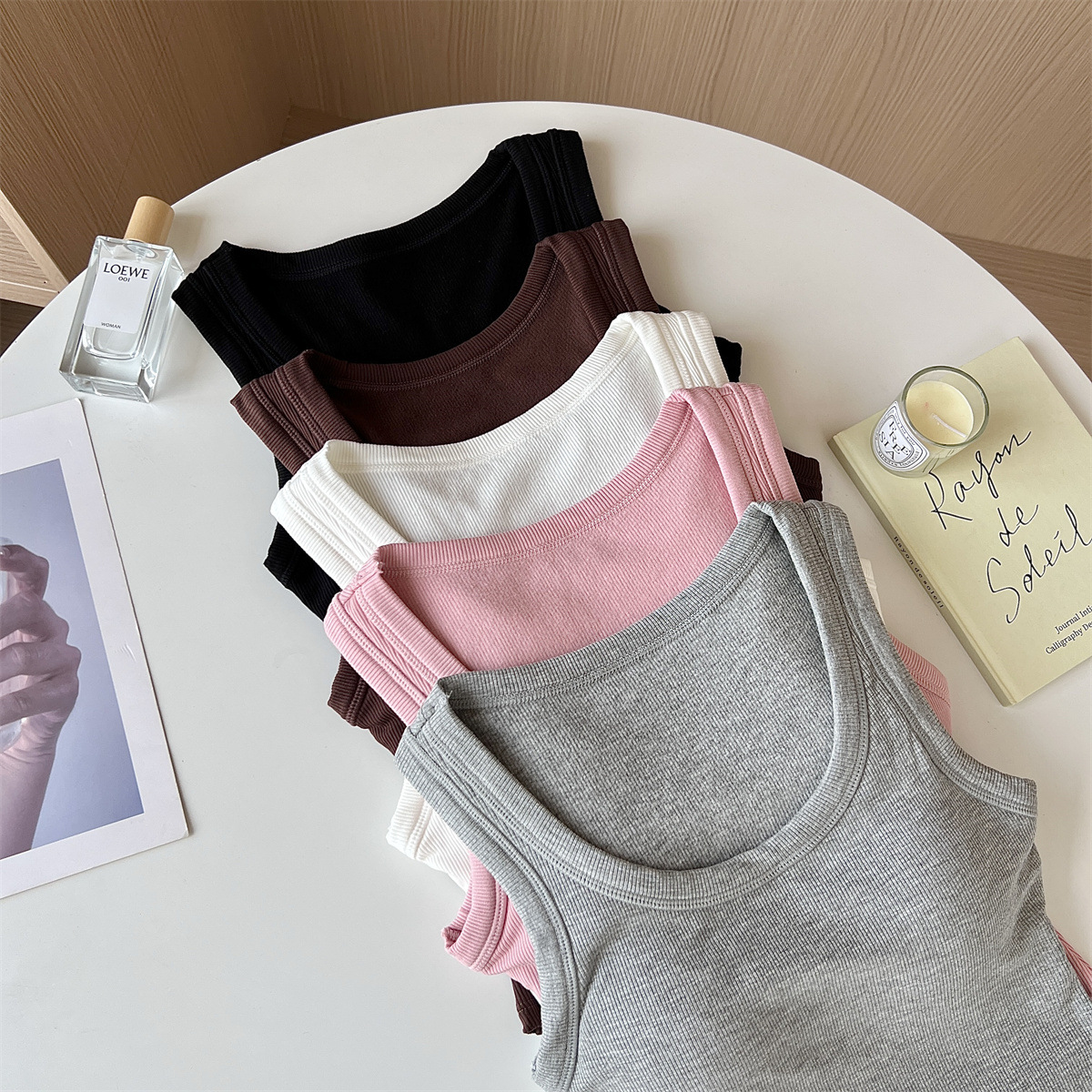 宽肩带纯棉背心女带胸垫一体式内搭外穿免穿文胸遮副乳修身打底衫