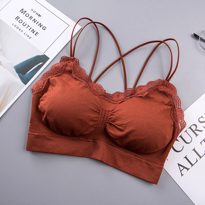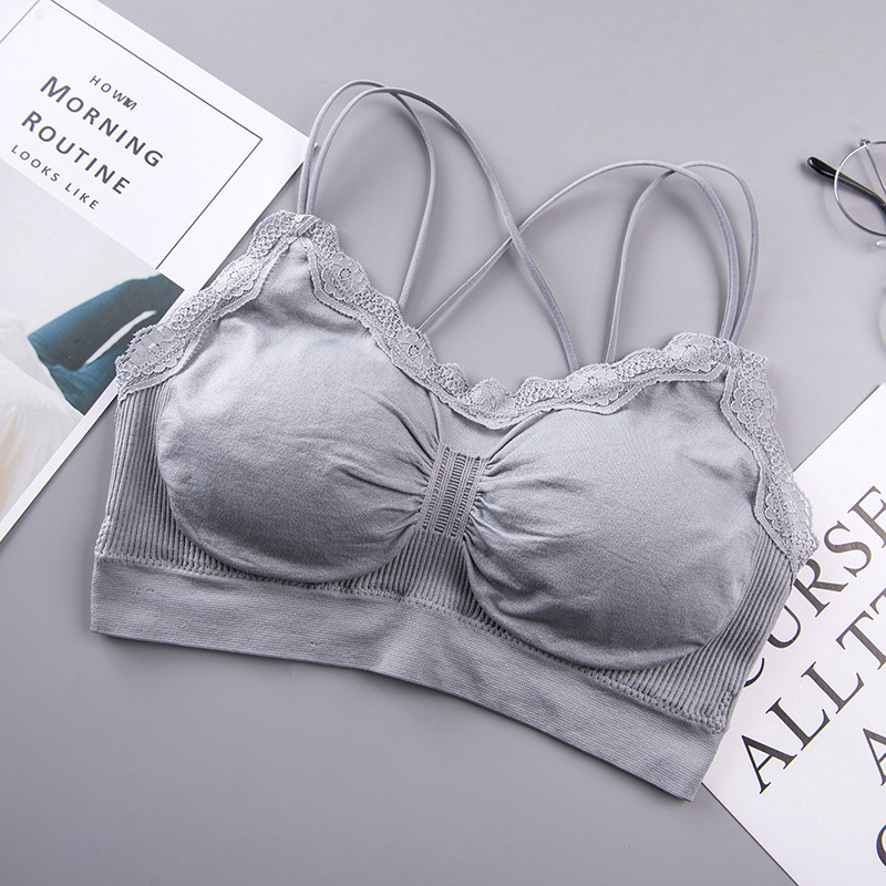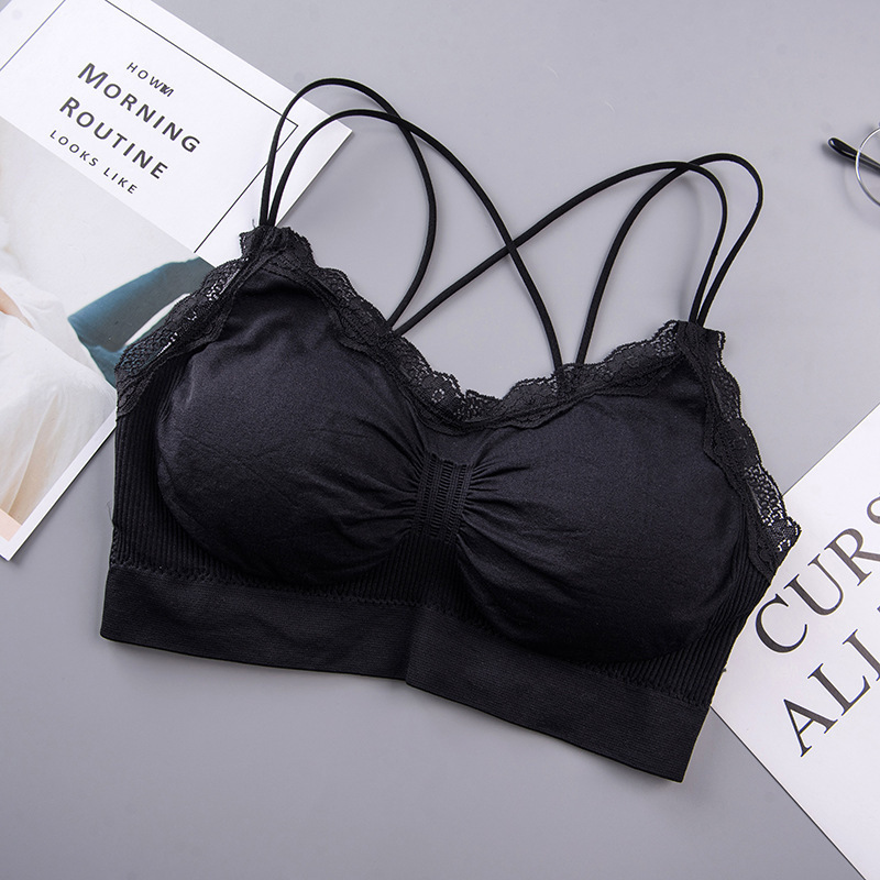 2件包邮 睫毛花边无缝交叉带运动背心 瑜伽美背聚拢裹胸少女内衣
