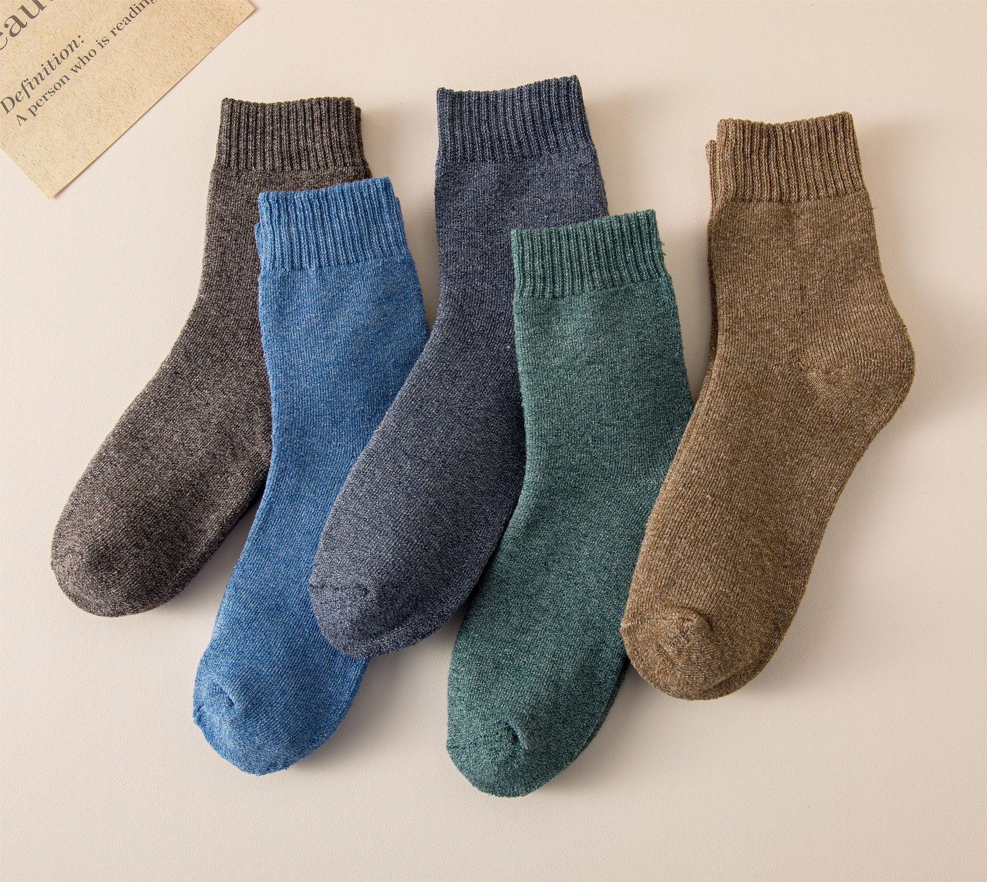 袜子中筒袜羊毛袜纯色男袜女袜长筒袜保暖加绒加厚毛圈袜
