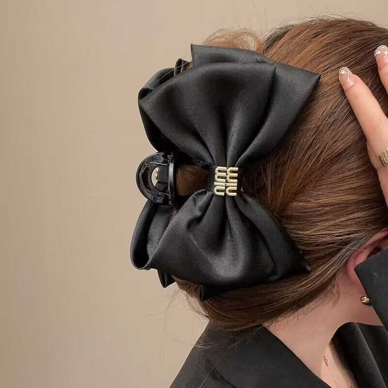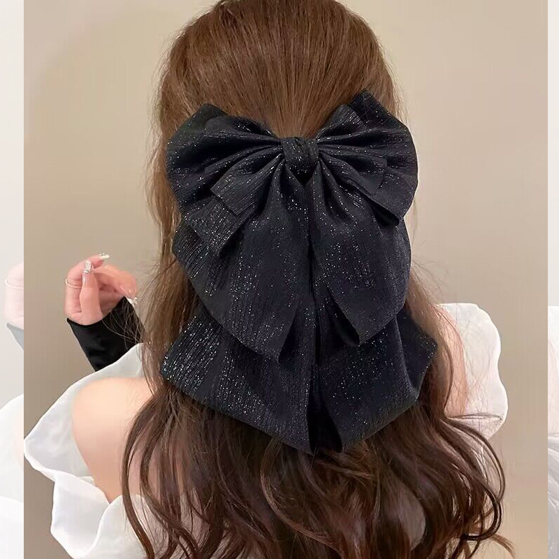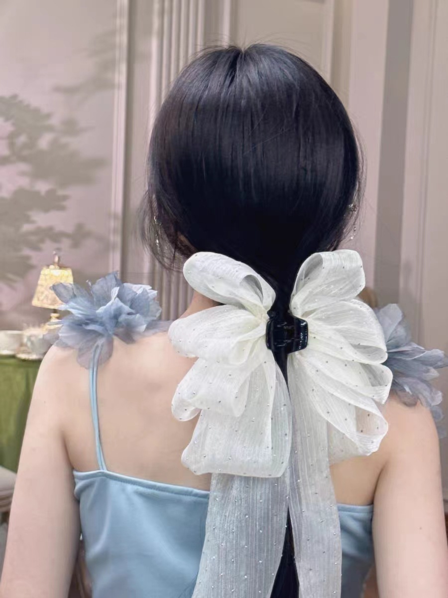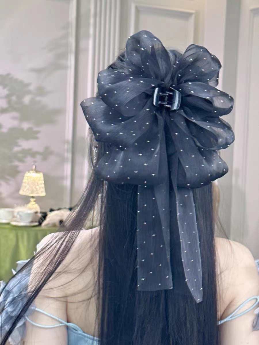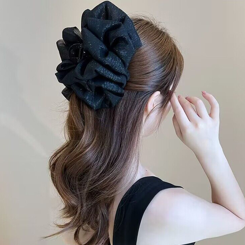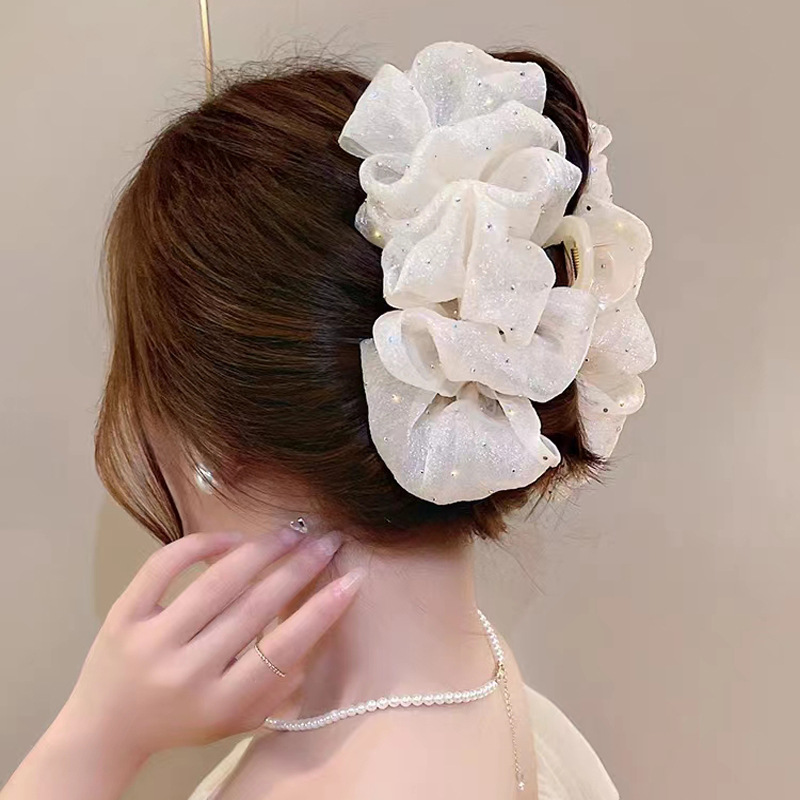 银丝双面泡泡纱发卡鲨鱼夹抓夹超大号发夹女后脑勺盘发夹2023新款