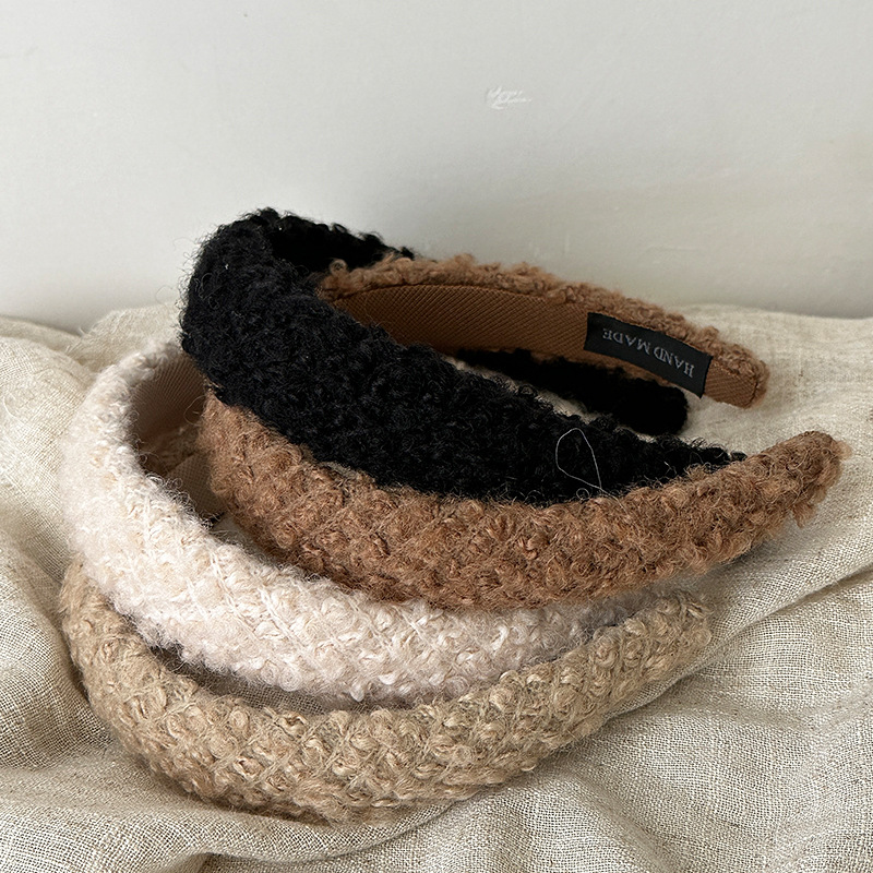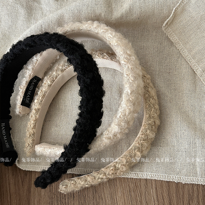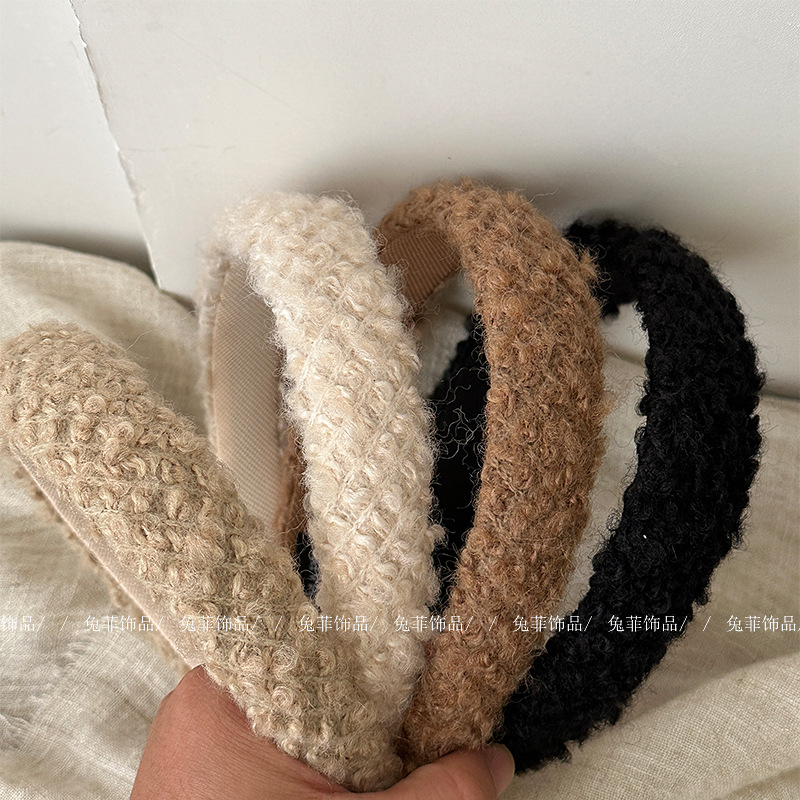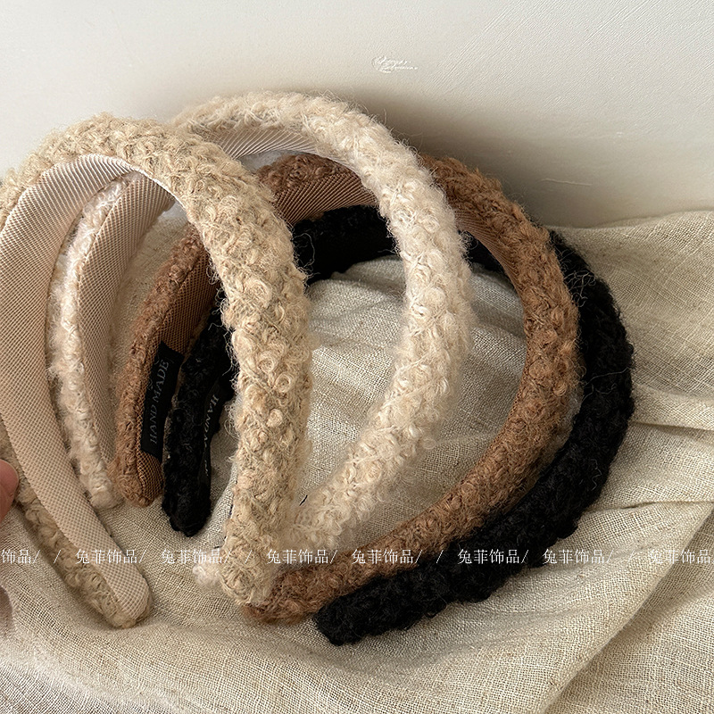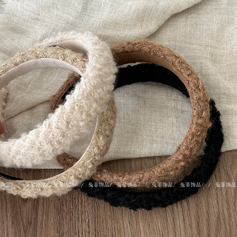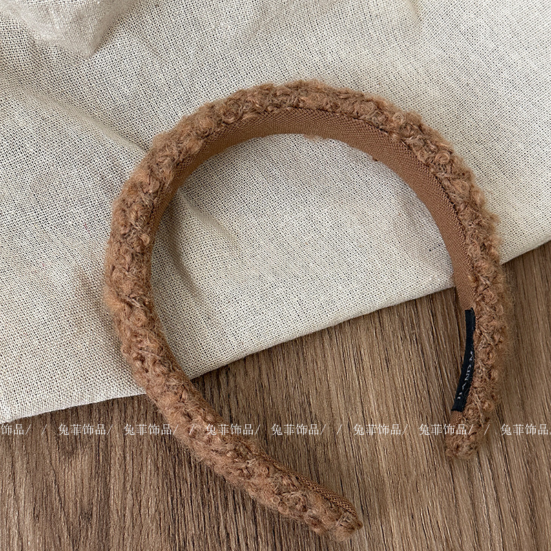 秋冬咖色系羊羔毛发箍毛绒绒宽边头箍压发外出发卡2023新款女发饰