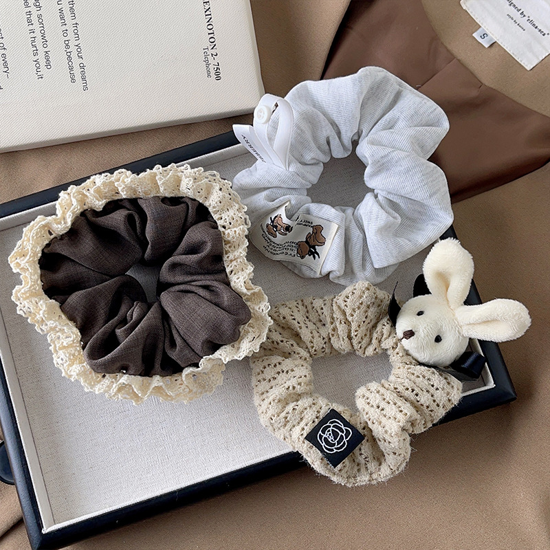 秋冬毛线发圈甜美头绳毛绒彩虹大肠圈肥肠发饰蕾丝蝴蝶结皮筋女