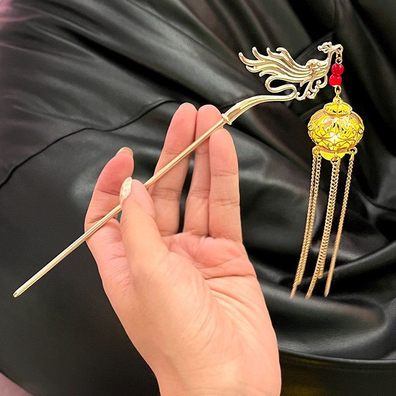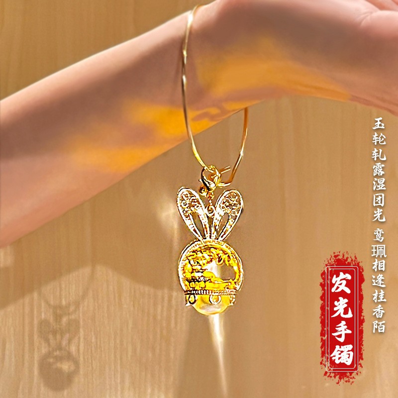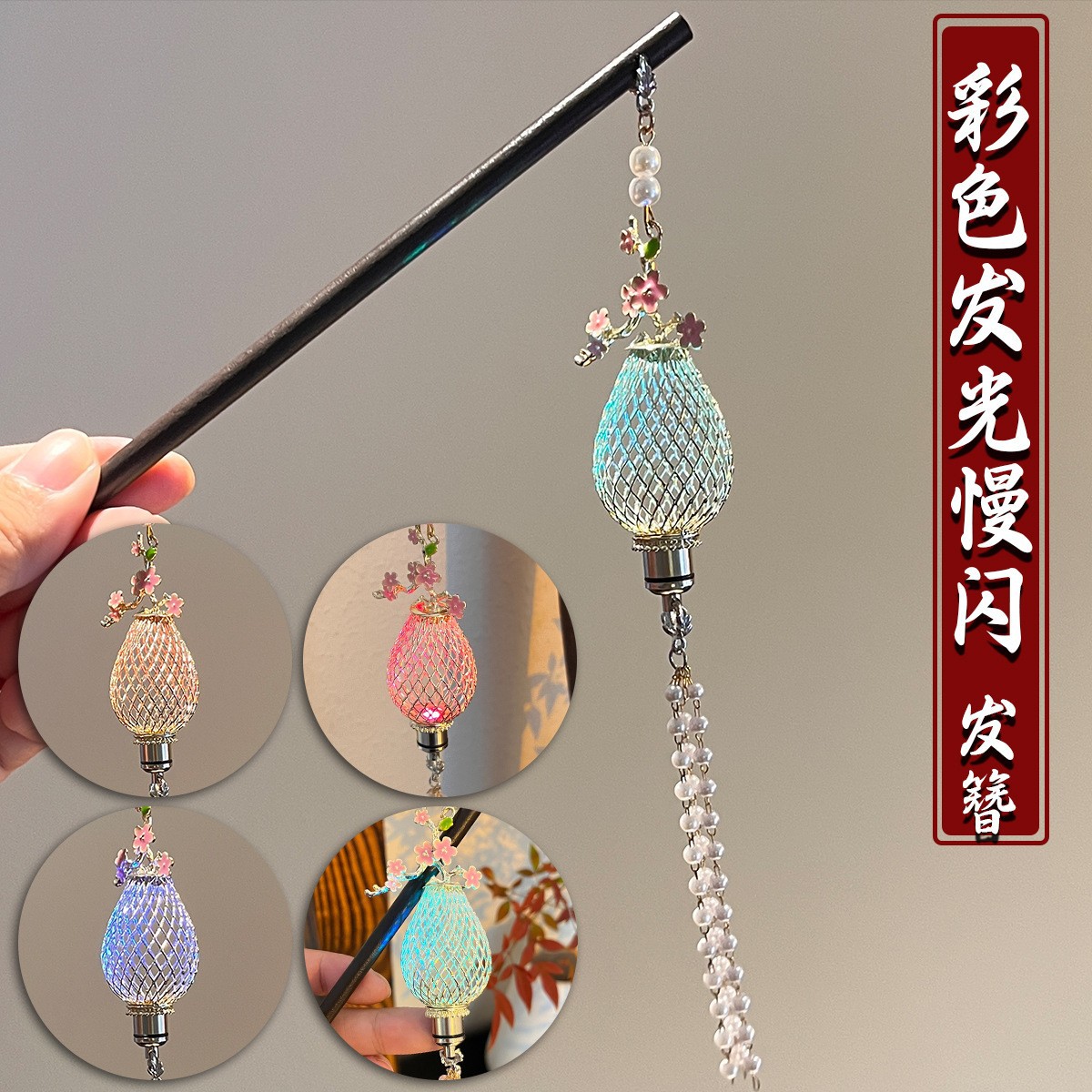 现货发光福字兔子灯笼流苏发簪中秋风簪子盘发发钗复古古风汉服