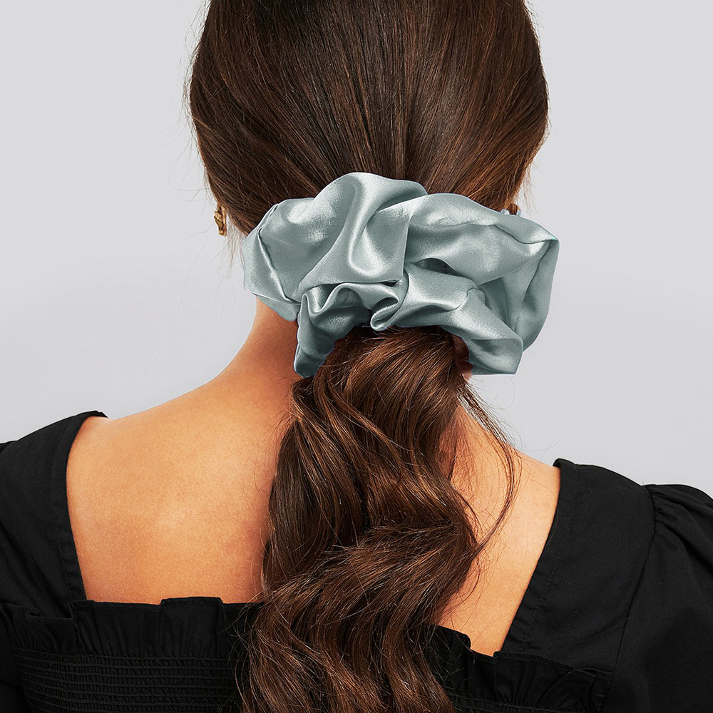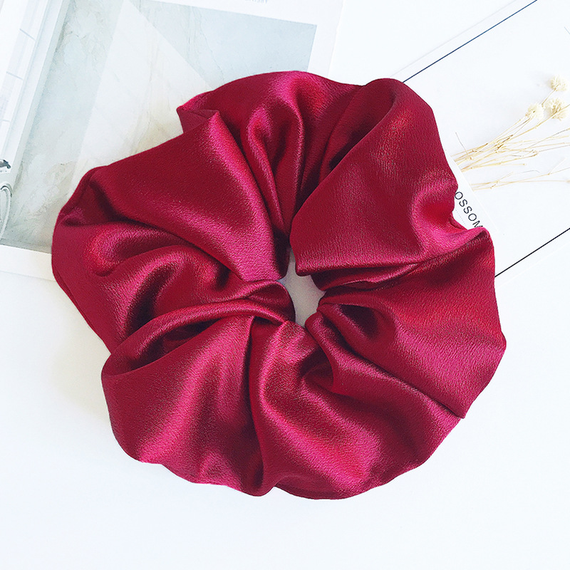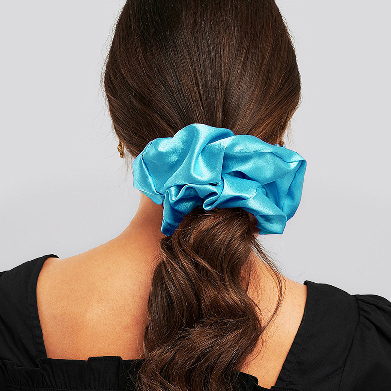 ins仿真丝布艺纯色发绳发饰欧美超大号褶皱缎面雪纺猪大肠发圈
