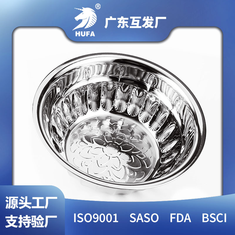 套盆不锈钢雅美花盆可带盖盘压花盆不锈钢套盆汤盆