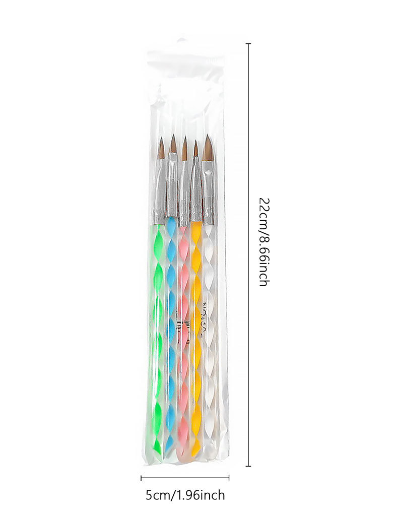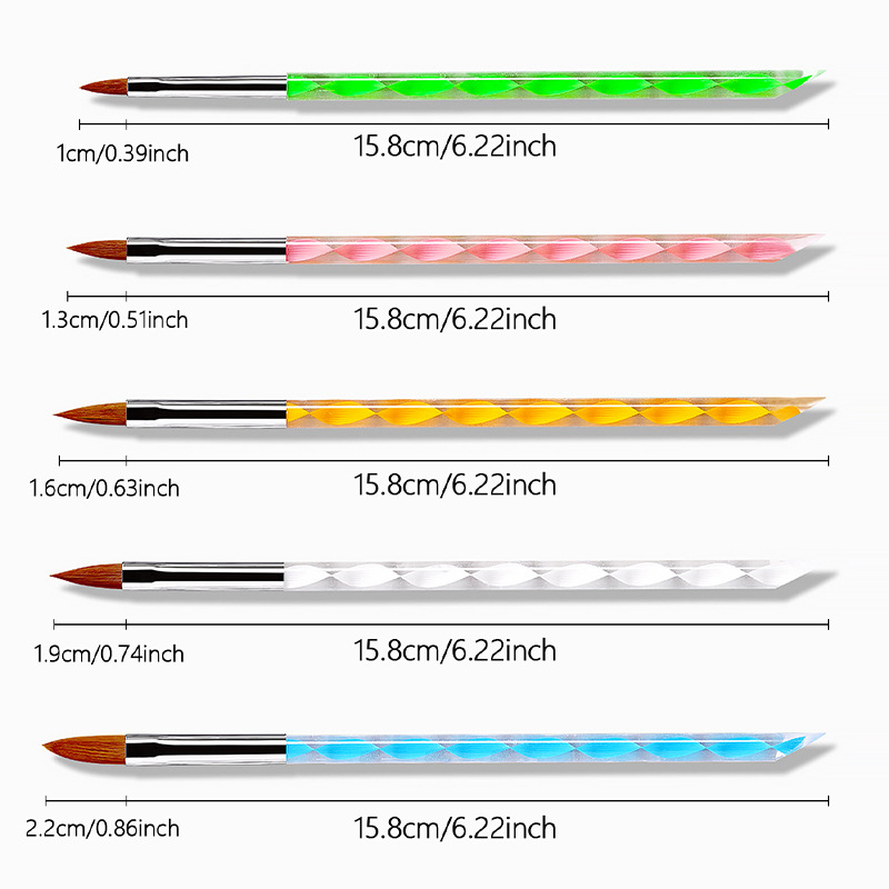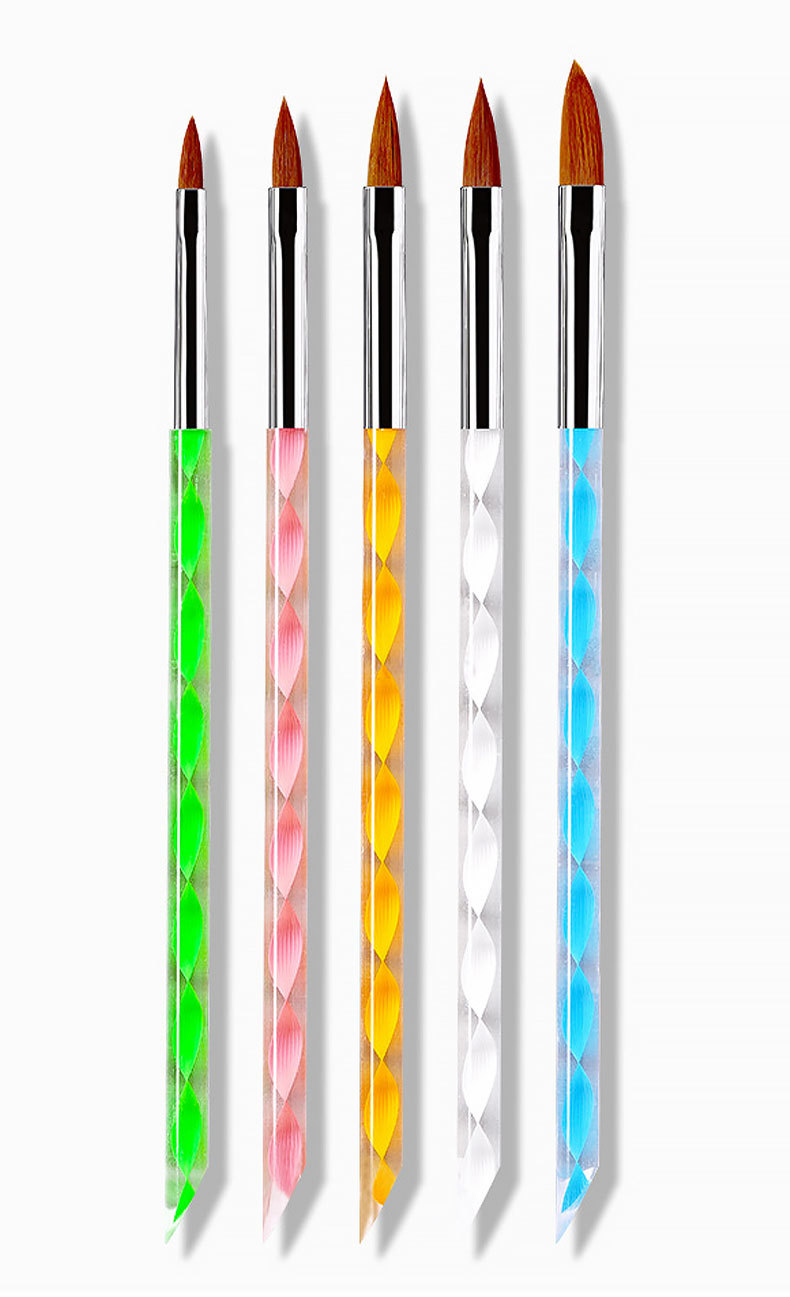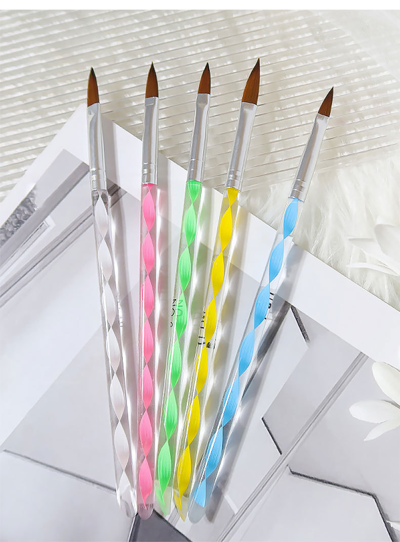 223 螺旋杆5支装水晶笔亚克力斜尾雕花彩绘笔画花笔美甲工具