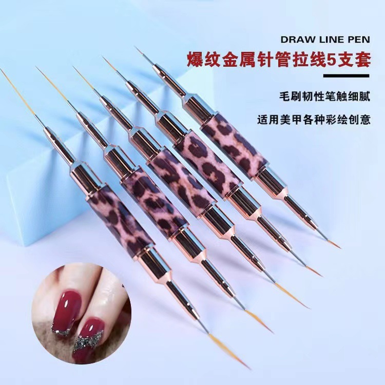 345 豹纹金属杆双头针管拉线笔5支装拉线彩绘描边美甲工具