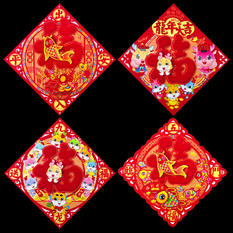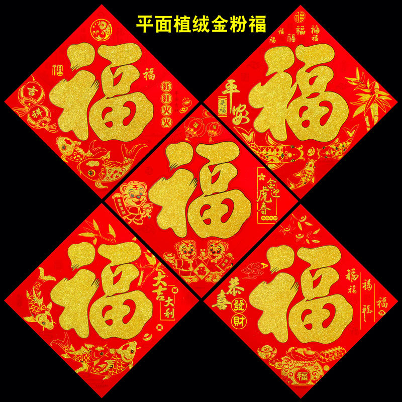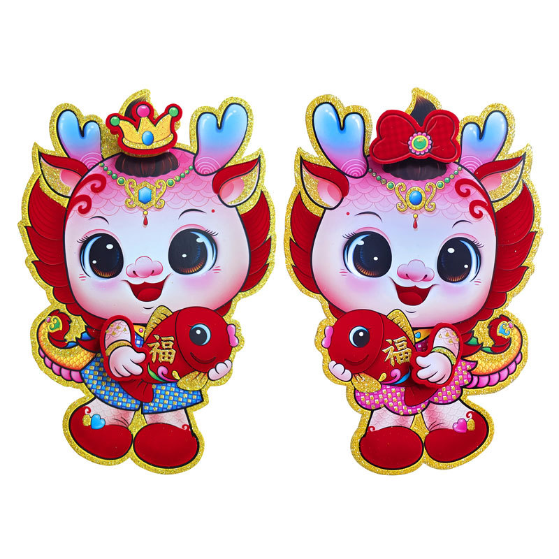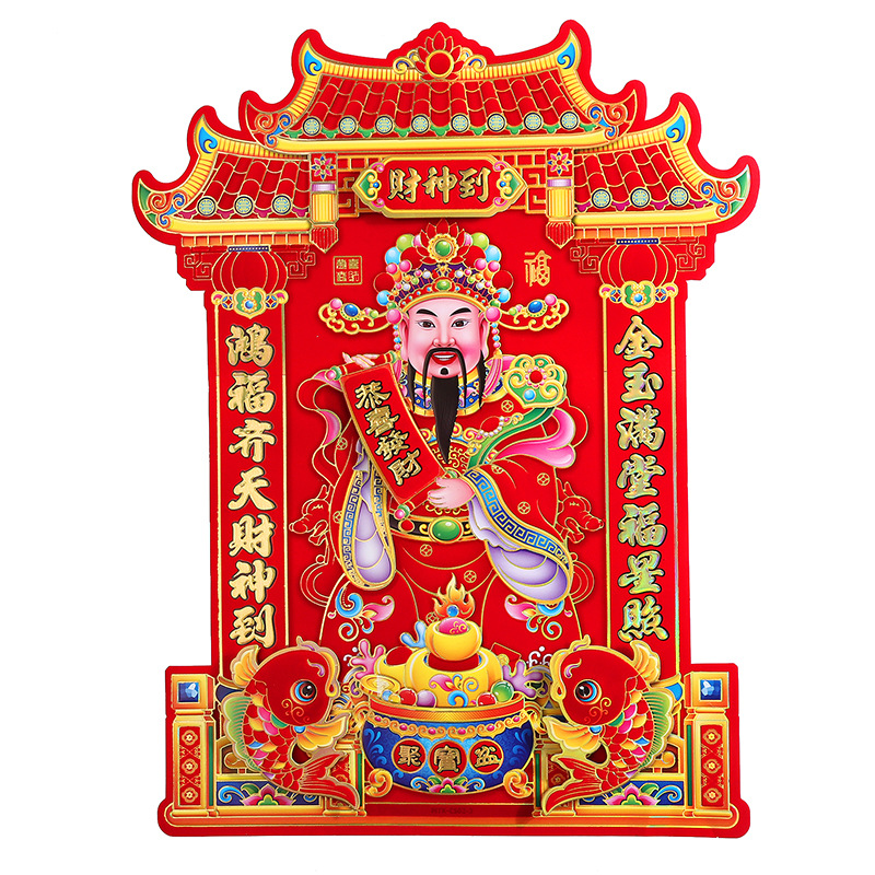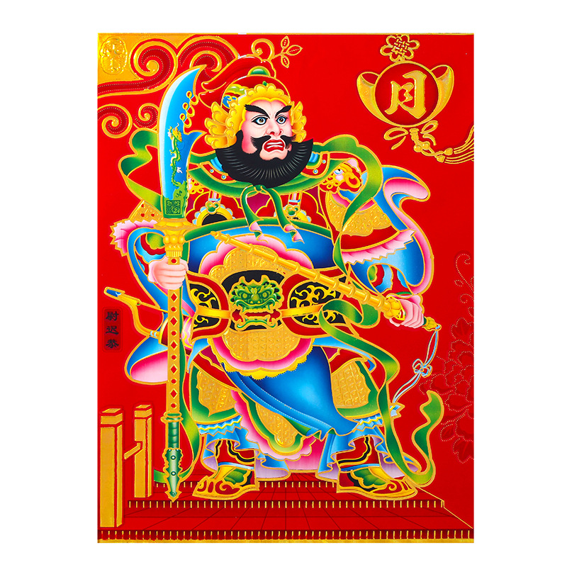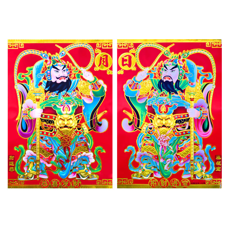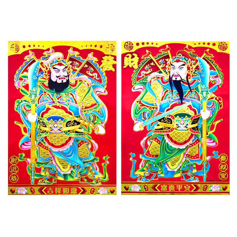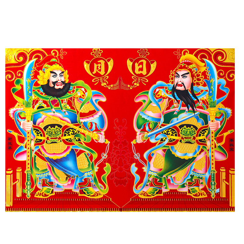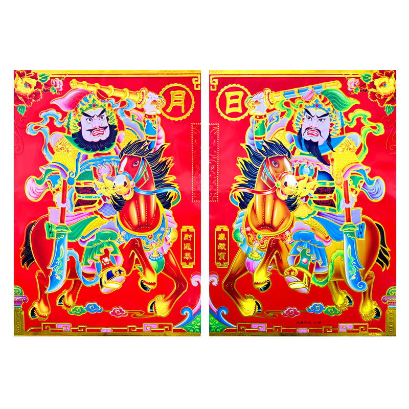 烫金植绒门神年画 春节高档铜板纸日月发财门神年画批发