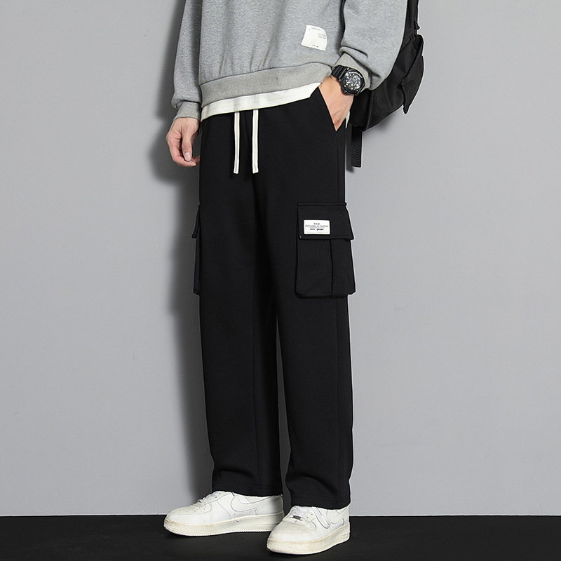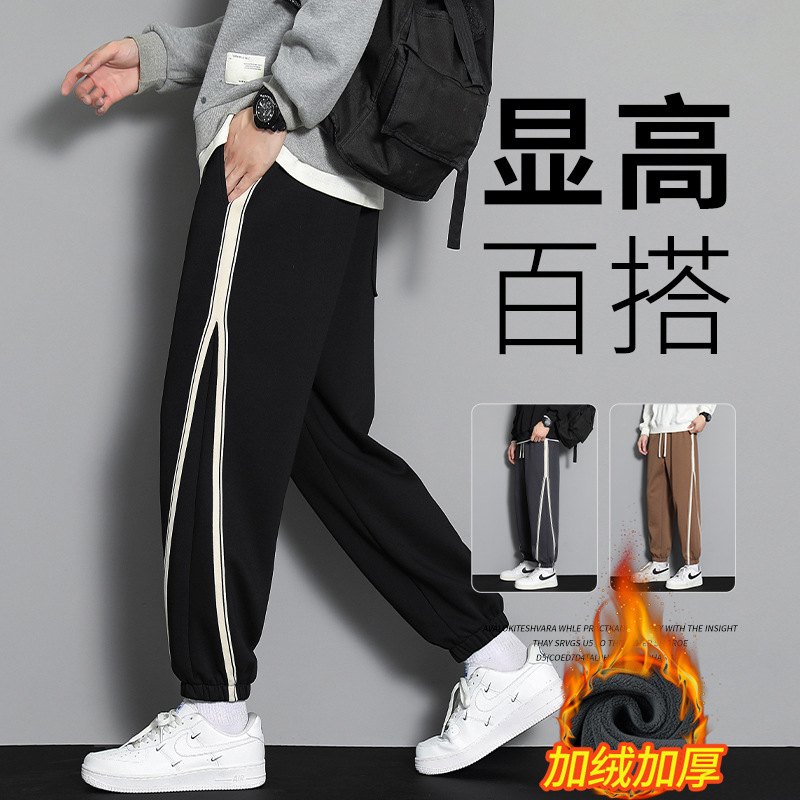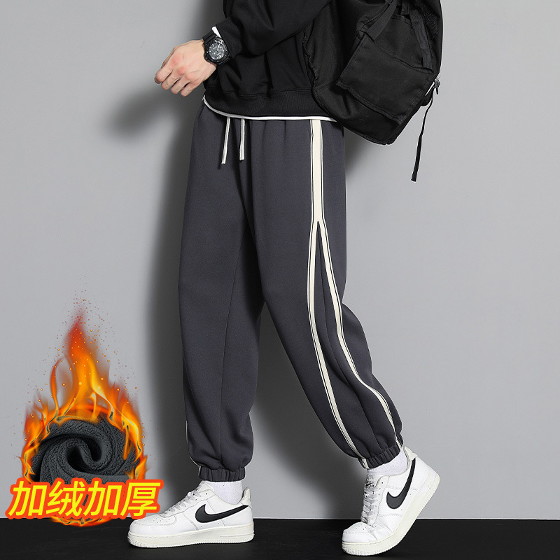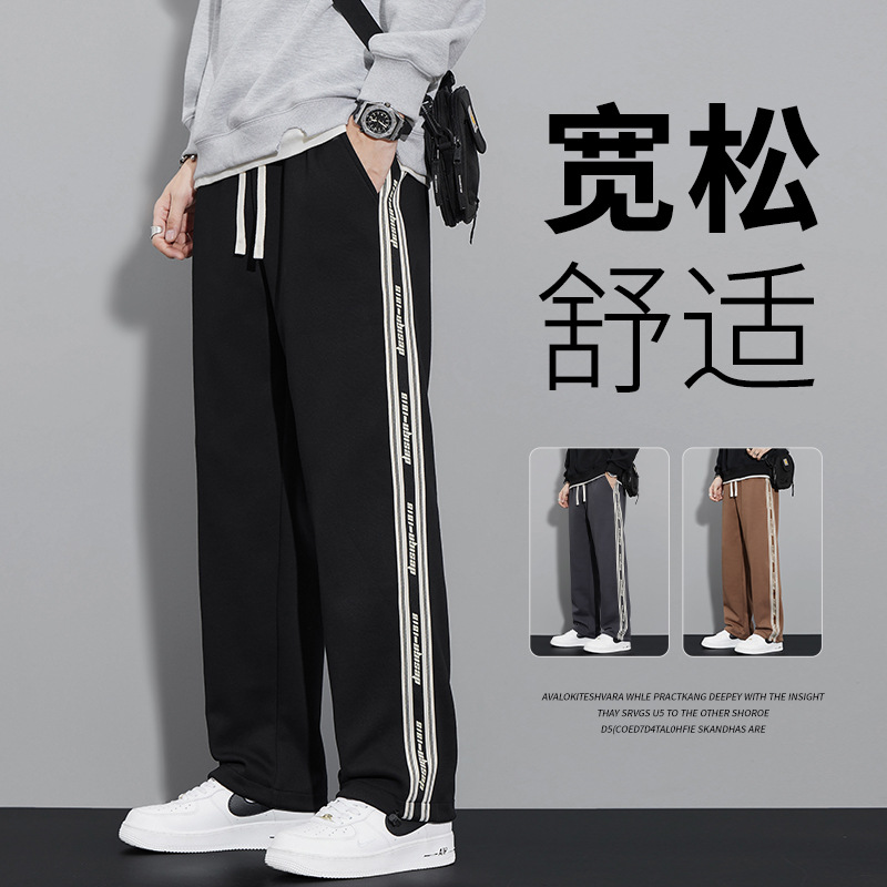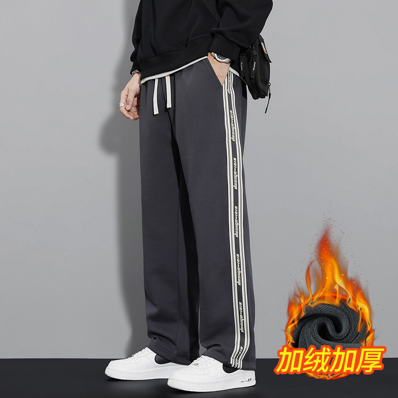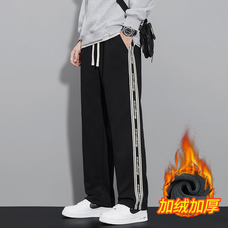 2023直筒卫裤休闲裤男秋冬季加绒加厚长裤韩版潮宽松平脚运动裤潮