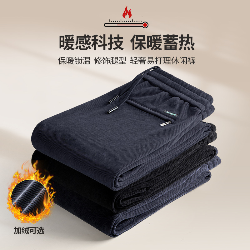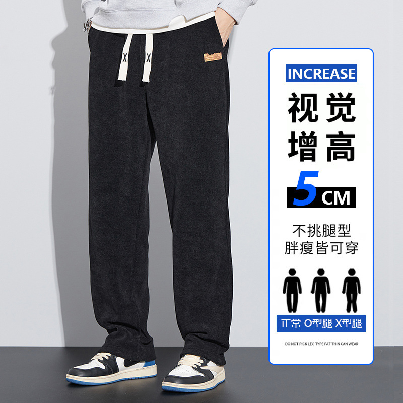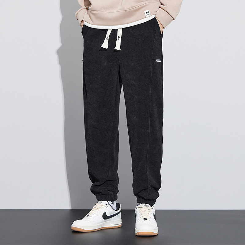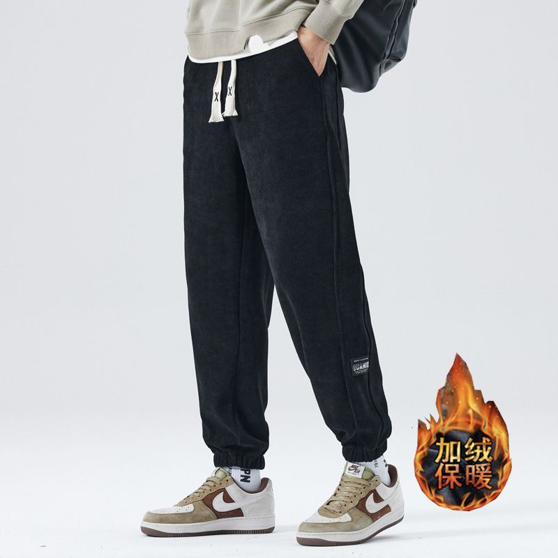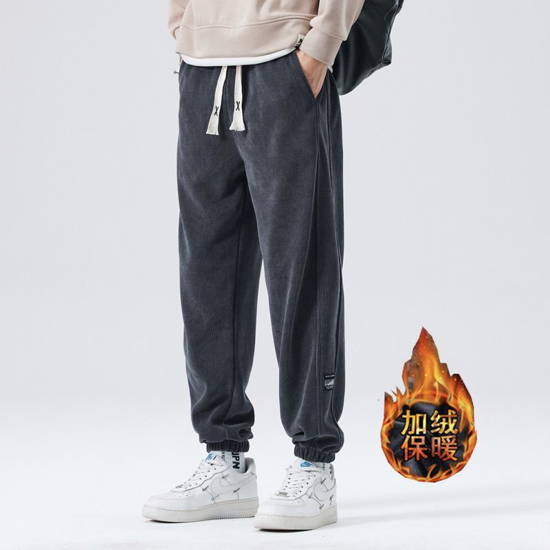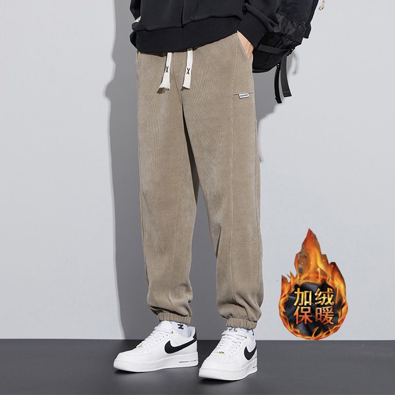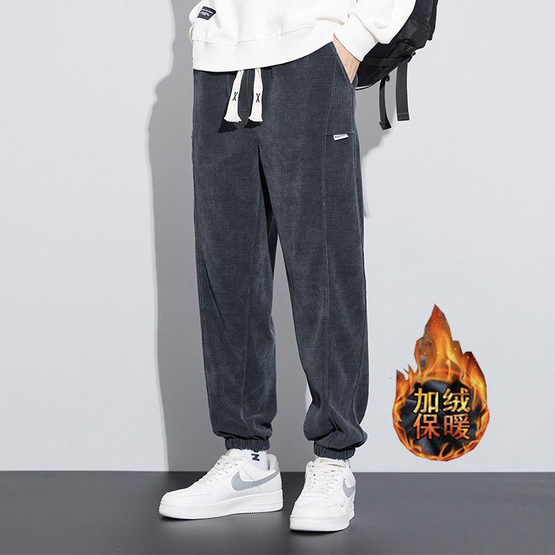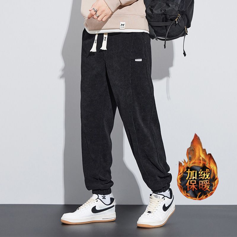 灯芯绒显高男士休闲裤宽松大码加绒厚卫裤宽松运动小脚弹力松紧裤