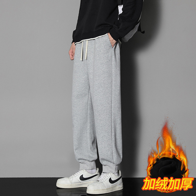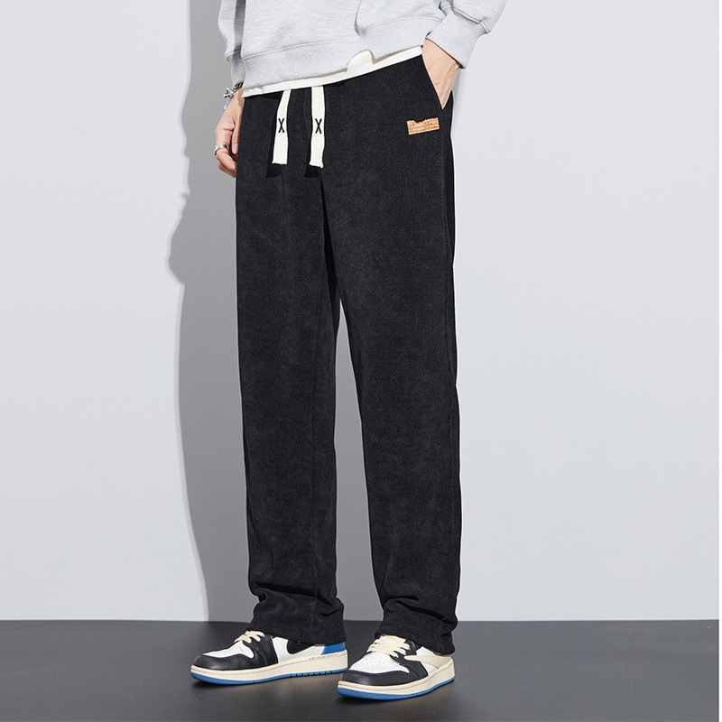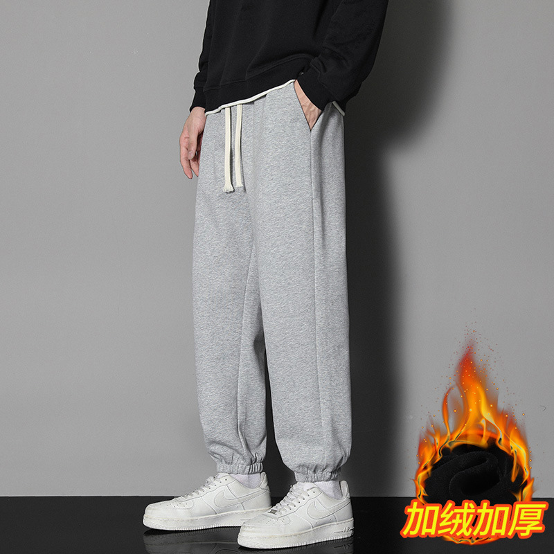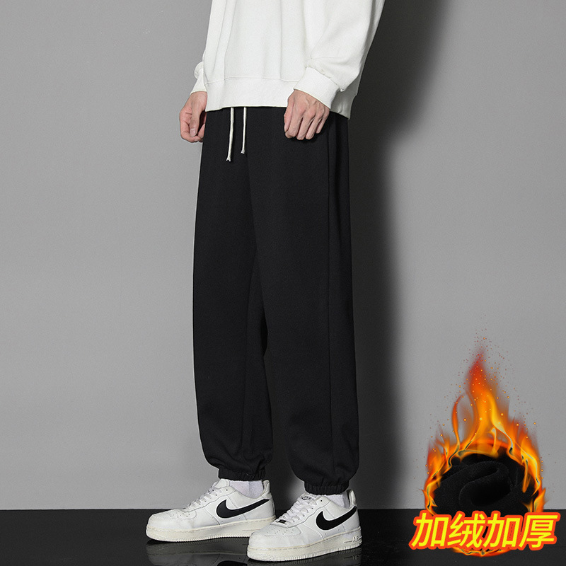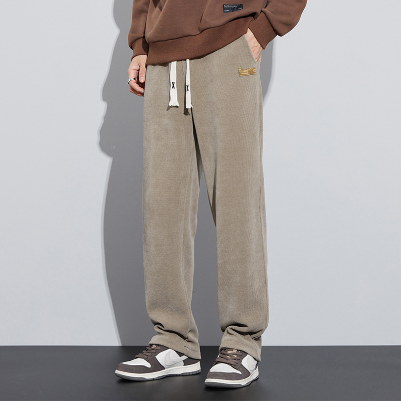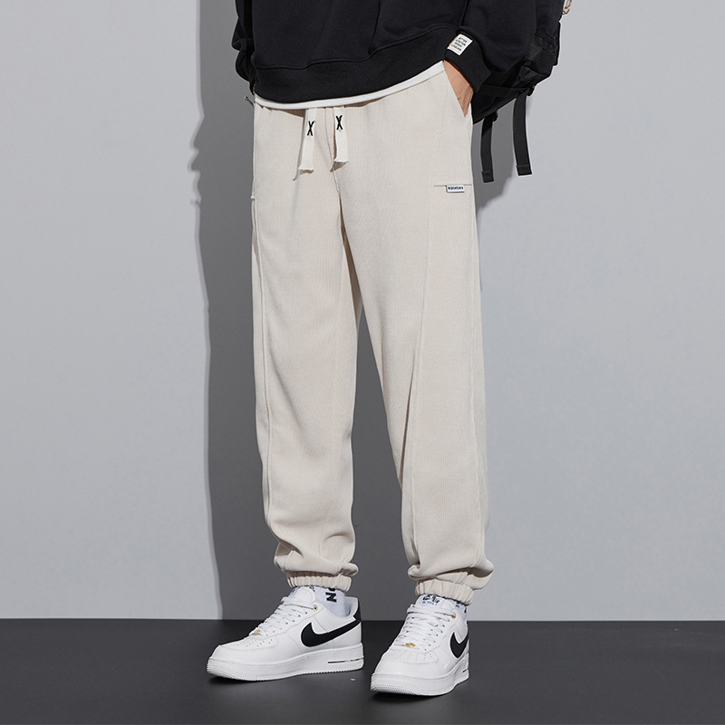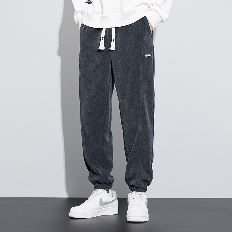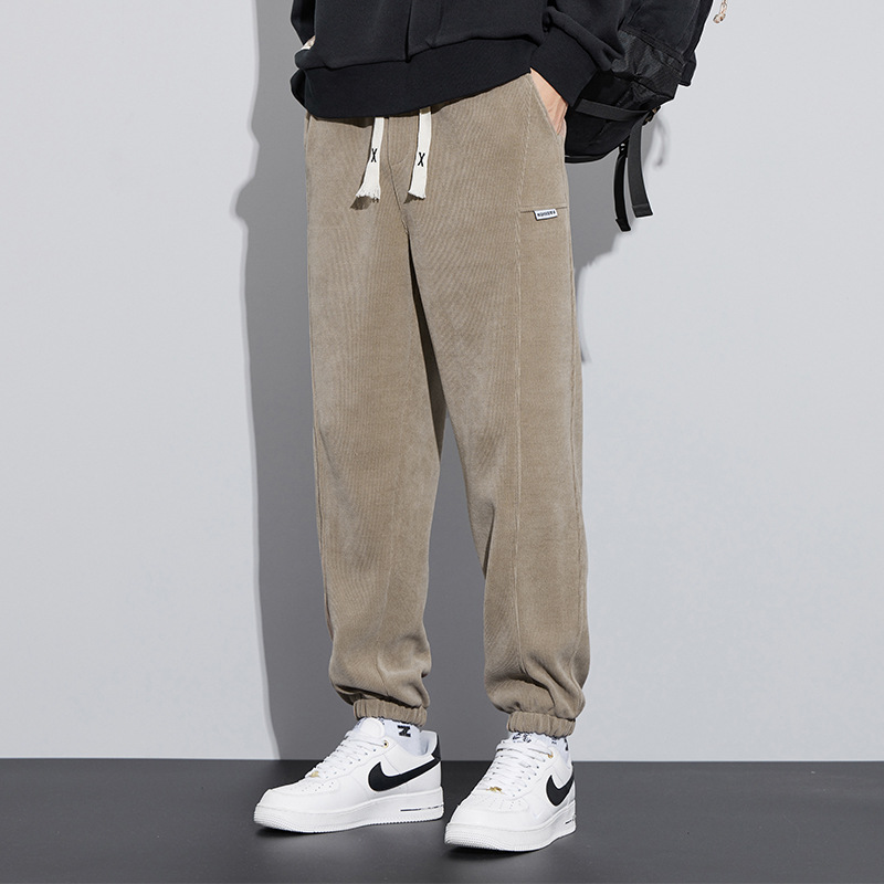 灯芯绒显高男士休闲裤宽松大码加绒厚卫裤宽松运动小脚弹力松紧裤