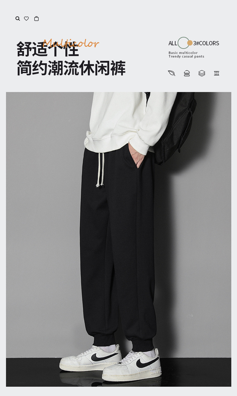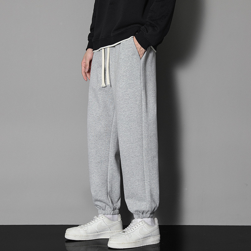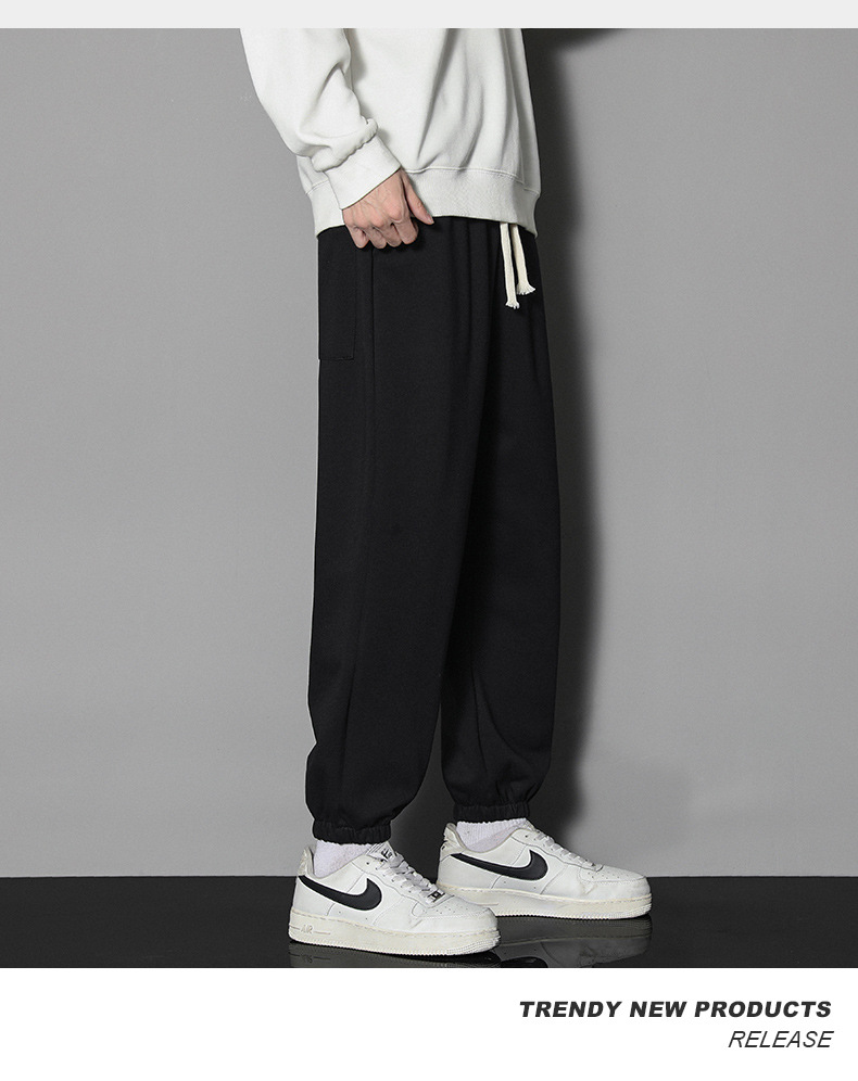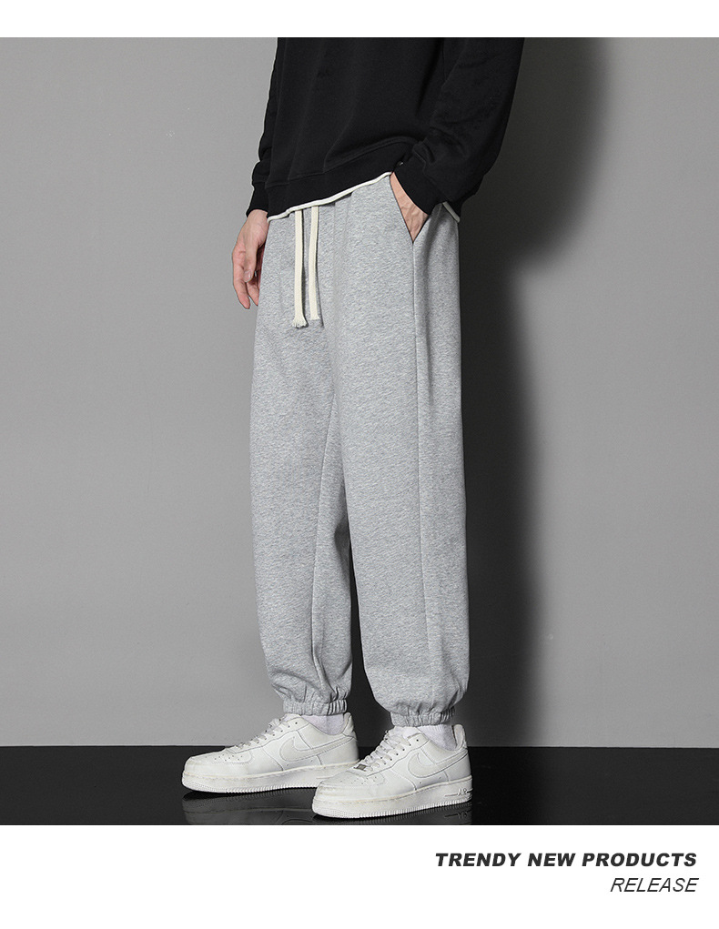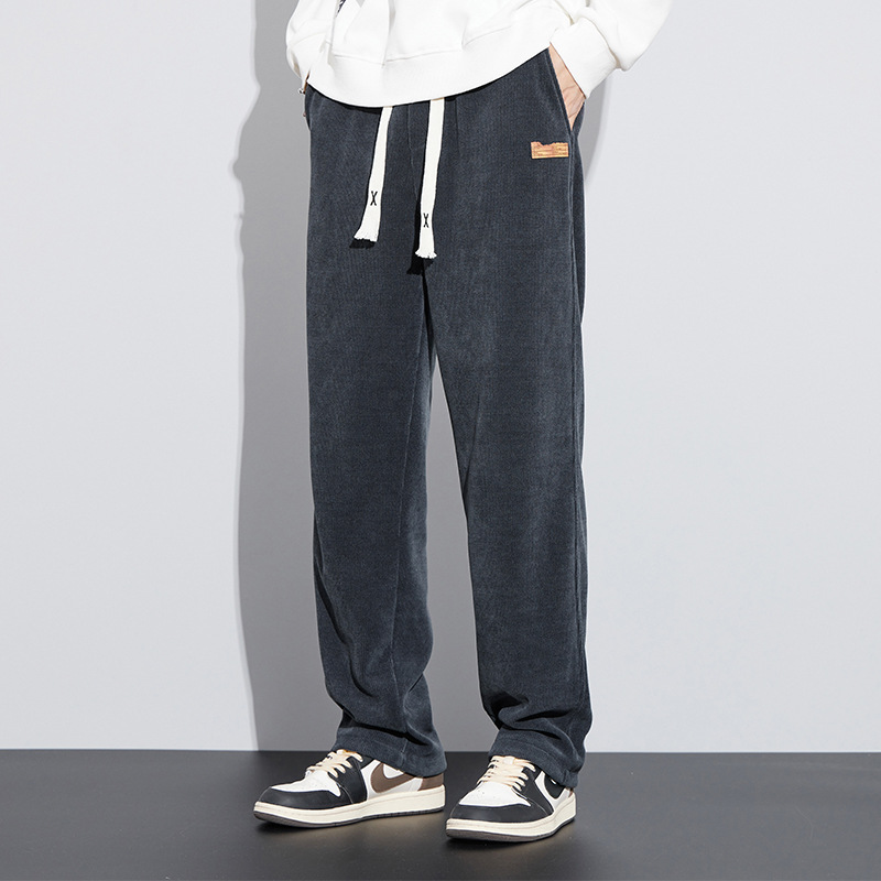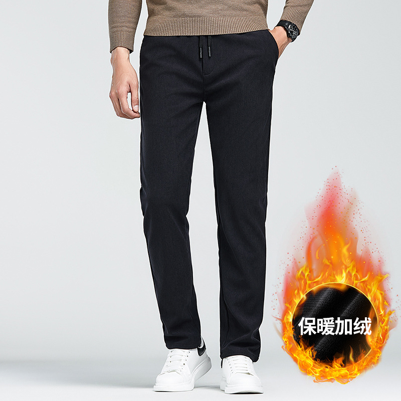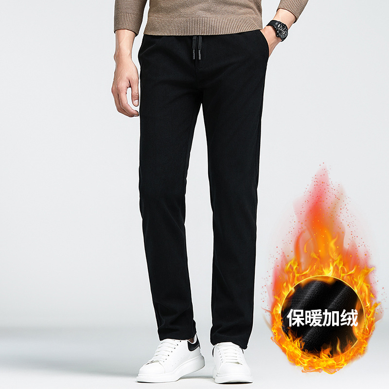 灯芯绒显高男士休闲裤宽松大码加绒厚卫裤宽松运动小脚弹力松紧裤
